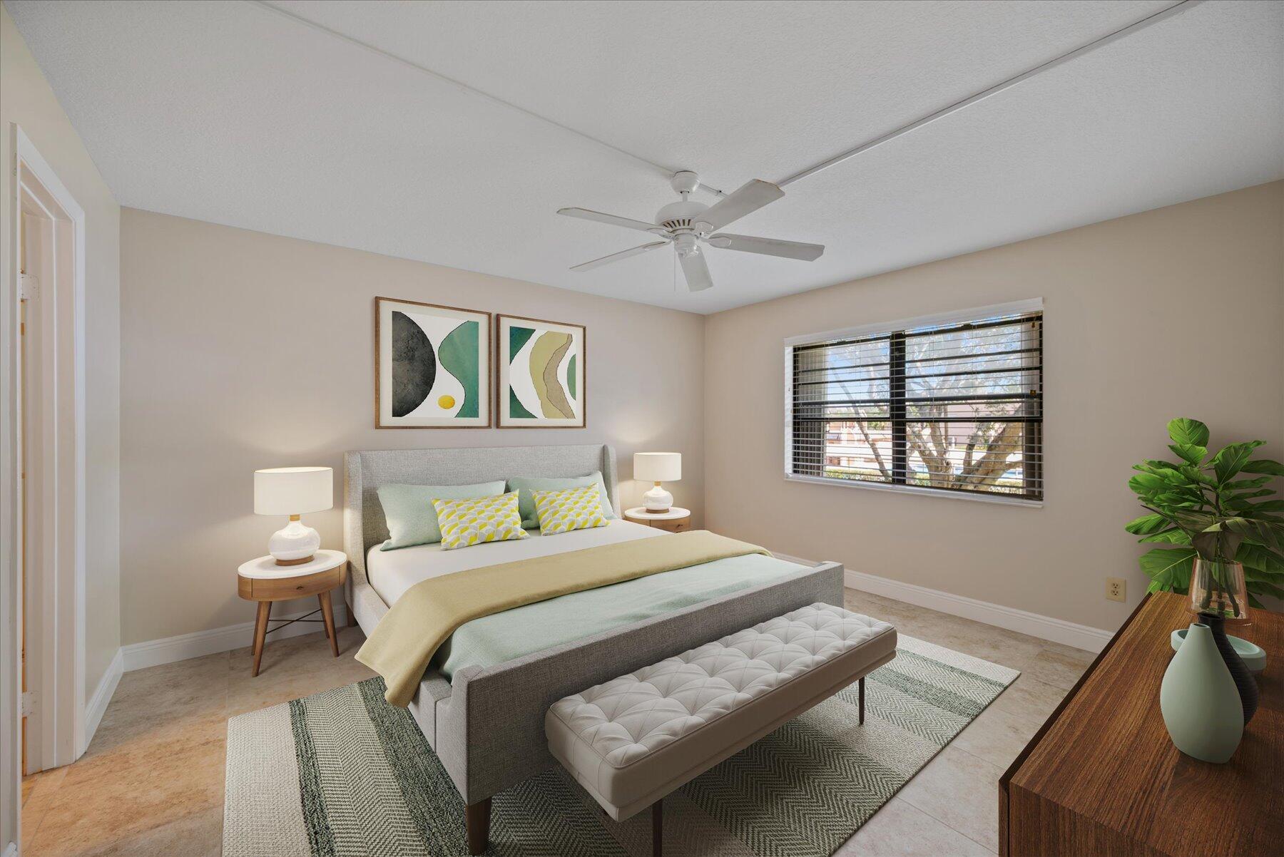Welcome to your golden years in the heart of paradise! This exquisite condo in the coveted Golden Lakes community of West Palm Beach, FL, is more than just a home; it's full of rich experiences that await you. Nestled beside a serene lake, this two-bedroom, two-bathroom condo boasts a spacious master bedroom with a generously sized closet. Plus, the 2nd bedroom has an en suite bath. Imagine waking up to the embrace of the morning sun, as both the living room and the master bedroom offer breathtaking sunrise views over the lake. You'll enjoy porcelain tile through out before you step onto your private balcony, where you can savor your morning drink while overlooking the water & pool. When you step into the kitchen for your refill you'll be greeted by tall Martha Stewart cabinets.