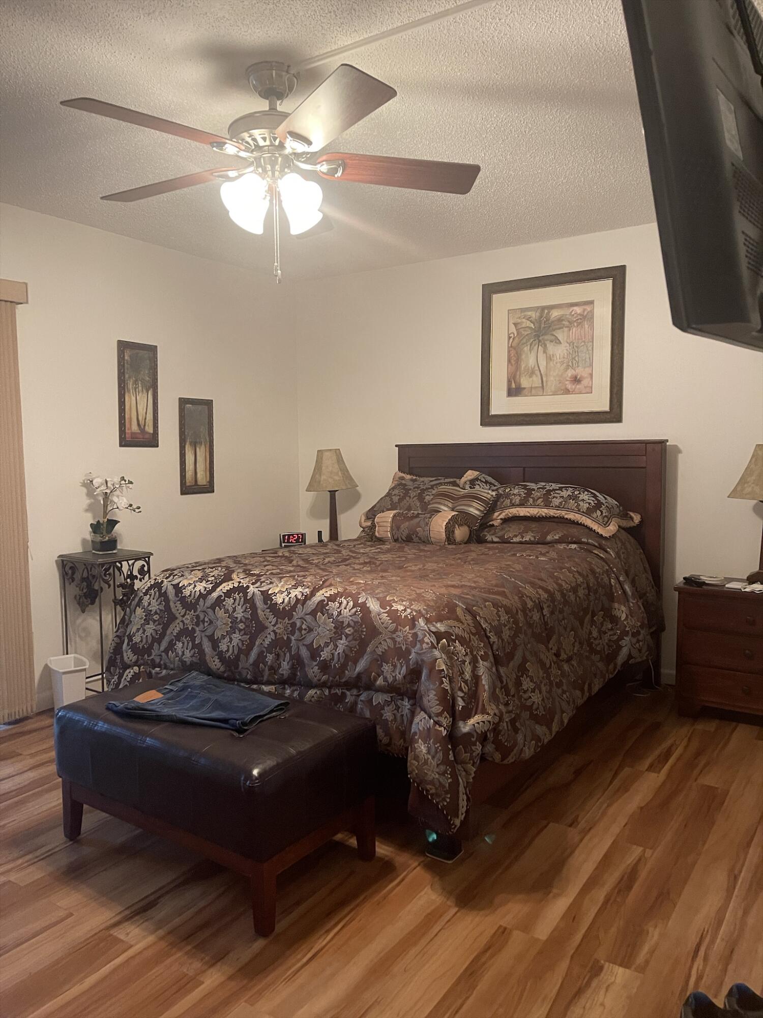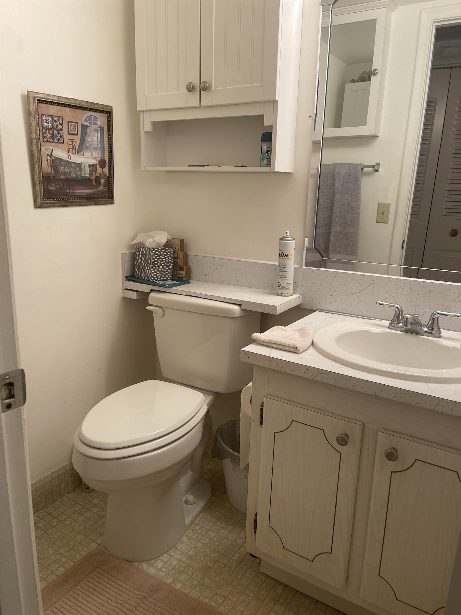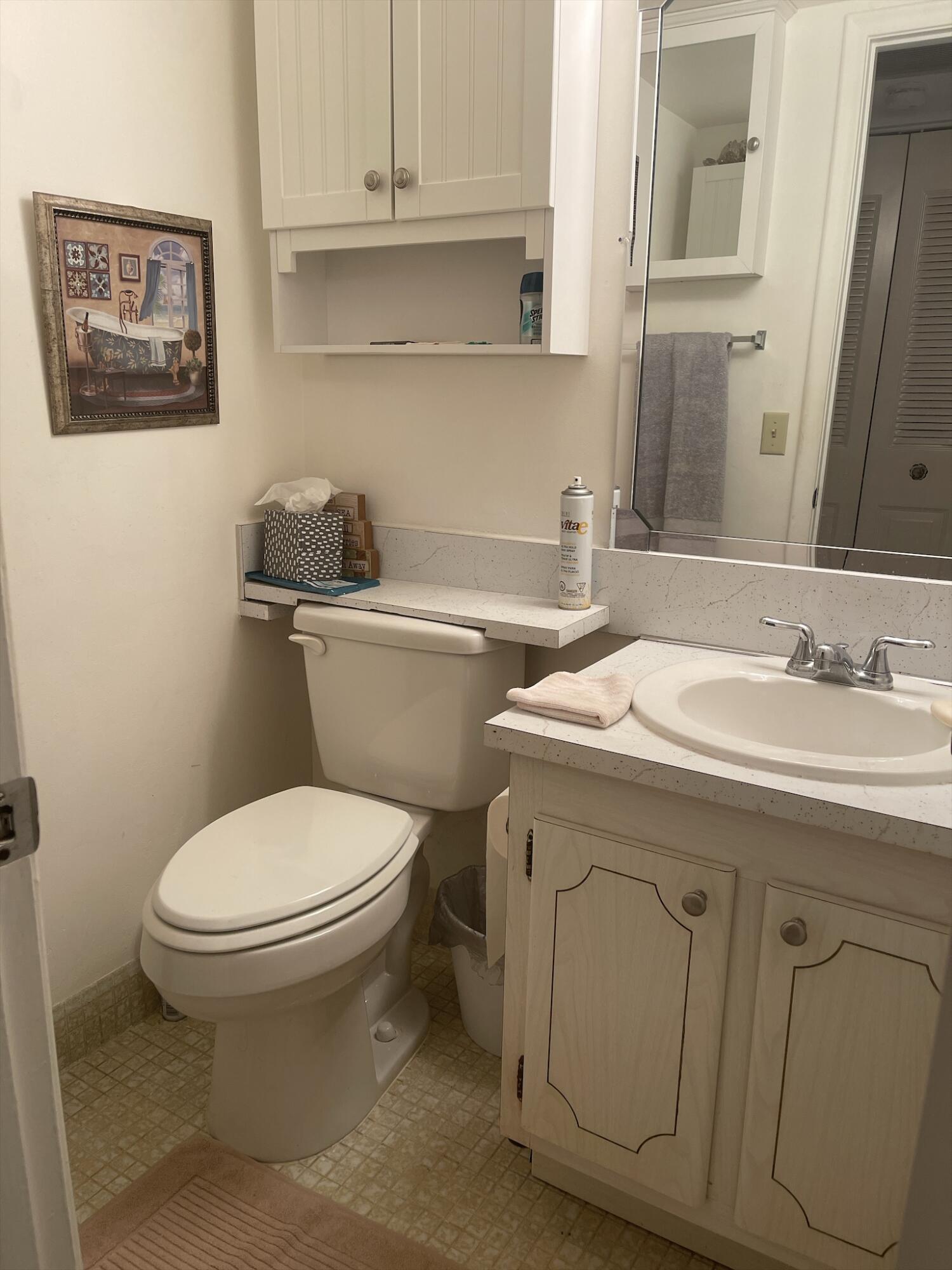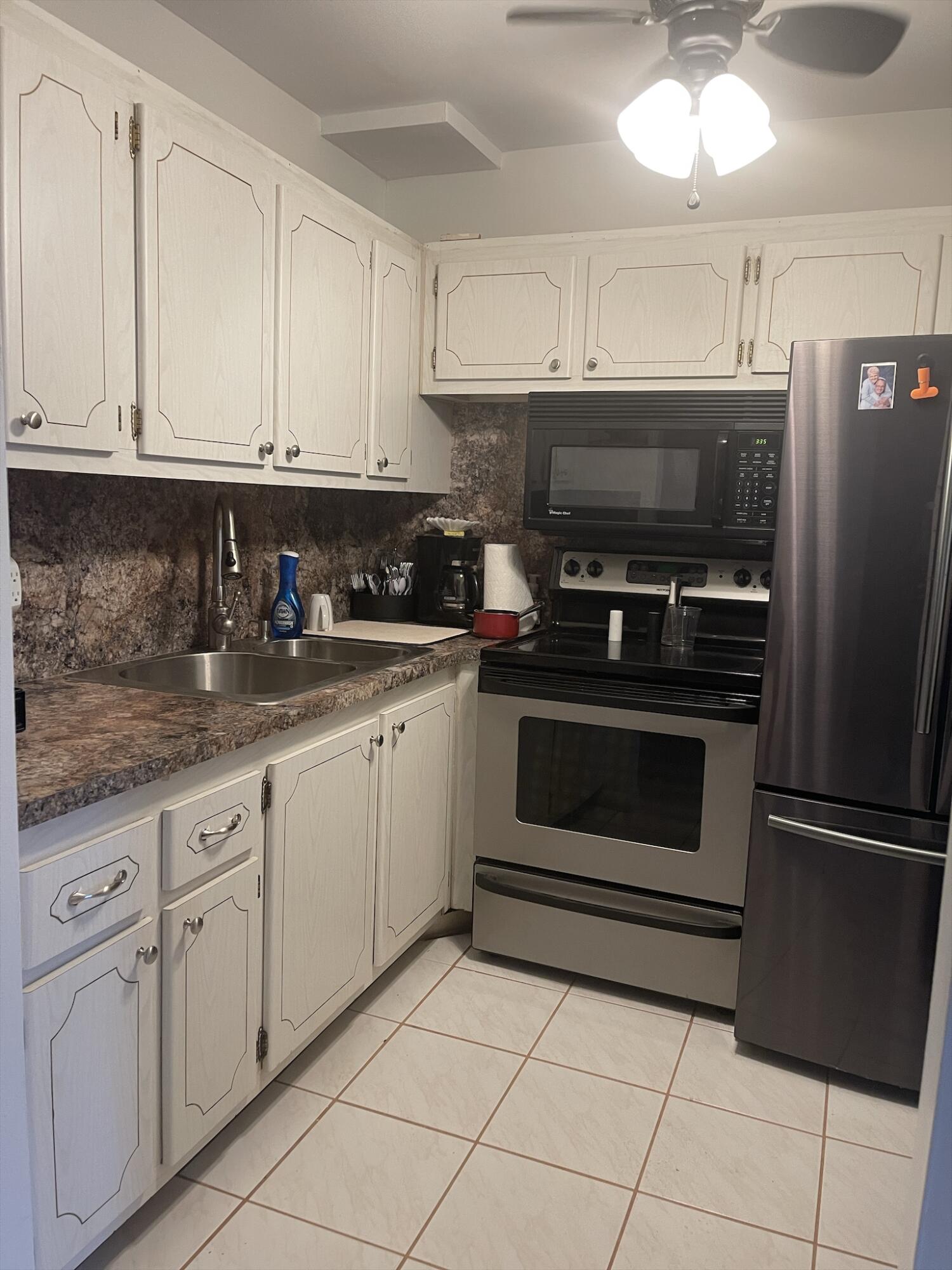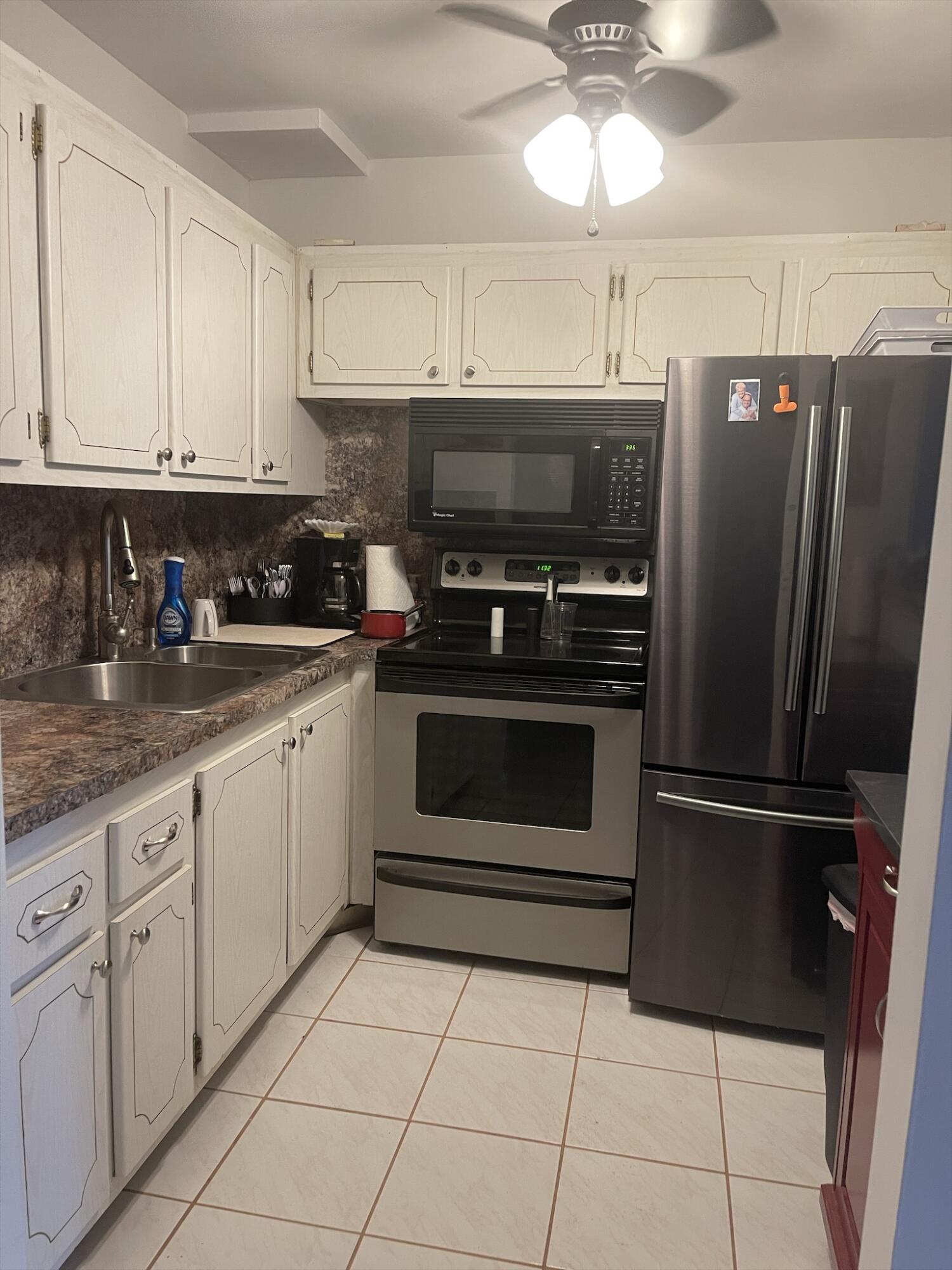 WOW!!! NICE UNIT IN A GREAT BUILDING. One bedroom, one and a half baths, first floor, near elevator, trash chute and laundry room. Directly across from Southampton pool. Assigned parking space (34) very close and directly in front of unit.Living Room (LR)/Dining Room (DR)-o Large with 52inch ceiling fan and lights (LR)o Gray/white ceramic tile installed three years ago (LR)o Queen size light oak Murphy bed to remain with unit (DR)o Wall mounted large television bracket and glass component shelf with cable and power outlet Kitchen -o Custom crafted counter tops and backsplash with Formica laminate and stainless-steel double bowled sinkwith pull out sprayero Black 32-inch ceiling fan with light kito Thirty-inch slide in range.......(read next page)......