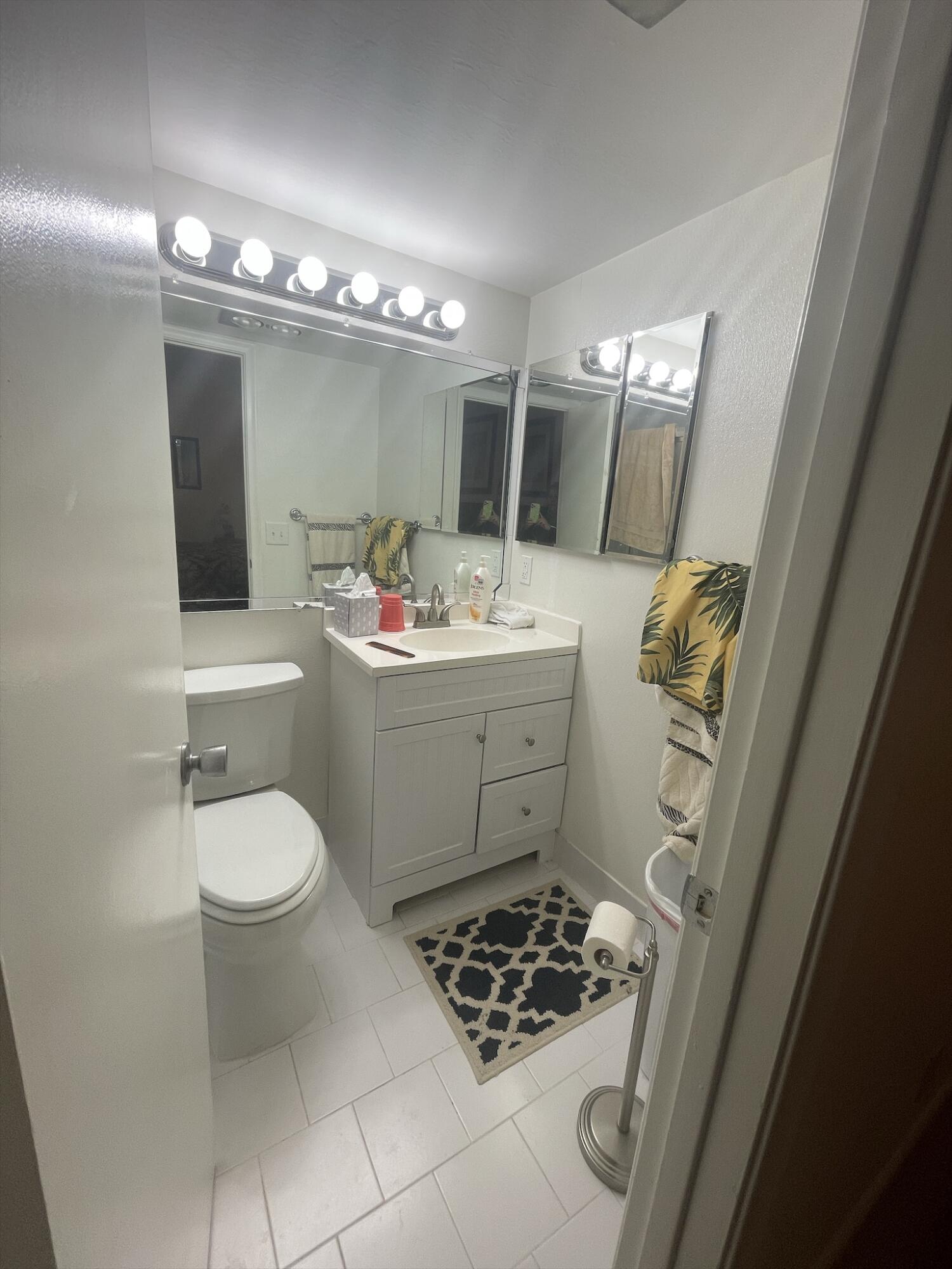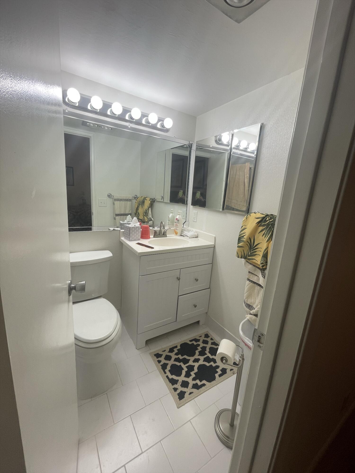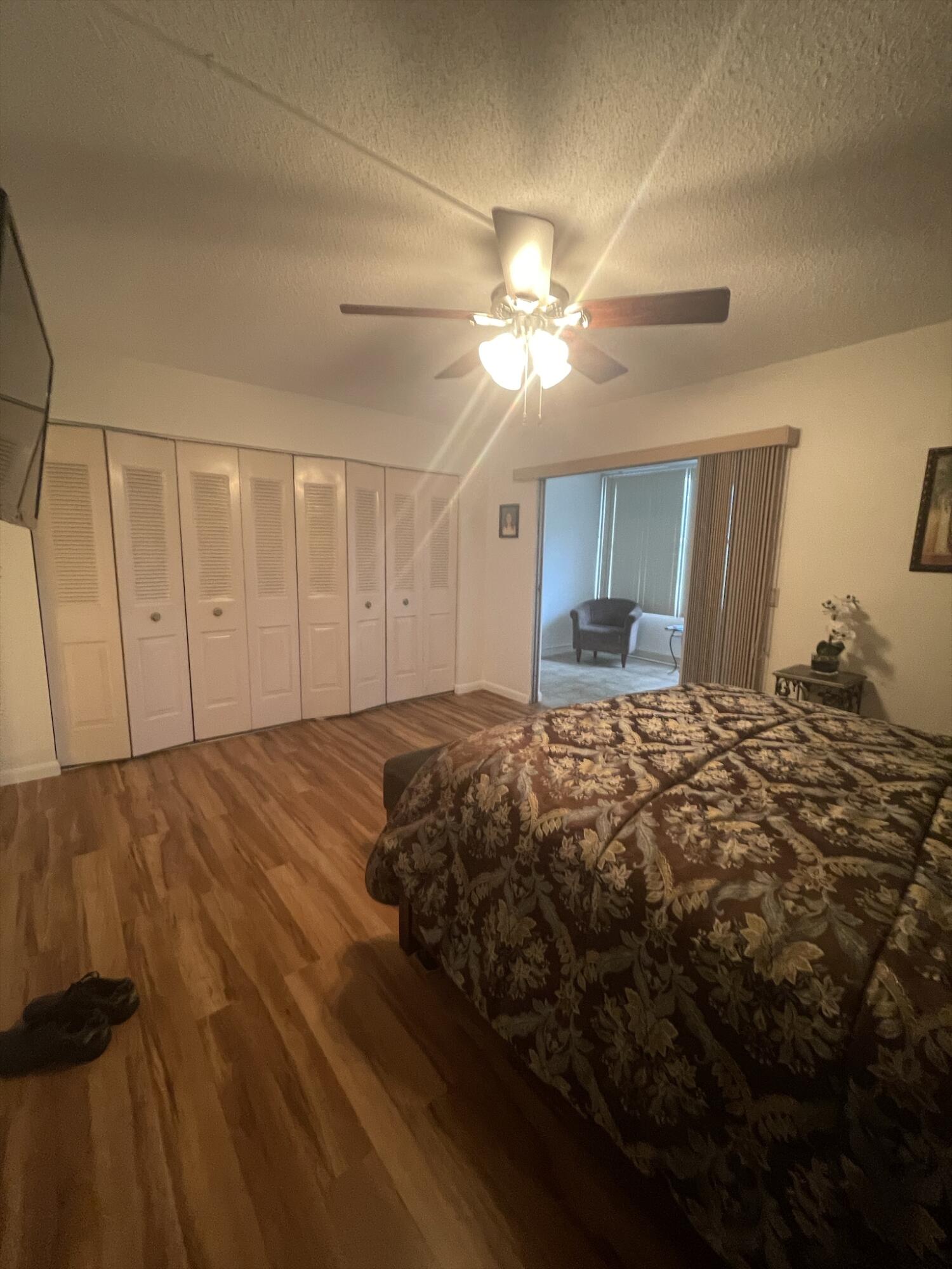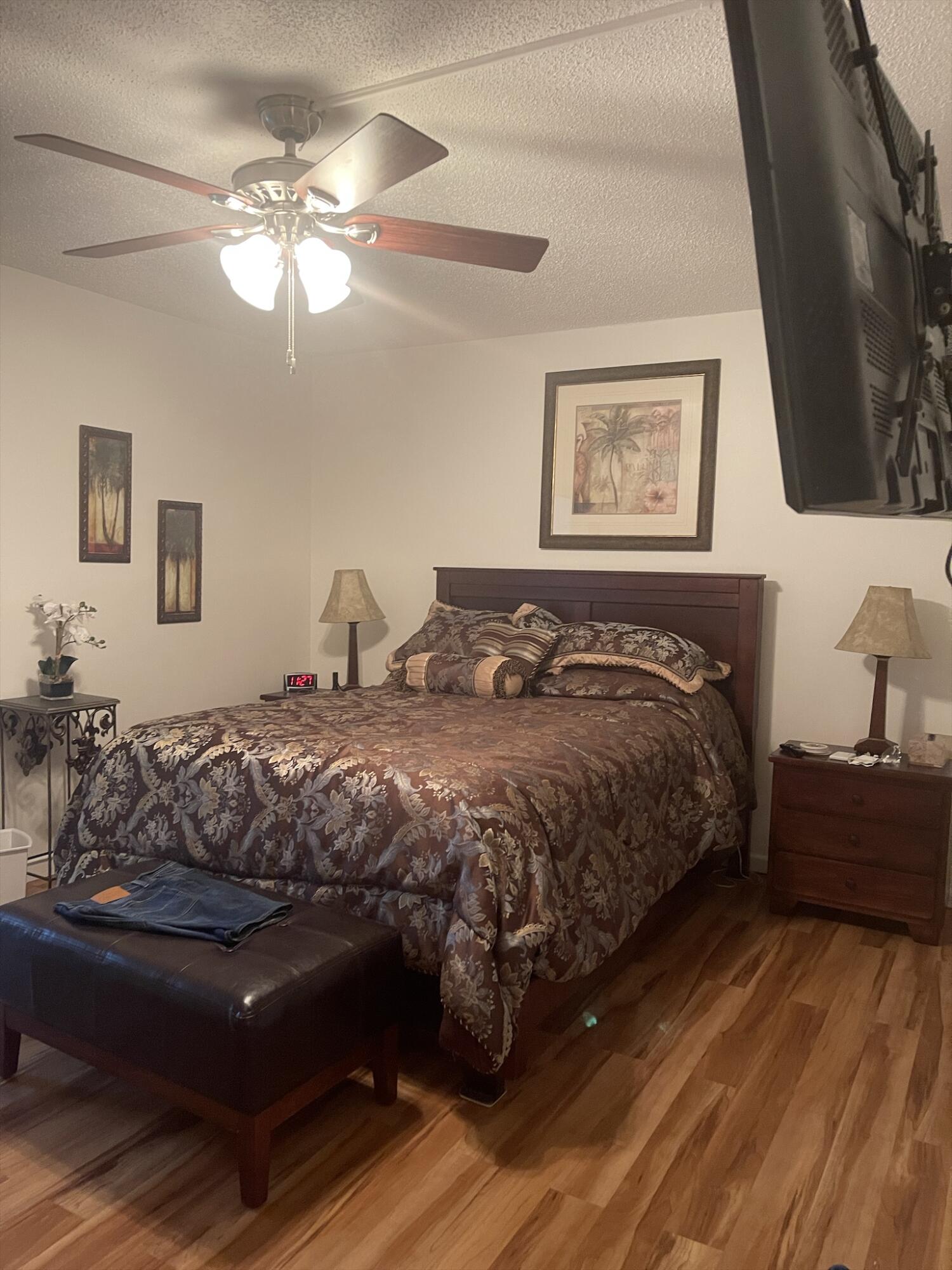 WOW!!! NICE UNIT IN A GREAT BUILDING. One bedroom, one and a half baths, first floor, near elevator, trash chute and laundry room. Directly across from Southampton pool. Assigned parking space (34) very close and directly in front of unit.Living Room (LR)/Dining Room (DR)-o Large with 52inch ceiling fan and lights (LR)o Gray/white ceramic tile installed three years ago (LR)o Queen size light oak Murphy bed to remain with unit (DR)o Wall mounted large television bracket and glass component shelf with cable and power outlet Kitchen -o Custom crafted counter tops and backsplash with Formica laminate and stainless-steel double bowled sinkwith pull out sprayero Black 32-inch ceiling fan with light kito Thirty-inch slide in range.......(read next page)......