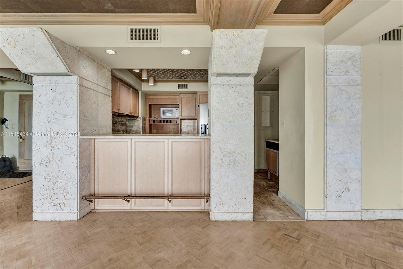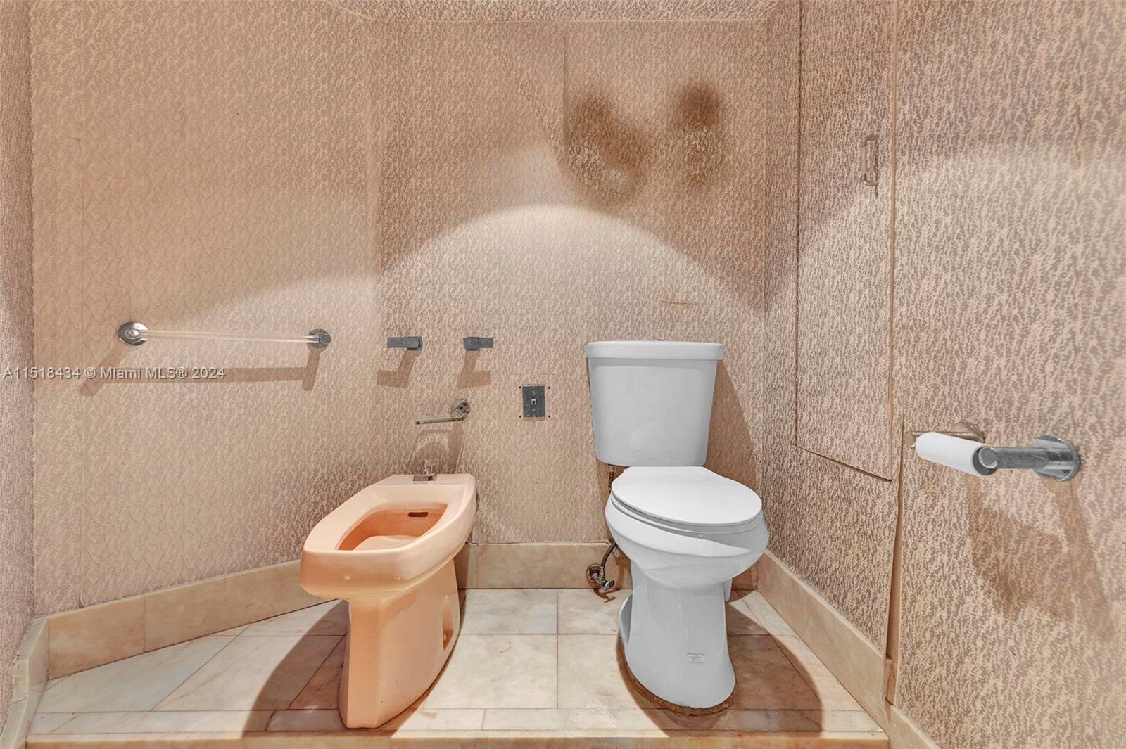 Located directly on Biscayne Bay with spectacular water and evening skyline views from all rooms. Centrally located near Bal Harbor, Aventura and Lincoln Road. Walking distance to grocery stores, restaurants and shops. Great opportunity to make this grand residence your own. Currently appointed with 1 extra large master bedroom with cedar-lined built-in closets, 2 separate his and hers master bathrooms with oversized spa tub, steam shower, heated towel racks, rain shower, bidet/water closet. Plenty of built-in storage for linens and accessories. Powder room with additional built-in storage. Built-in wine storage closet in bar area of the open living room. Building has concierge service and is dog-friendly and rent-friendly. Newly renovated, modern reception area. Swimming Pool.