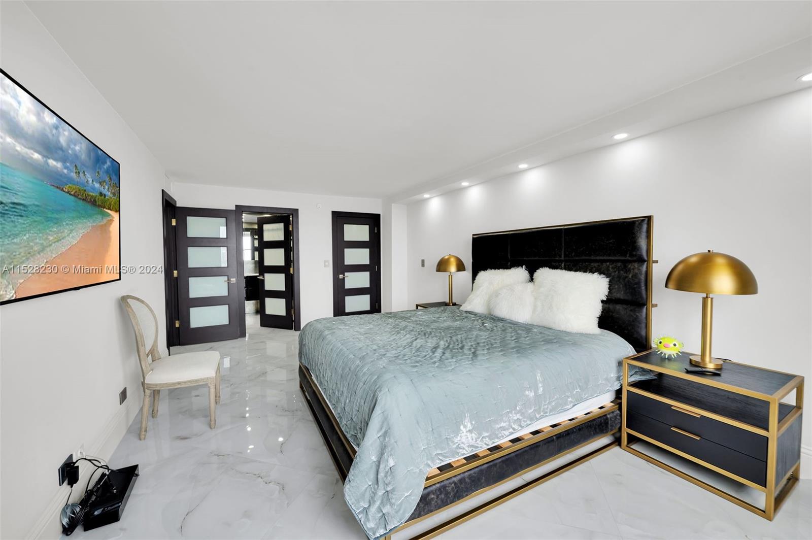 Spectacular 2- bedroom unit in the heart of the desirable Sunny Isles Beach. Totally and tastefully renovated with the finest materials and high-end appliances. No expense is spared on this exquisite residence, showcasing large Italian ceramic floors, high -impact windows, an elegant yellow onyx splash board, and bar with lighting that adds charm and coziness to the kitchen during the nighttime. Samsung appliances, new Bosh AC and high -quality granite counter top, along with custom -designed cabinets creates a perfect blend of sophistication and functionality. Biscayne Bay and city skyline, along with sunset and sunrise views from every room, makes you enjoy every moment spent in this home. Don't miss the opportunity to own a completely move in ready apartment with low HOA fees.