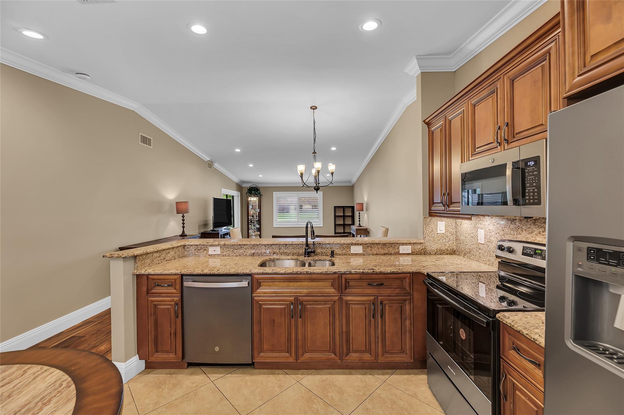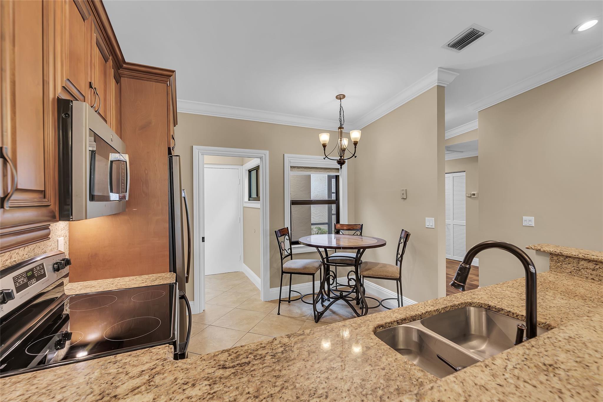 One of Whisper Walk's BEST VALUES! A SPACIOUS unit that's been COMPLETELY RENOVATED from the OPEN KITCHEN with GRANITE countertops, a BRAND NEW STOVE & OVEN with all SOFT-CLOSE cabinets & drawers; IMPACT WINDOWS and SLIDERS, a COZY FINISHED PATIO enclosed with IMPACT sliders and AC with a GORGEOUS LAKE VIEW. PREMIUM TILE FLOORS and PLANTATION SHUTTERS along with the RENOVATED DESIGNER BATHROOMS reflect the seller's commitment to quality. Add in the VAULTED CEILINGS, 1 car GARAGE with 2 additional parking spots, and ALL that Whisper Walk has to offer in terms of amenities and location makes this a MUST-SEE!