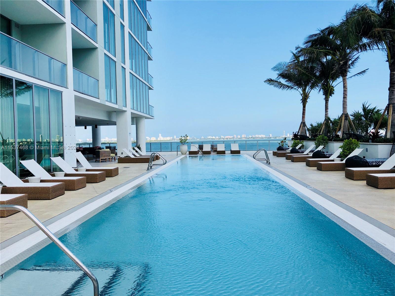Experience breathtaking open water views every day from the 26th floor at Biscayne Beach! Upon exiting the elevator, you step into your private foyer before entering this impeccably appointed 2-bedroom, 2.5-bathroom modern apartment. The 04 line is one of the most sought-after layouts for a 2-bedroom residence within this Edgewater building completed in 2017. The apartment is upgraded with built-out walk-in closets, Miele appliances, and window treatments featuring blackout shades. Crafted by the esteemed Thom Filicia, Biscayne Beach's interiors emanate contemporary elegance with a European touch. Embrace the prestigious lifestyle of Biscayne Beach, complete with luxurious amenities including two pools, a spa, sauna, gym, party and game rooms, beach club, tennis and basketball courts!