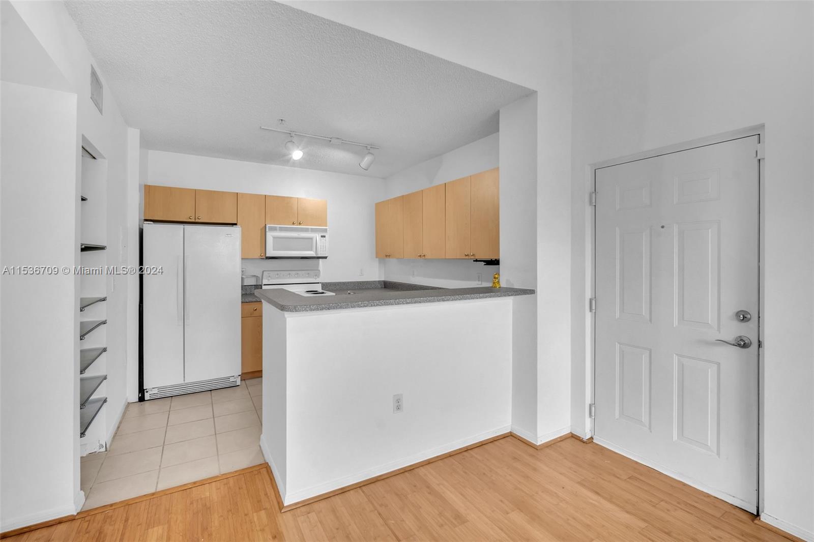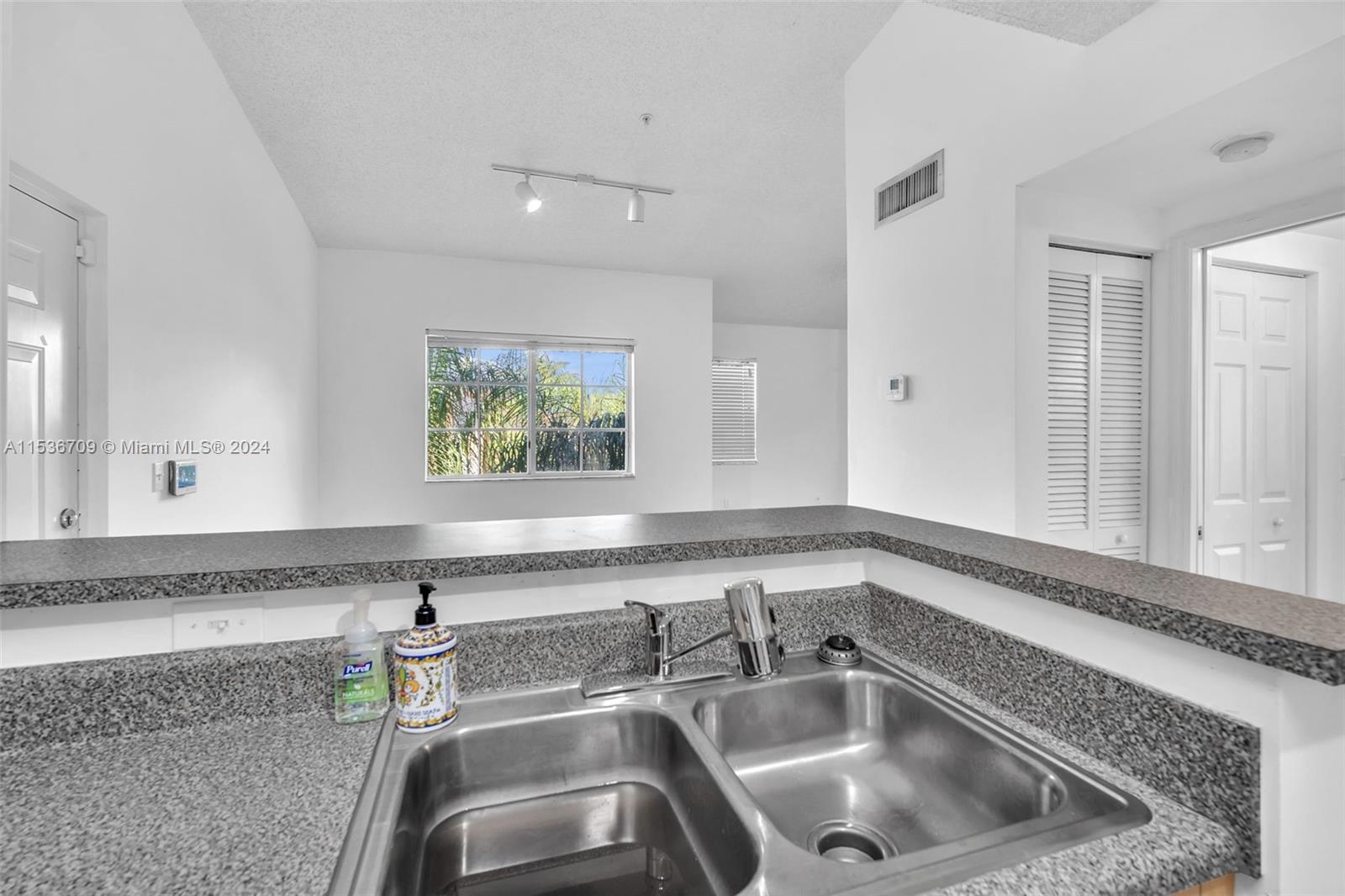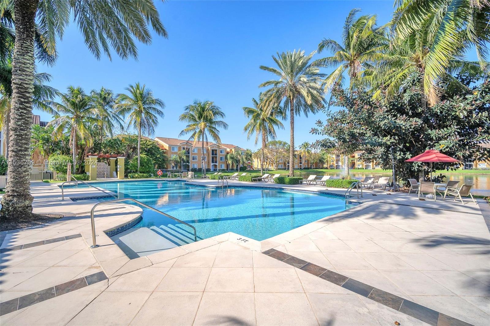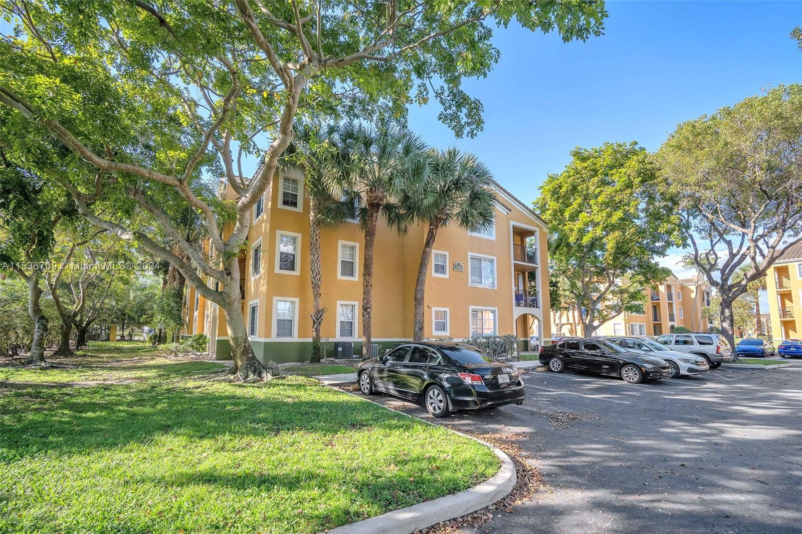 Cozy 1 Bed 1 Bath corner apartment in the heart of Miramar. Has open living/dining that's attractively tiled with wood laminate & finished with white blinds & freshly painted walls. Room has a lighted ceiling fan for added comfort & relaxing tree shaded balcony with hurricane shutters handy. Kitchen has laminate counters, light wood cabinets & convenient shelved pantry. Appliances are white Whirlpool (functioning but not new) & the basin has Brita water filter installed. Bathroom is white throughout with full length wall mirror. Your bedroom has large (entire wall) closet with impressive custom cabinets installed & a ceiling fan as well. Unit is located near to lots of shops, restaurants, services and the I75. Amenities include a pool & gym for health & relaxation. Suitable for investors.