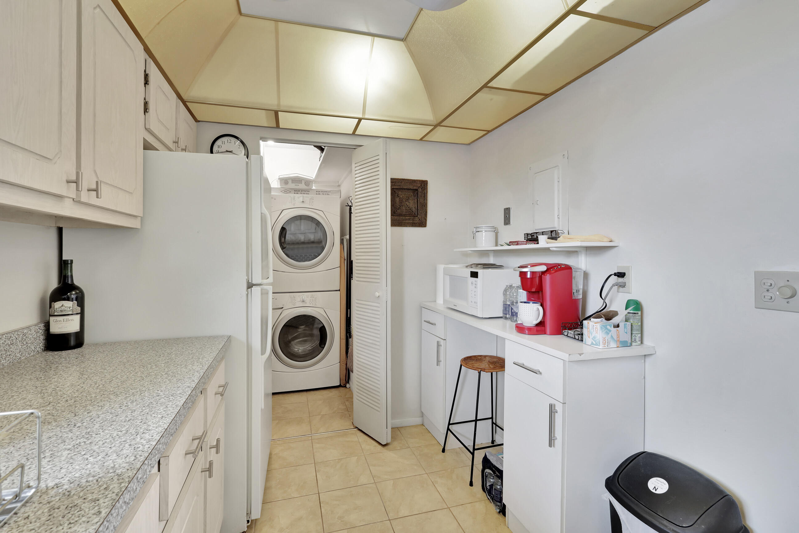 Discover serene living in Golden Lakes' sought-after 55+ community with this charming corner unit boasting stunning water views. This spacious 1-bed, 1.5-bath condo features tile flooring, 2022 AC, impact glass, and comes furnished with in-unit washer/dryer. Enjoy resort-style amenities including pool, theater, club room, and library, with community bus service available. Conveniently located near shopping, dining, and major transportation routes. Experience comfort and convenience at its finest in this Golden Lakes gem.