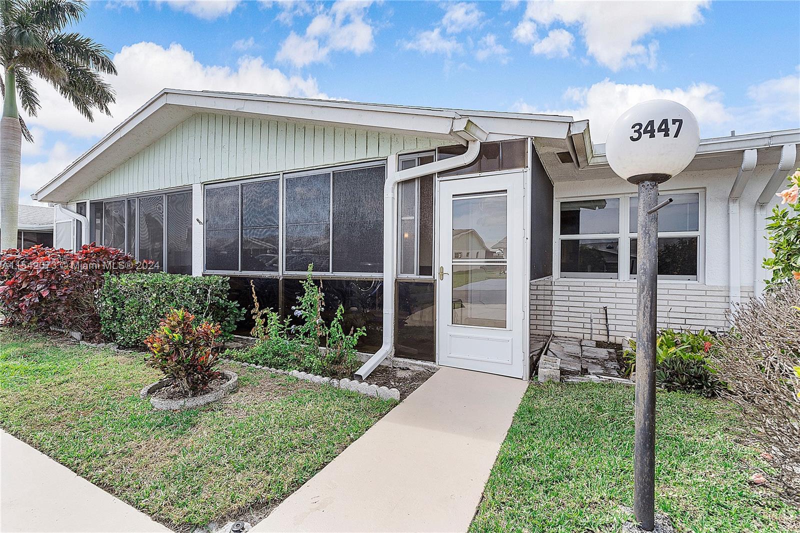 Completely renovated 2-bedroom, 2-bath villa with a stunning lake view. Roof replaced in 2018, brand new appliances, new A/C, granite kitchen countertops, bamboo flooring throughout. Located in a 55+ community brimming with amenities including golf, tennis and gym. Enjoy the convenience of parking right in front of your home with a spacious two-car driveway. The villa features hurricane impact windows for added safety and peace of mind. A serene retreat, perfect for relaxation and leisure. A beautiful blend of comfort, style, and modern upgrades. Furniture negotiable.