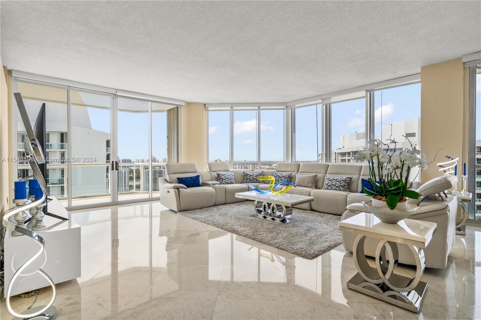 Spacious lower penthouse, tastefully renovated, featuring 2 bedrooms, 2.5 baths, with potential for a third bedroom. Enjoy stunning views of the Intracoastal and the city skyline. This residence boasts 10 foot ceilings and three private balconies. Inside, discover contemporary hardwood and marble flooring, complementing the stylish furnishings.