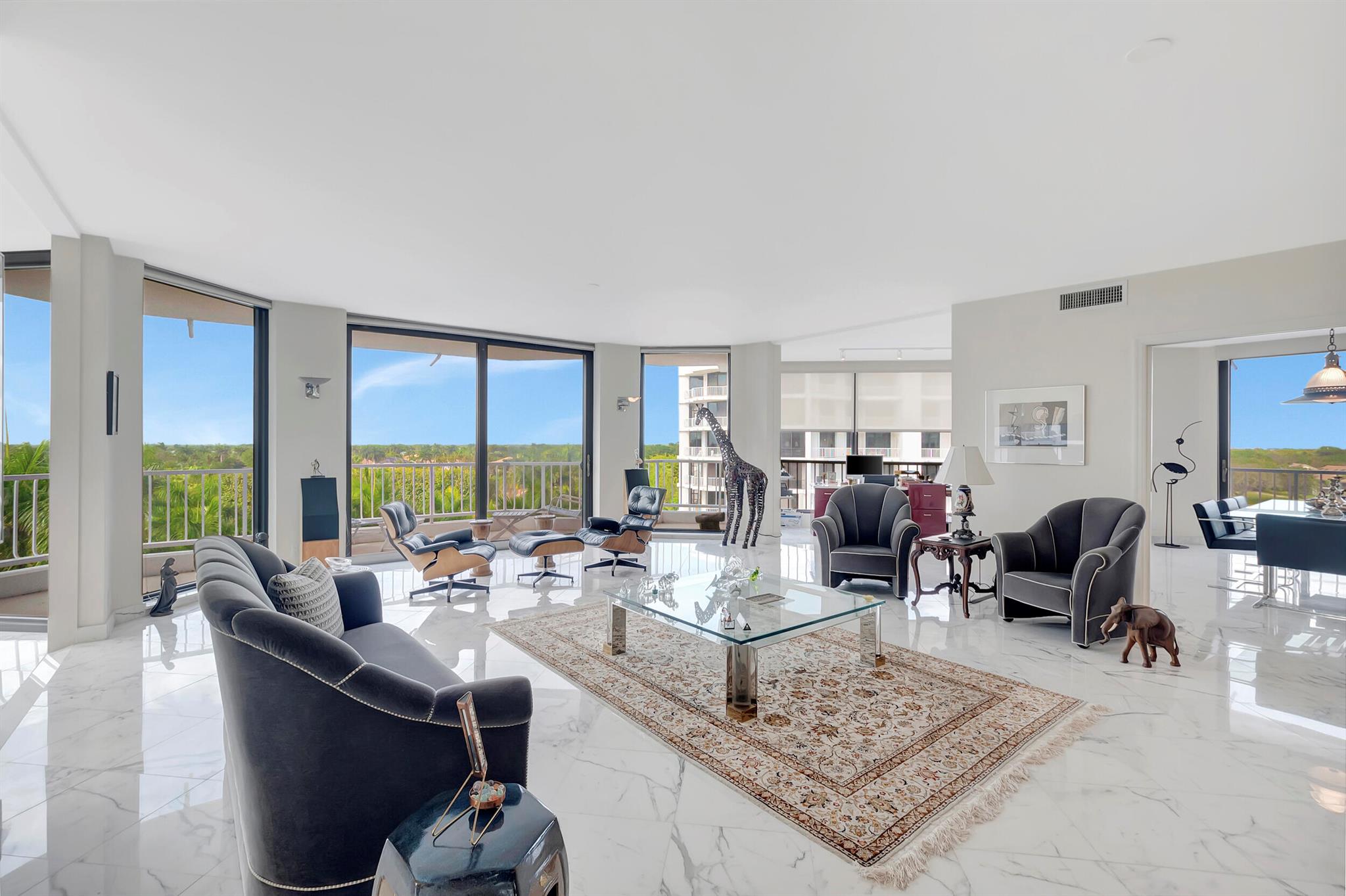 Your luxury home in the sky awaits. Spacious rooms, forever views, updated kitchen, marble floors in living area. Elevator special assessment paid in full by the seller. Some furniture will remain.Resort style living. 4 Championship Golf Courses, 27 Har-Tru Tennis Courts, 15 Pickle Ball Courts, 10 restaurants, State of the Art Fitness center, Sports Aquatics Complex, World Class Spa. Boca West is a mandatory equity membership country club. The membership joining fee of $115,000 plus $10,000 capital contribution to the master association is due at closing. 2024 mandatory social dues, $20,394