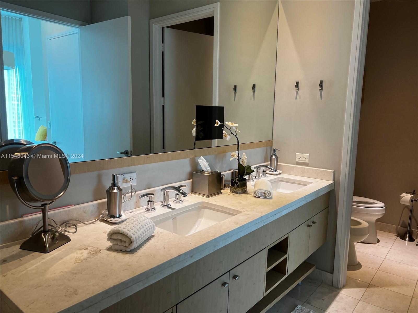 Set in the world-class gated island of Brickell Key, this 17th floor 2/2.5 split floor plan unit at the Asia Brickell Key can be yours. Just east of the Miami Brickell area, it offers a waterfront ultra-luxurious lifestyle, private elevator w/bio-metric secure controls that opens to a foyer, 12' ceilings & marble floors. The balcony overlooks the skyline, river & Biscayne Bay. Floor-to-ceiling windows, Subzero fridge, Miele kitchen, Bosch W/D & custom closets. Primary bath w/marble shower, Jacuzzi & WC. An extra storage room. Amenities: 24hr security/front desk, lobby, fitness center, pools, sauna, racquetball/basketball, tennis court, valet for guests, meeting room. Completely furnished by Artefacto. Owner rarely used as 2nd home. Impeccable.