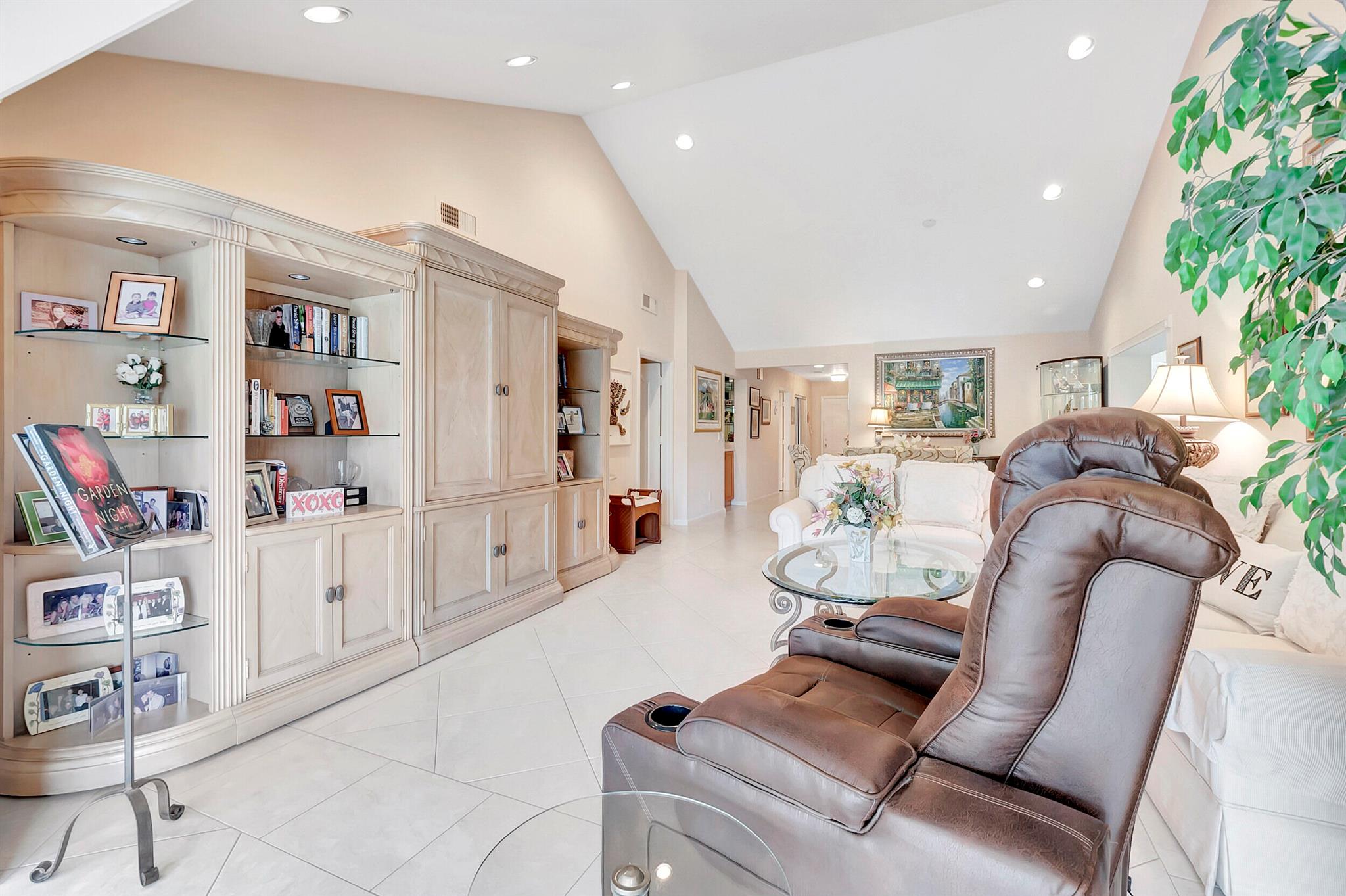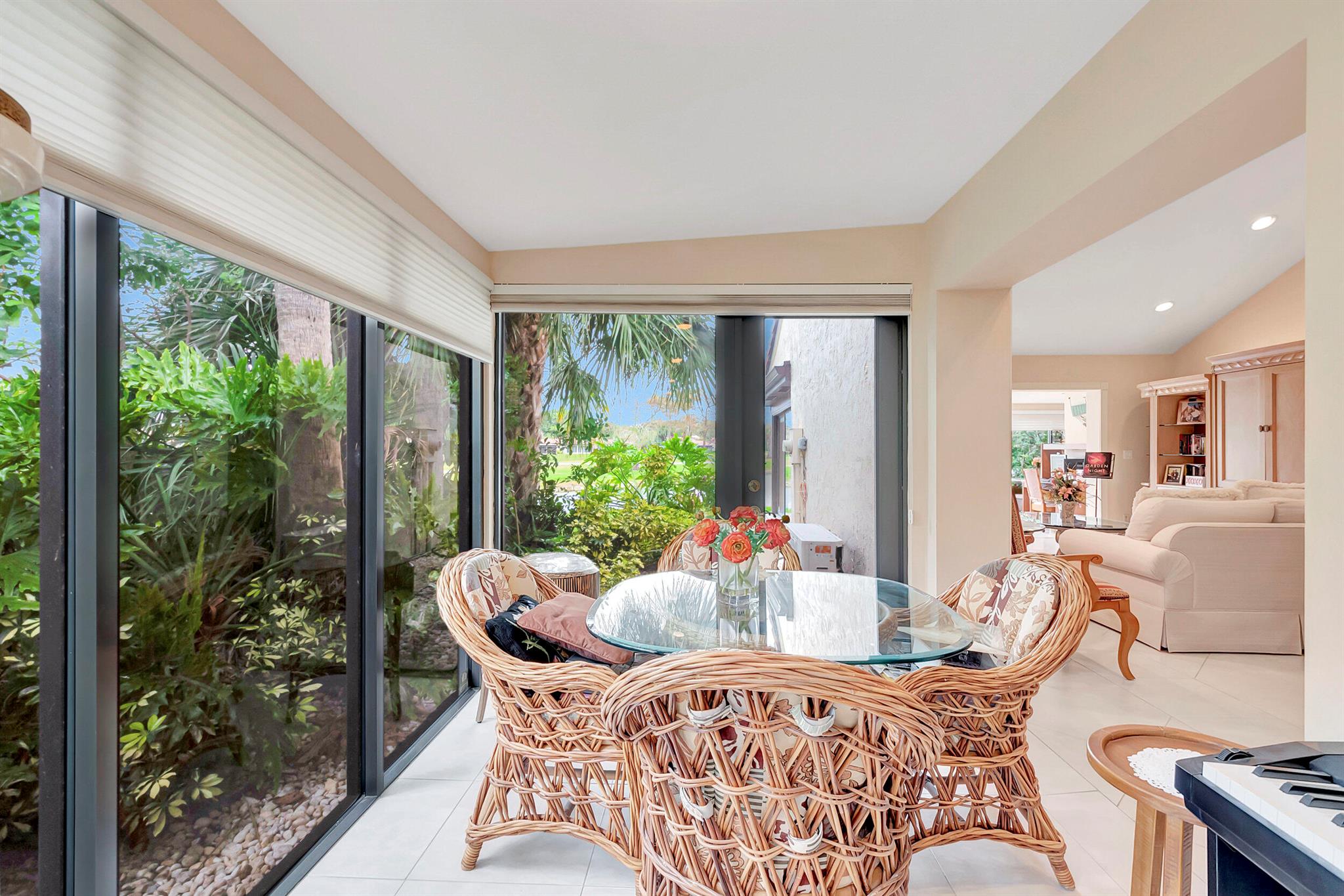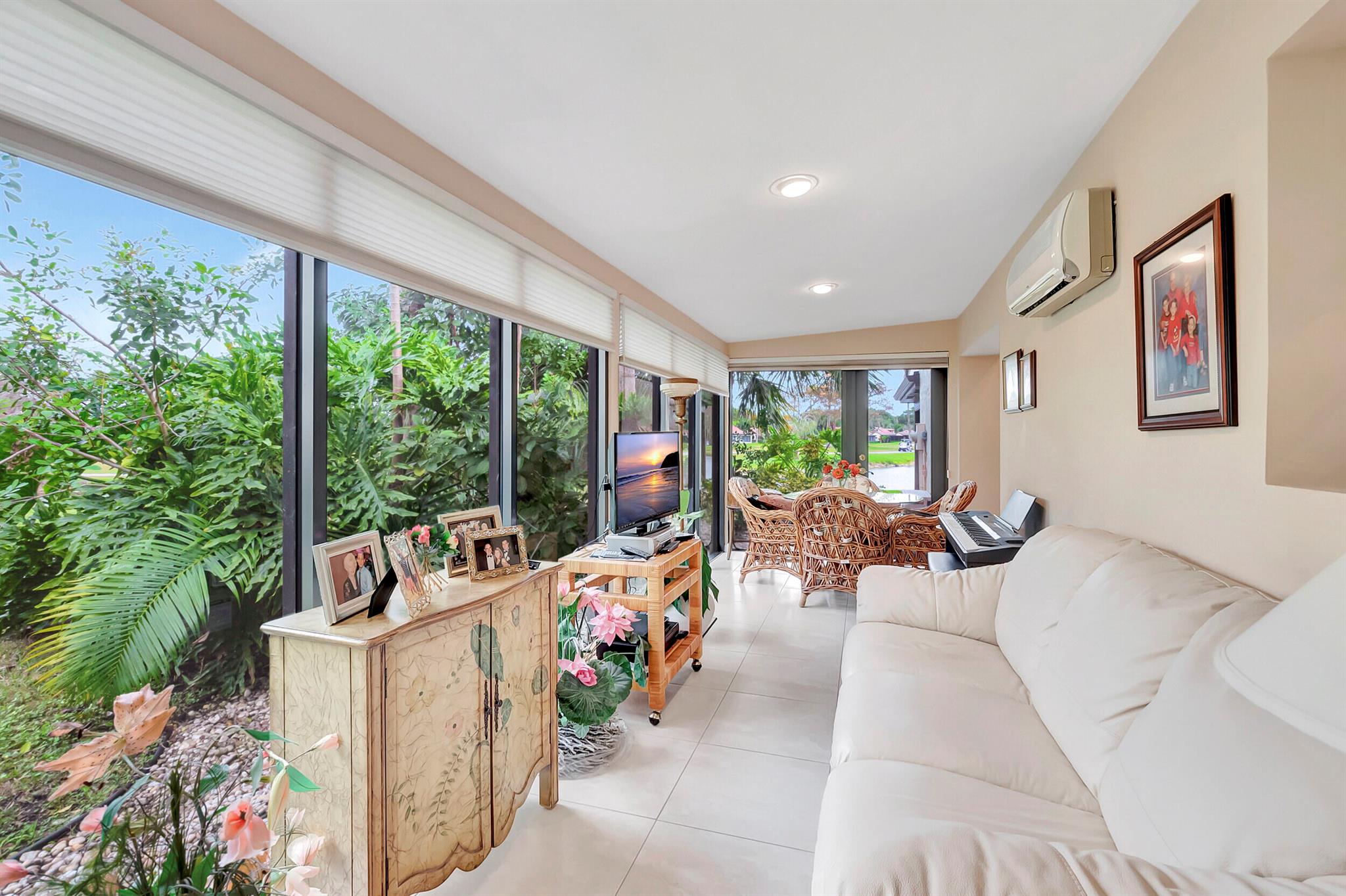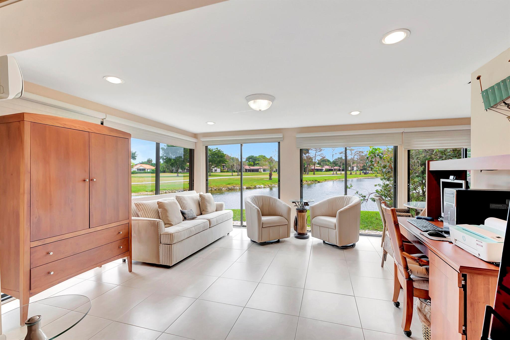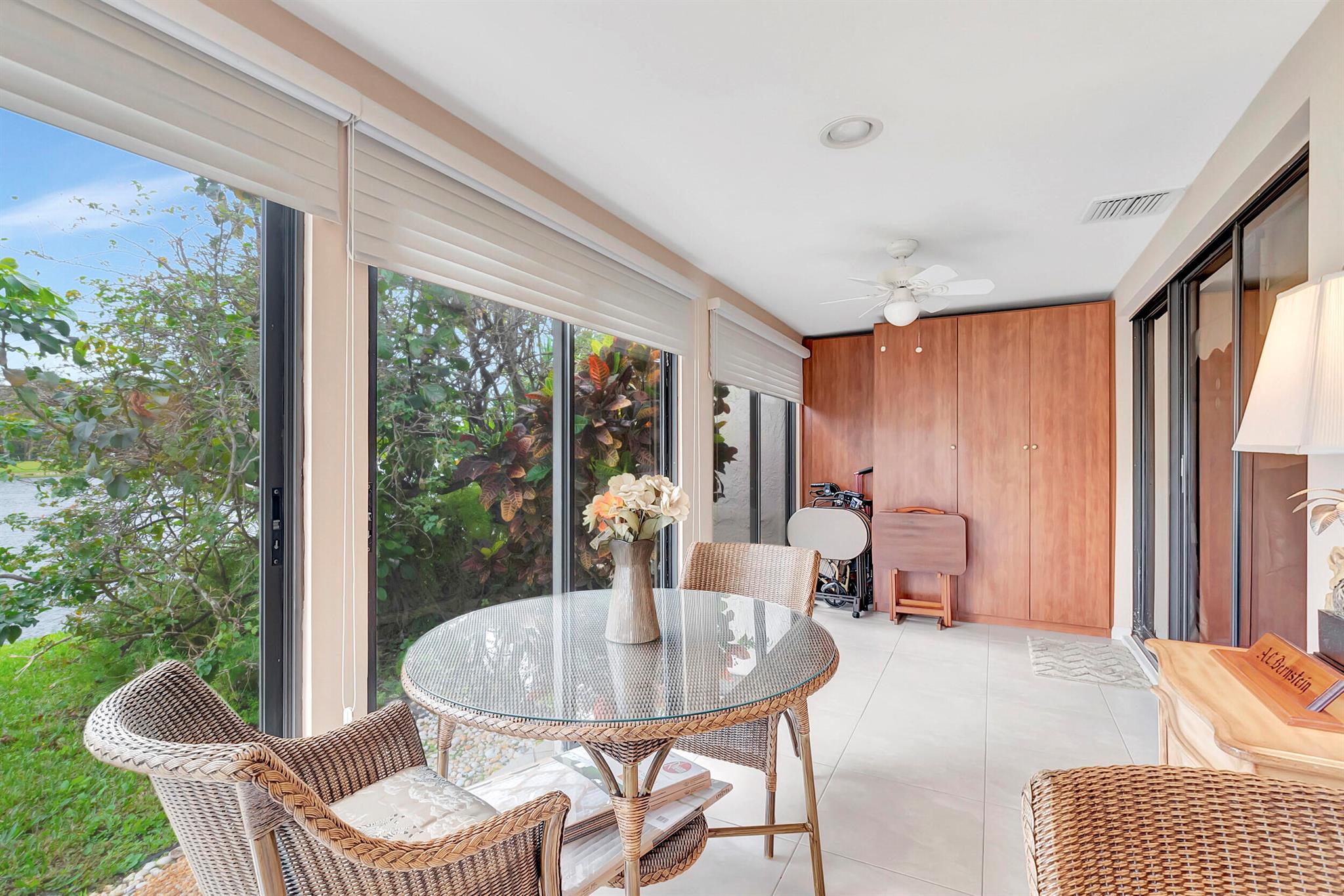 Rare find alert! This stunning 2 bedroom, 2 bathroom villa is located on a picturesque lake with a golf course view. No membership required! Stainless steel appliances, granite counter tops, custom cabinet. High volume ceiling this home is sure to impress. Enjoy the sunset views from the enormous glass enclosed patio with one of the best water views. Plenty of closet space and ample storage this home has everything you need. A/c 2020, water .heater 2020, NEW ROOF .Club membership is available but NOT required! Must see!