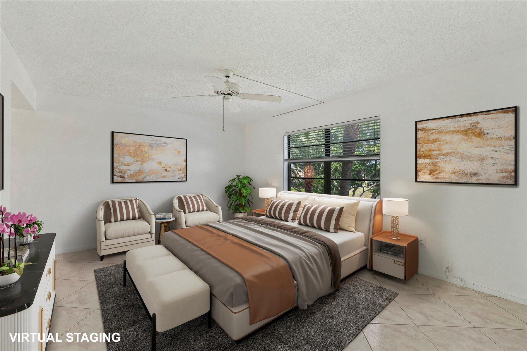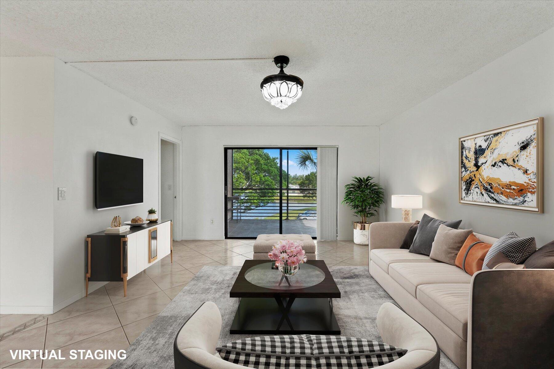 Welcome to your golden years in the heart of paradise! This exquisite condo in the coveted Golden Lakes community of West Palm Beach, FL, is more than just a home; it's full of rich experiences that await you. This floor plan is the largest in the building and most sought-after. Nestled beside a serene lake, this two-bedroom, two-bathroom condo boasts a spacious master bedroom with a generously sized closet. Imagine waking up to the embrace of the morning sun, as the master bedroom offers breathtaking sunrise views over the lake. You'll enjoy this unit being the largest in the building and also an end unit with perks of a massive living room and dining room. Step onto your private balcony, where you can savor your morning drink while overlooking the water & pool.