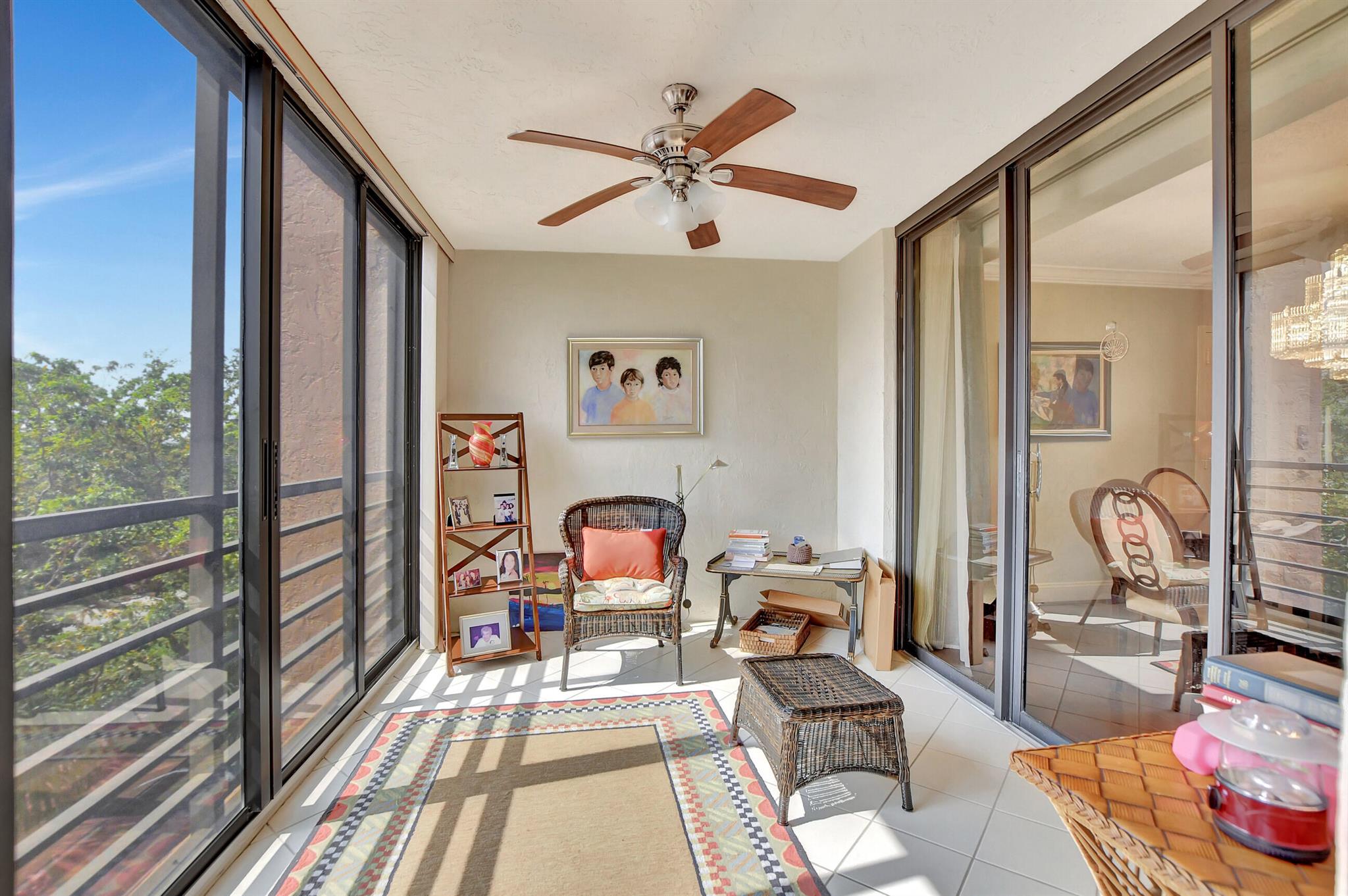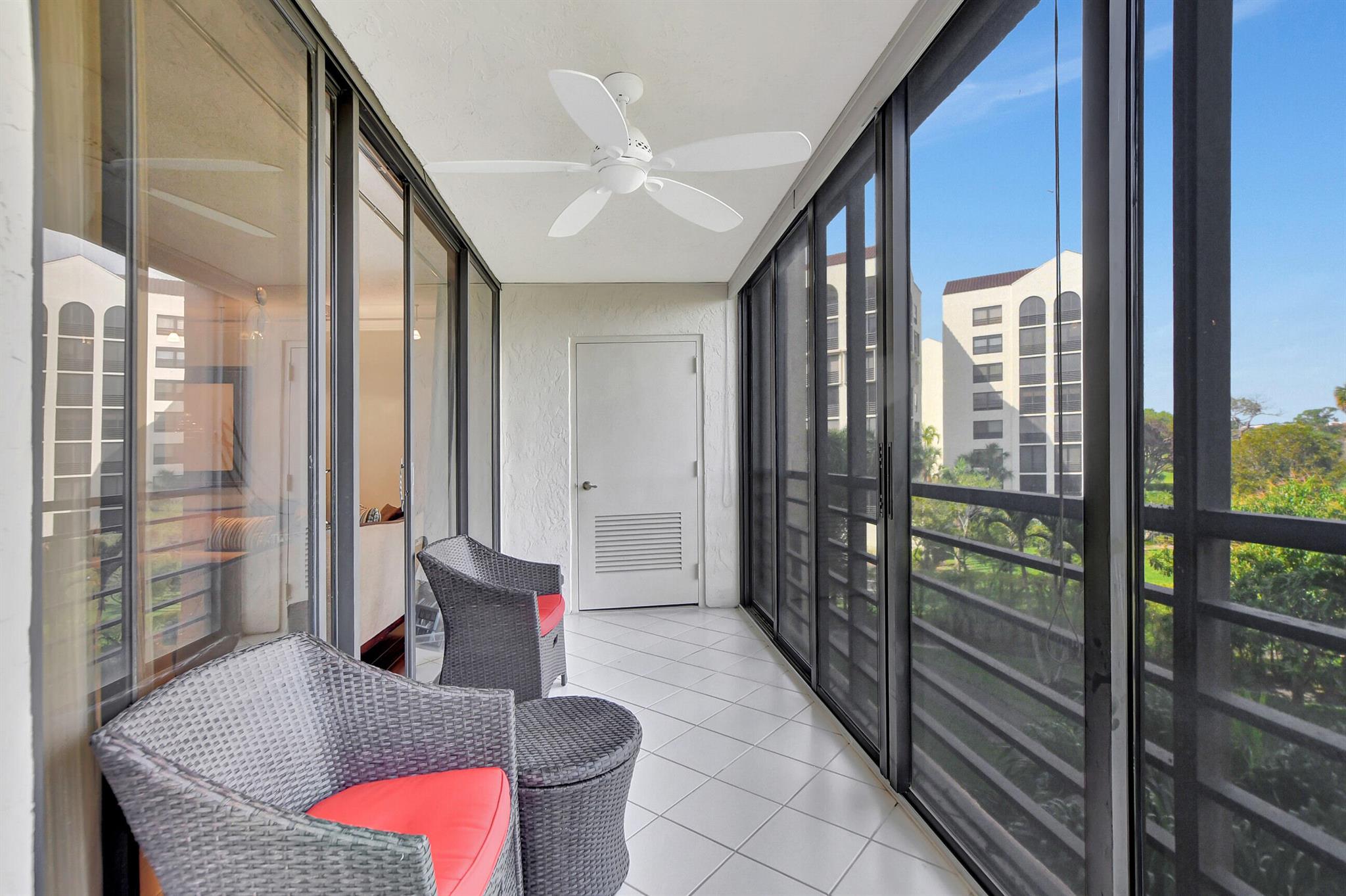 You won't believe the stunning golf and western views from this 4th floor 3/2 condo in popular Promenade. Glass-enclosed patios provide a picturesque setting to enjoy the beautiful views. Upgraded laminate flooring graces the living area. The kitchen boasts replaced cabinets, stainless appliances, backsplash, countertops, and a desk area, all in pristine condition. Vinyl flooring extends throughout the master bedroom. The master bathroom has been tastefully updated with gray and white tones, featuring a spacious, updated shower and double sinks. The 3rd bedroom/den offers versatile space. Brand new washer, A/C 2009. Don't miss out on this opportunity to enjoy luxurious living in a truly exceptional property! Assessment for new roof and elevator paid by seller!