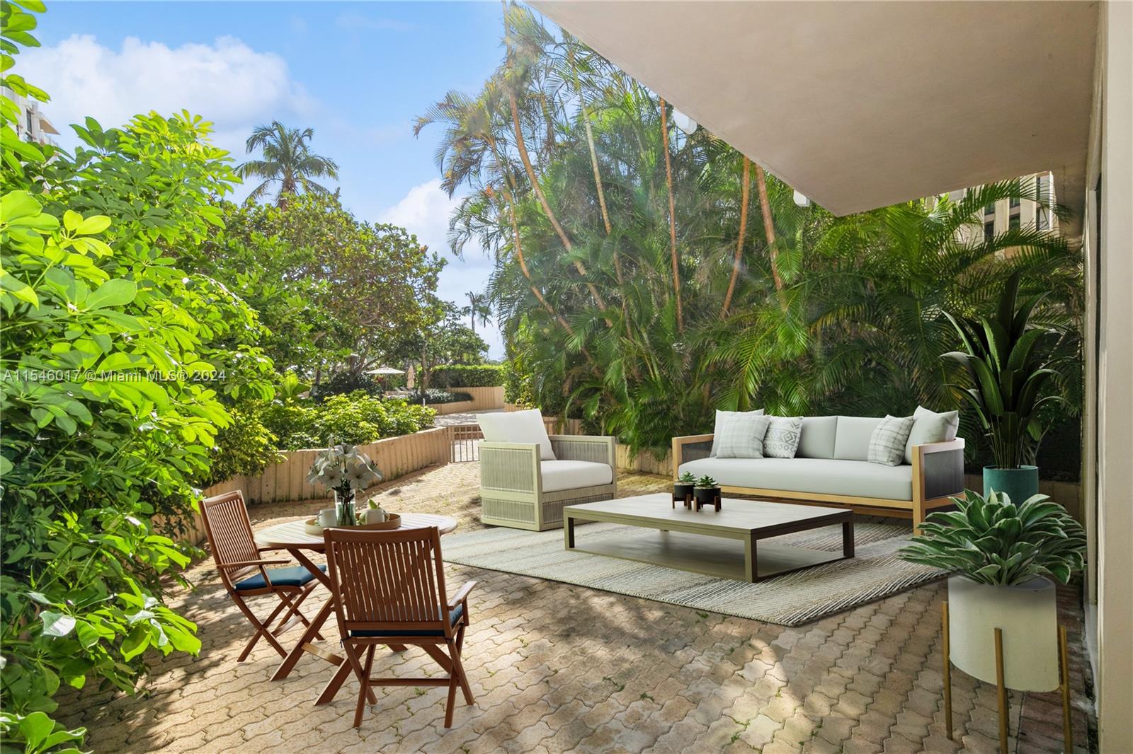 Own a lanai apartment with a delightful 97' patio, tax roll initially designated it as a 2/2 with 1409 sq ft, but it has been modified to a 1/1.5 with an extra den (bedroom). The updated kitchen features new appliances, and ample storage space with a hookup for a washer and dryer. This meticulously maintained unit offers a flexible layout, providing an option to move in seamlessly. The open floor plan connects living and dining areas, creating an ideal space for entertainment or relaxation. Beyond the interior, the lanai apartment offers a unique outdoor experience. The 97' patio extends your living space, perfect for enjoying the tropical climate. A private gateway to the pool and steps away from the beach provides convenient leisure opportunities. Paradise awaits in your new lanai!