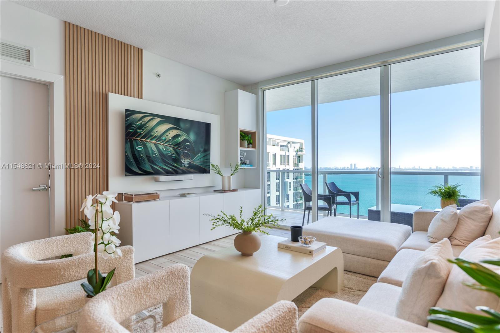 Move-in ready 3bed + 3bath apartment with direct Bay views in the heart of trendy Edgewater. This flow-through unit features a split-level floorpan with an integrated living/dining/kitchen area next to the Master suite and two additional bedrooms in the opposite side, offering privacy and silence, making it ideal for kids or a home office. All bedrooms have built-out closets and en-suite bathrooms. Additional upgrades include porcelain tile floors, designer wallpaper, custom-closets and two deeded parking spots. About Bay House: Built in 2015, Bay House is a low-density high-end building filled with amenities, including: an expansive pool deck with pool and hot tub, a business center, a fitness center, 24-hour valet parking, 24-hour security, a children’s playroom, and pool club room.