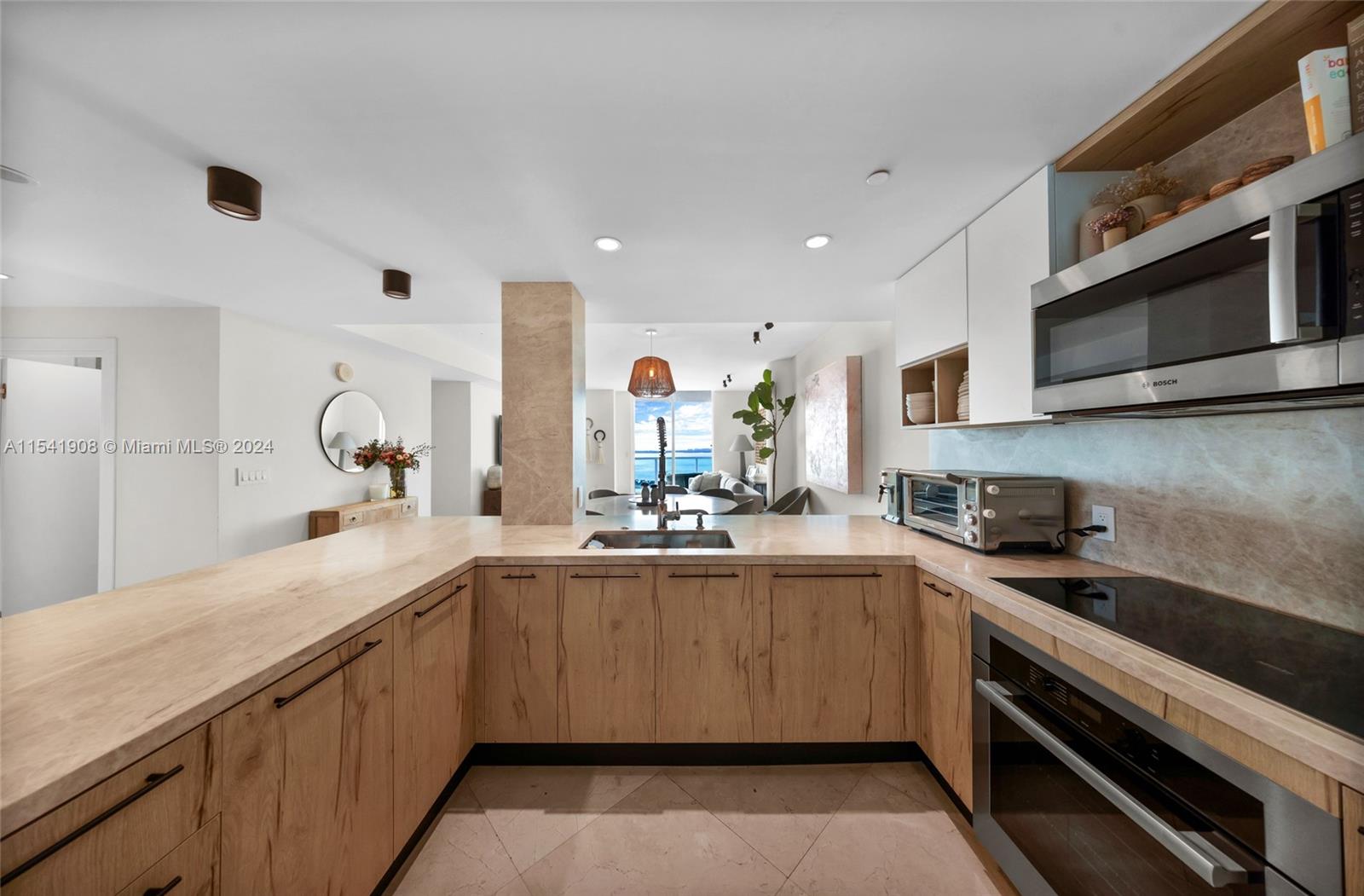 Newly listed! Step into luxury with this stunningly renovated 3-bedroom, 3-bathroom residence with breathtaking direct ocean and bay views. Every detail displays elegance, from the lavish marble flooring to the Austrian wood accents throughout. The fully reimagined kitchen showcases natural Brazilian quartzite countertops and top-of-the-line European Miele appliances, while enhanced ceiling lighting illuminates the space. Set within a prestigious full-service building, residents enjoy an array of amenities including a gym, pool, and outdoor playground, ensuring a lifestyle of comfort and convenience.