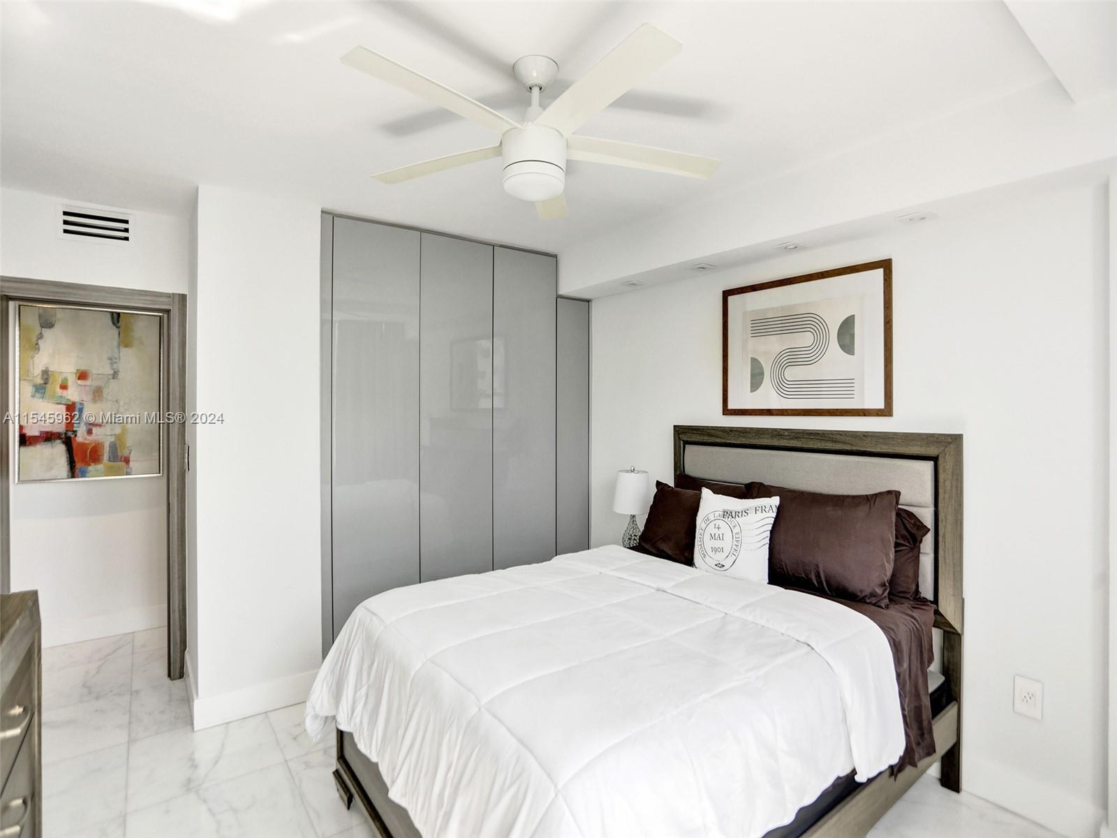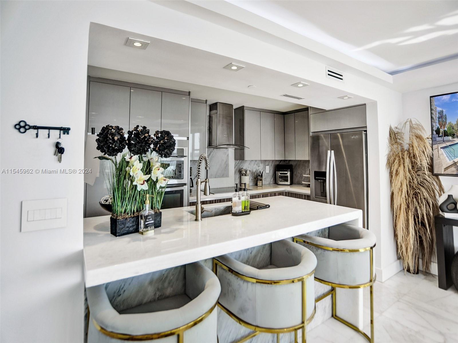 This stunning home is a rare gem and won't remain available long! It can be sold furnished or unfurnished and boasts a spectacular bay view enhanced by modern contemporary decor. It is ideal for singles, families, and investors alike (Available for immediate short-term rentals). It also features a remodeled kitchen w/Quartz countertop, custom cabinetry, marble floors, custom lighting & spacious closets (Walk-in Closet in the Primary Bedroom). Both bathrooms have wall-to-wall marble tile flooring & Quartz countertops. The Community has a security guard, a large swimming pool, and a newly renovated gym. The location is unbeatable, just minutes from the beach, shopping, and restaurants. Commuting is a breeze, with downtown Miami, South Beach, and Bal Harbour all just 15 minutes away.