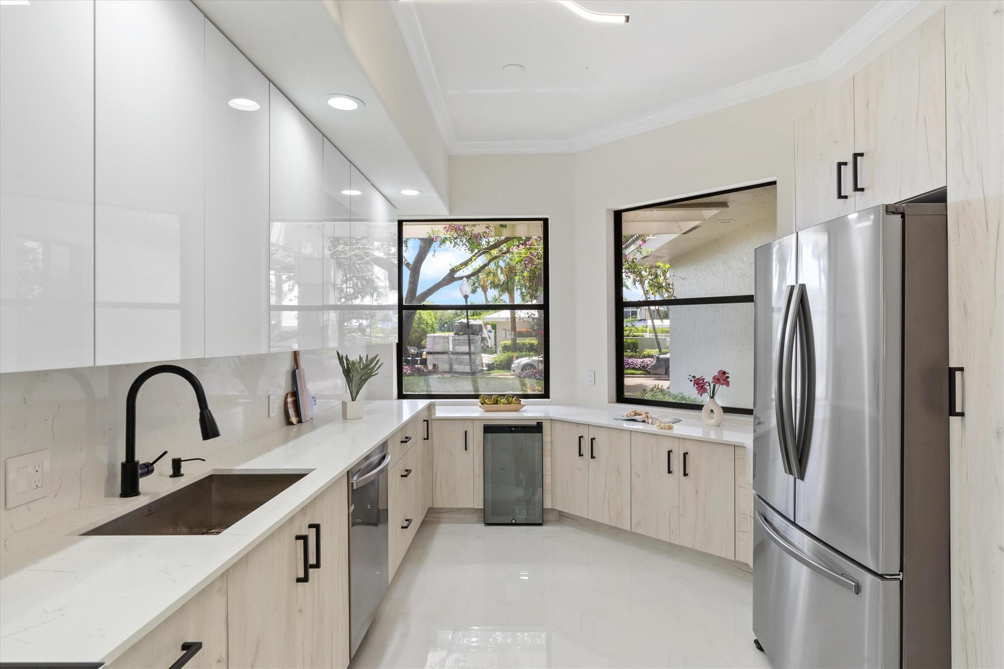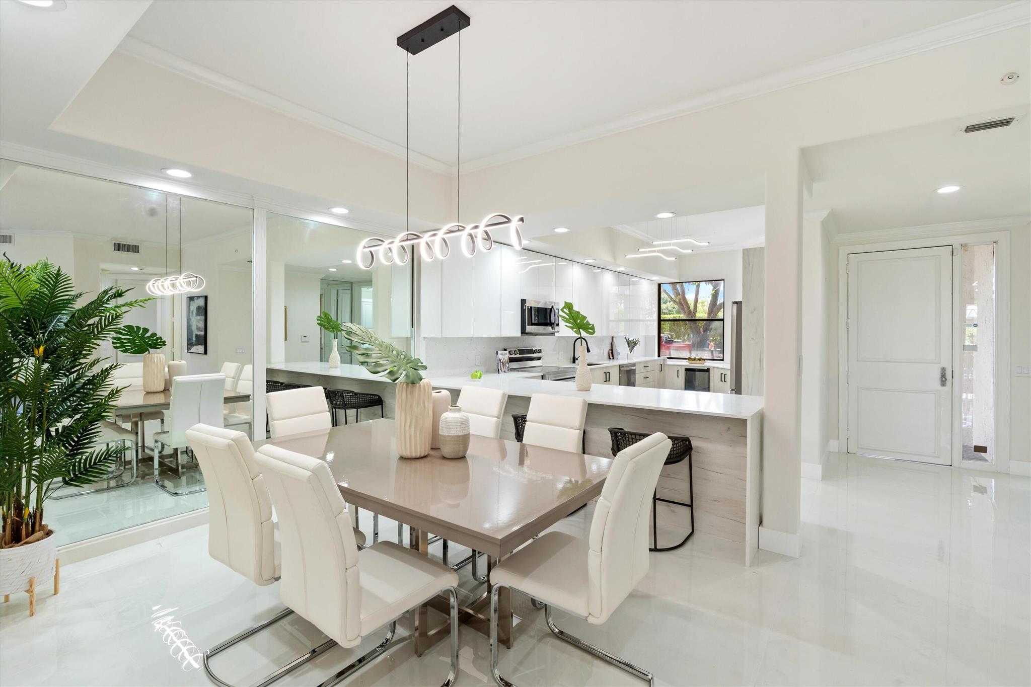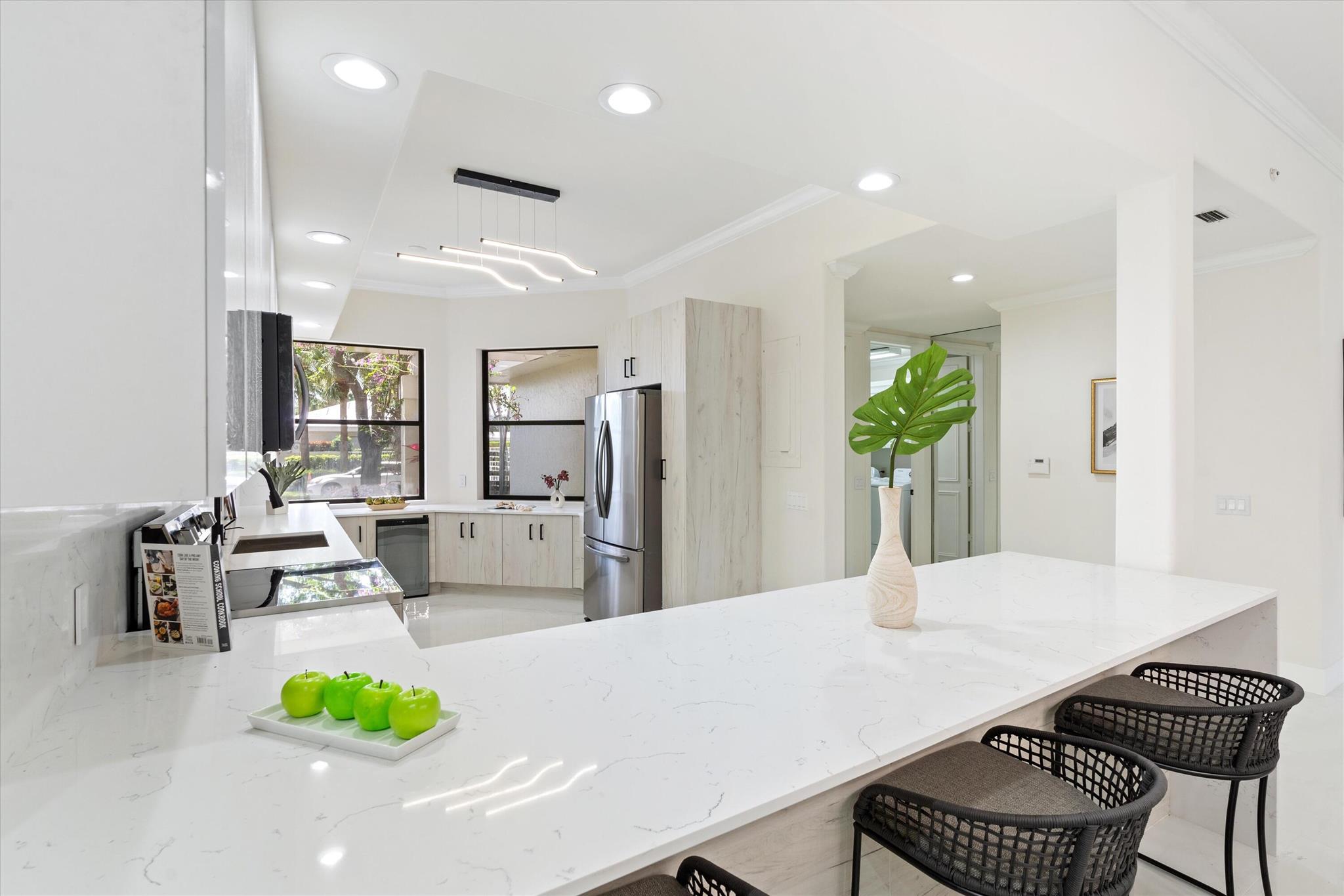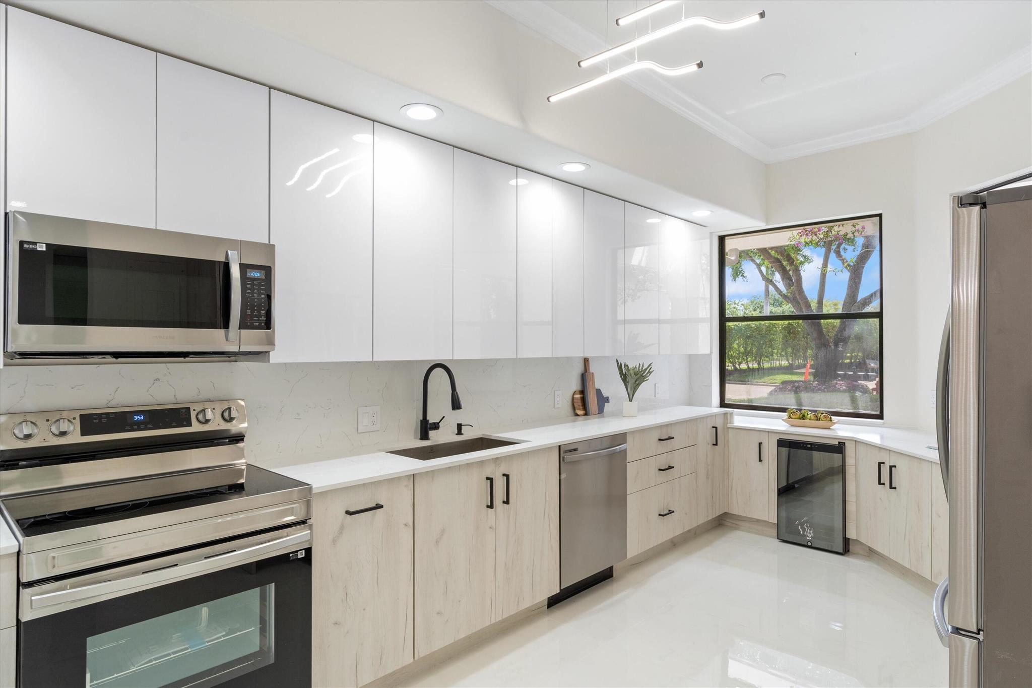 Impeccably redone light and bright first floor condo offering 3 bedrooms and 2.5 bathrooms with a gorgeous golf course view. This home offers an exceptional living experience. Beautiful new kitchen boasts quartz countertops with waterfall edge, breakfast bar, and a wine cooler. All new lighting and fixtures throughout. The spacious primary bathroom is complete with a walk-in closet featuring built-in storage. Situated within walking distance of the main clubhouse and just steps from the neighborhood pool, this unit offers convenience and luxury. Schedule a showing today!