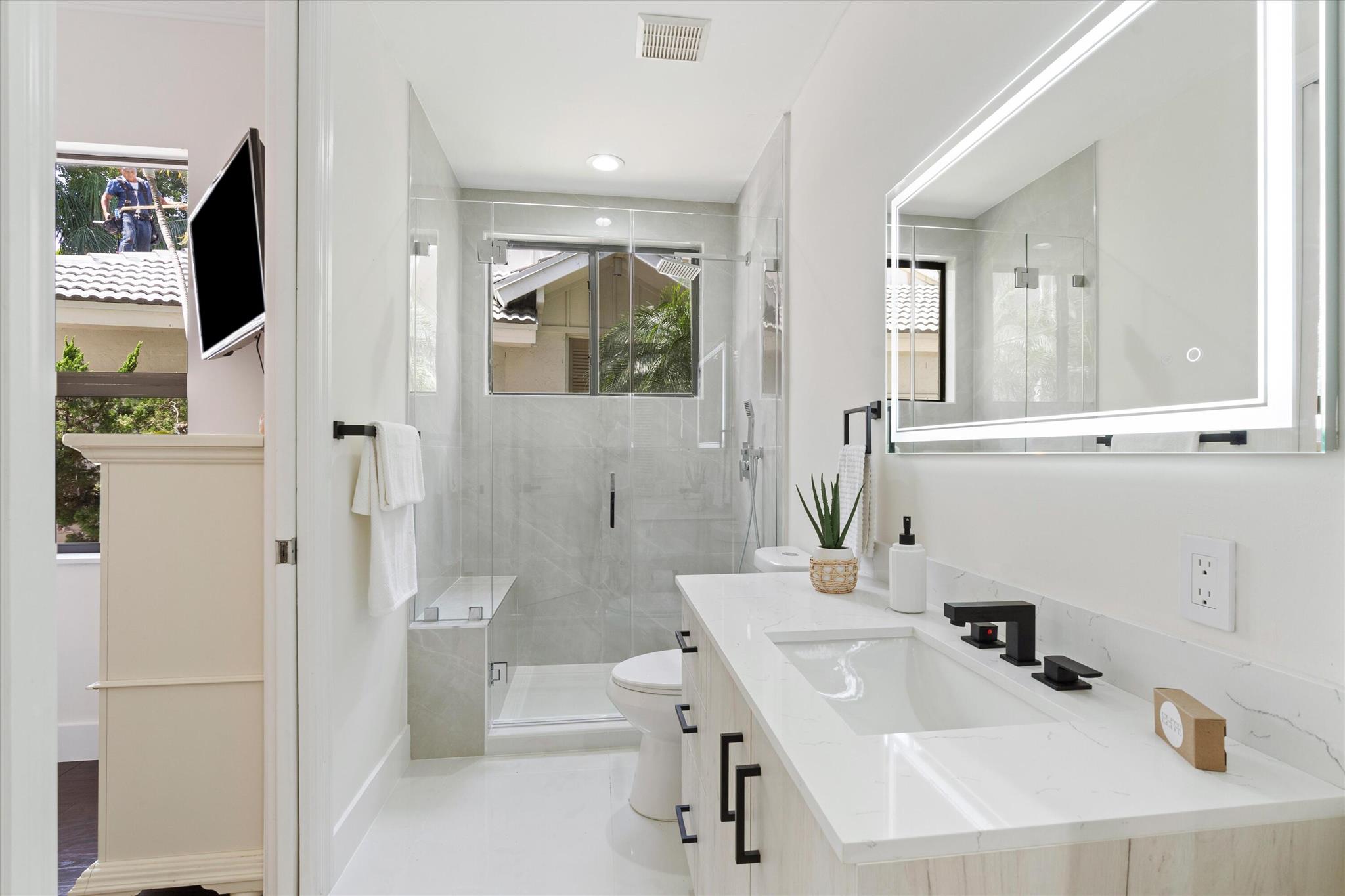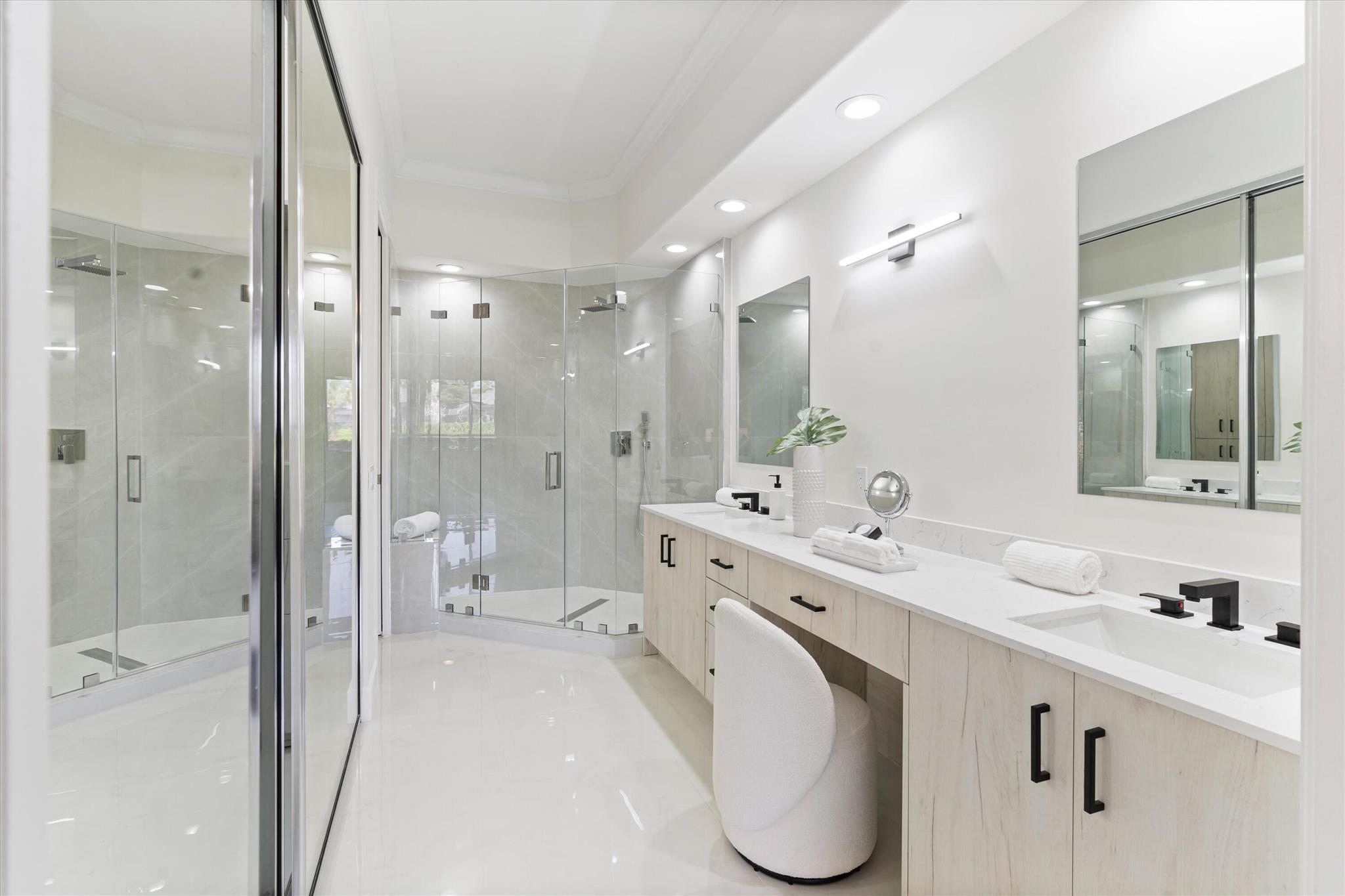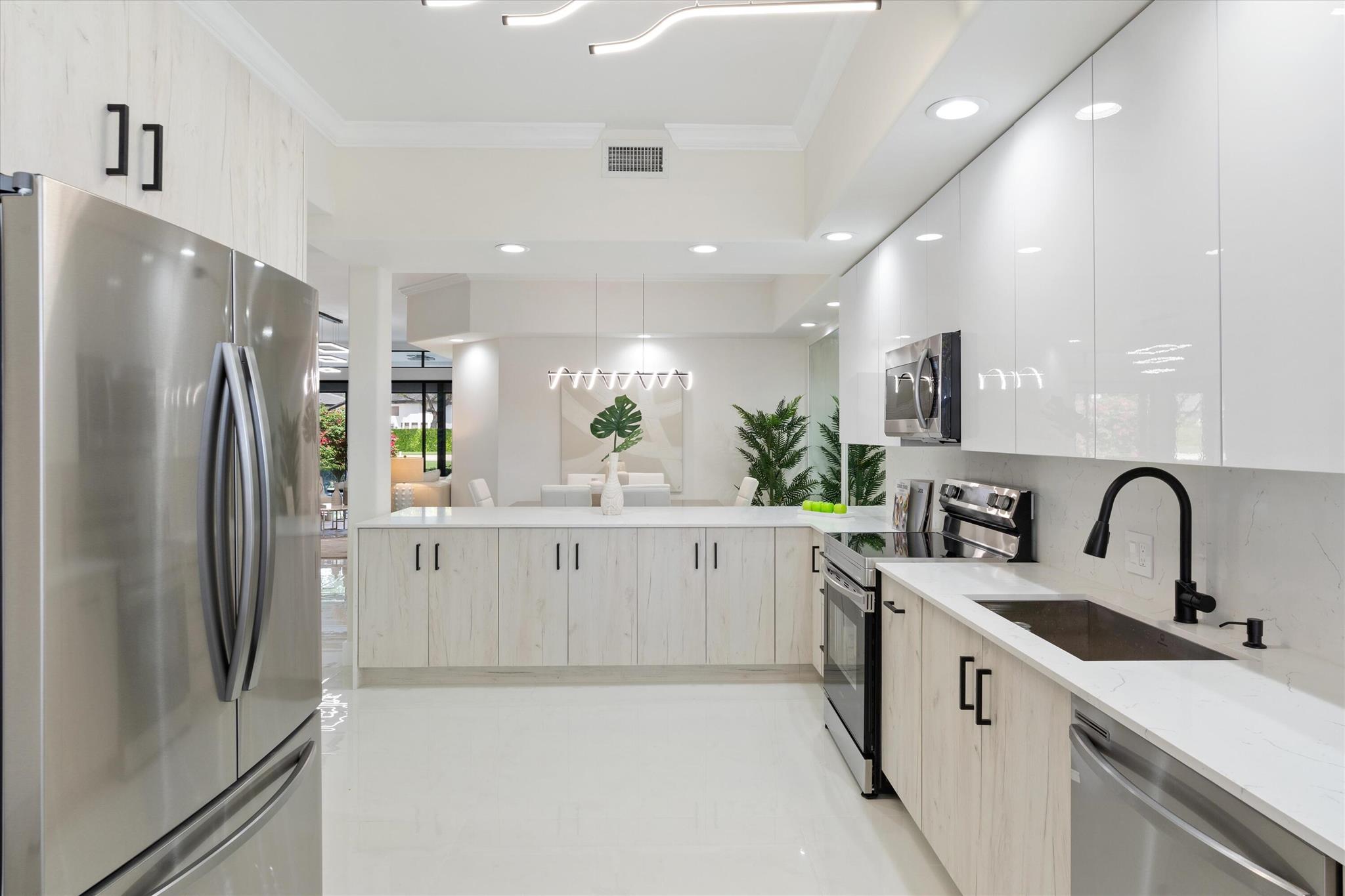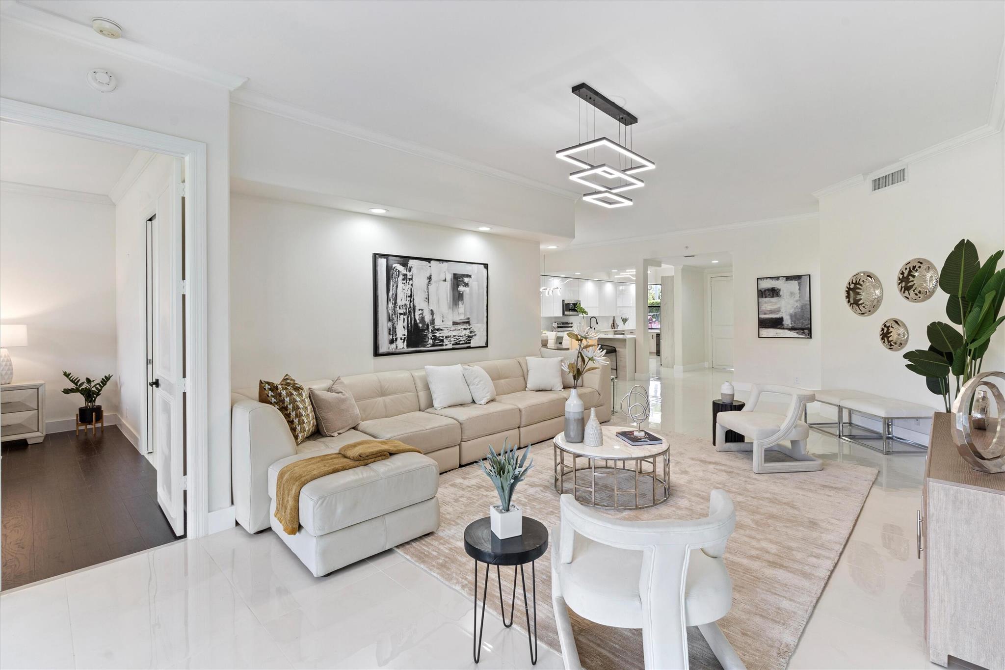 Impeccably redone light and bright first floor condo offering 3 bedrooms and 2.5 bathrooms with a gorgeous golf course view. This home offers an exceptional living experience. Beautiful new kitchen boasts quartz countertops with waterfall edge, breakfast bar, and a wine cooler. All new lighting and fixtures throughout. The spacious primary bathroom is complete with a walk-in closet featuring built-in storage. Situated within walking distance of the main clubhouse and just steps from the neighborhood pool, this unit offers convenience and luxury. Schedule a showing today!