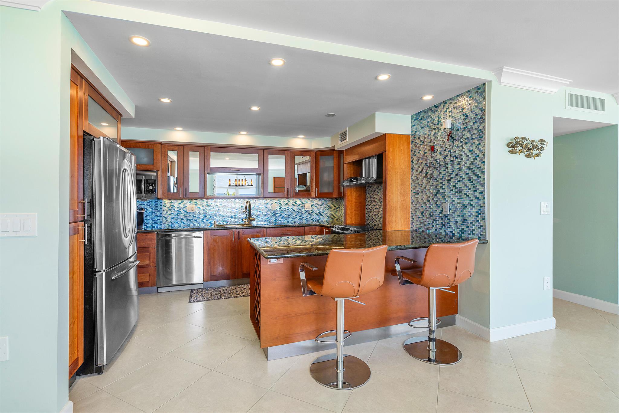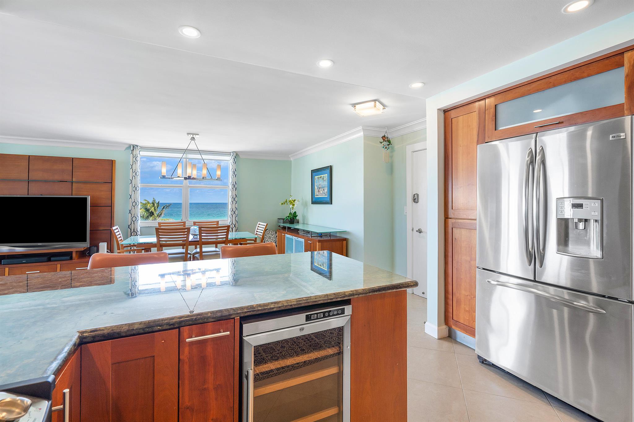 Discover the epitome of coastal luxury living in the heart of Hollywood, Florida where the sea breeze & sunsets beckon you home. This move-in ready 2-bedroom, 2-bathroom condo offers the perfect blend of comfort and elegance for those seeking a vacation home with all the amenities of a permanent residence. As you enter the condo, the expansive windows frame the breathtaking views of the ocean from the open concept living of your kitchen, dining area and family room. The wrap-around balcony allows for views of both the intracoastal w/the iconic Hard Rock Casino & the ocean.The custom Scandinavian inspired kitchen with cherry wood cabinets, SS appliances, wine fridge & gorgeous granite countertops with green/blue undertones & glass backsplash add a touch of warmth & sophistication.