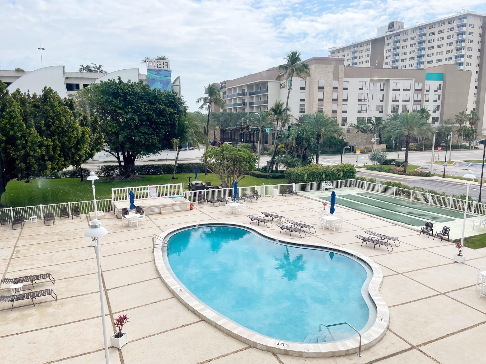 This low floor unit has been updated to the highest level, it’s move in ready. Stunning open plan kitchen with plenty of white contemporary cabinets, quartz counters,stainless steel appliances, the latest design in breakfast bar with bar seating. Ceramic floor tiles, modern Murphy bed in the living area for those extra house guest! Freshly painted with smooth matt finished walls, beautiful views of the heated pool and gardens with Impact windows throughout. Renovated bathroom with pretty new vanity and plenty of extra storage throughout this beach home which also boasts covered parking. Granada House is coming to the end of extensive renovations and is located right in the heart of all Pompano has to offer, walking distance to the beach, Pier, shops and now many fine restaurants and bars.