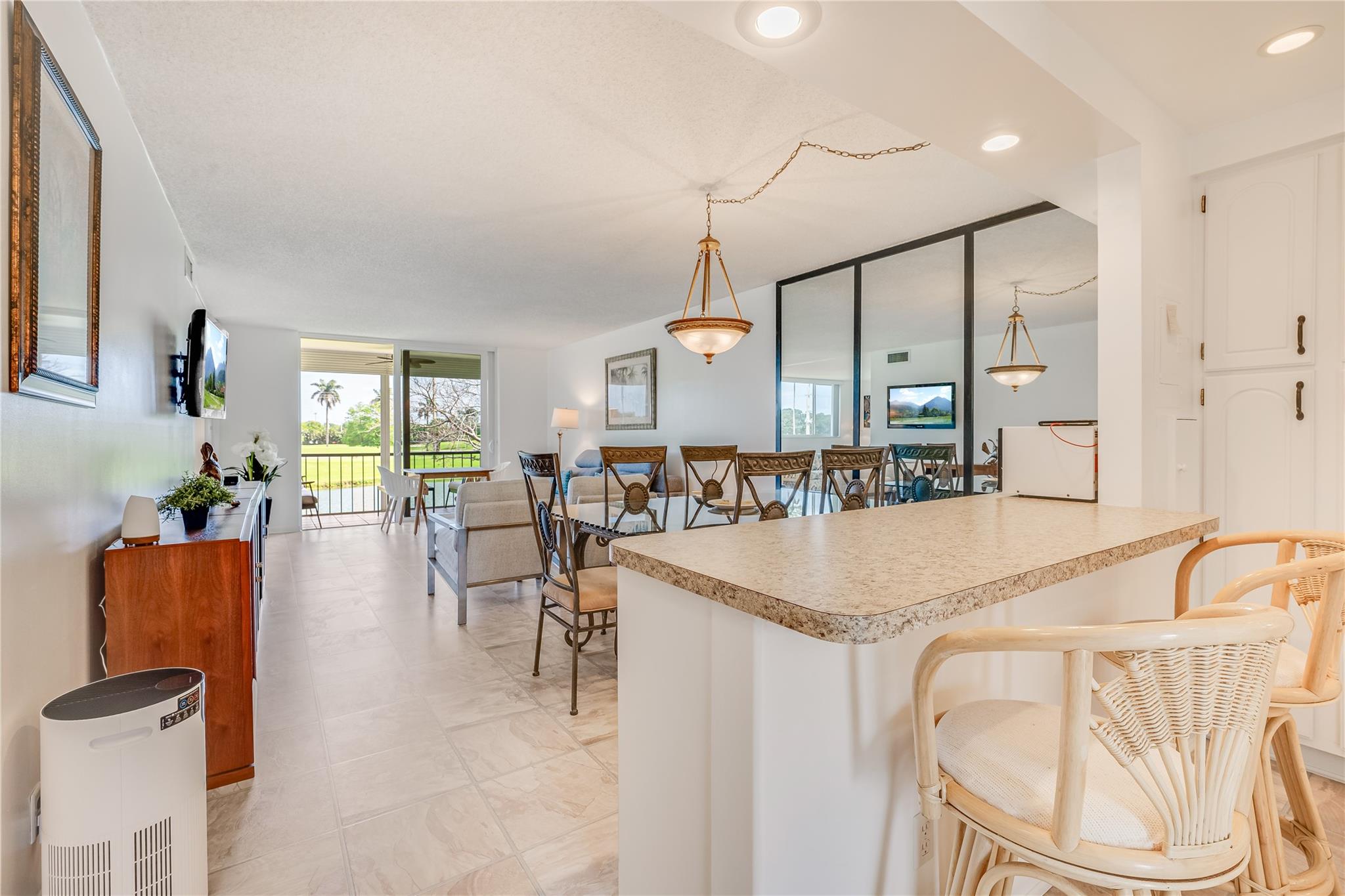 SPECTACULAR WIDE LAKE & WIDE 17th PGA Fairway. BRIGHT CORNER,2BR/2BA, 1,170 SF.. Wide open kitchen with high ceiling and mini LED lighting. Snack bar is perfect for looking out to the lake and majestic golf view. NO POPCORN Ceilings. Newer AC. New,100% waterproof vinyl plank flooring in Master Bedroom. Recreation Lease PAID IN FULL! FREE golf (except cart fees) on two 18 hole courses (PGA & Par3); Amenities include Restaurant, Billiard Room, Bbq/Picnic Area, Clubhouse, Courtesy Bus, Exercise Room, Heated Pool, Library, Putting Green, Sauna, Shuffleboard, Tennis, Pickle Ball, Vehicle Wash Area, Electric Car Charging Station. Close to shopping, dining & highways. 15 min. to beach. Association says 55+ age required; BEST VIEWS!