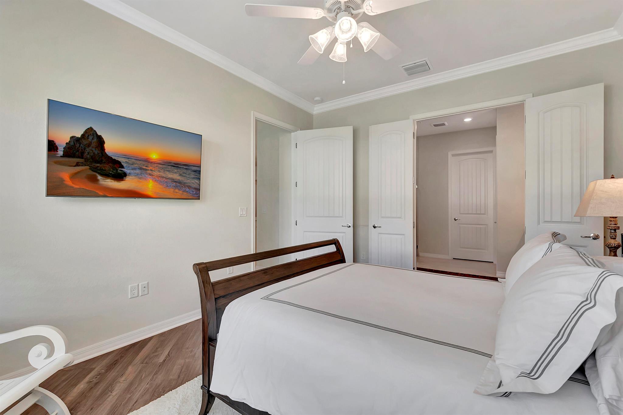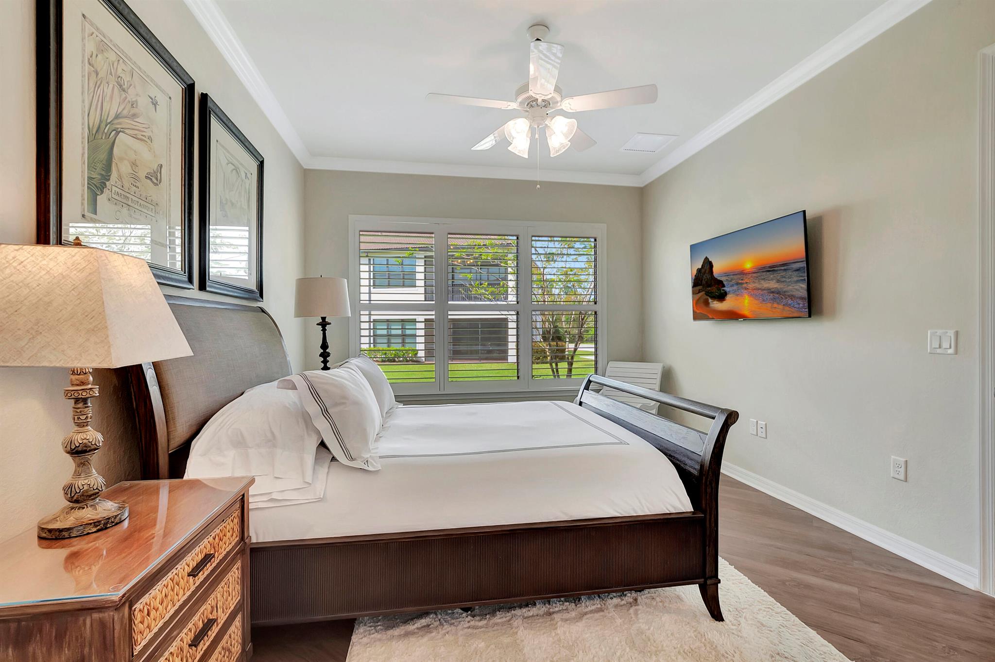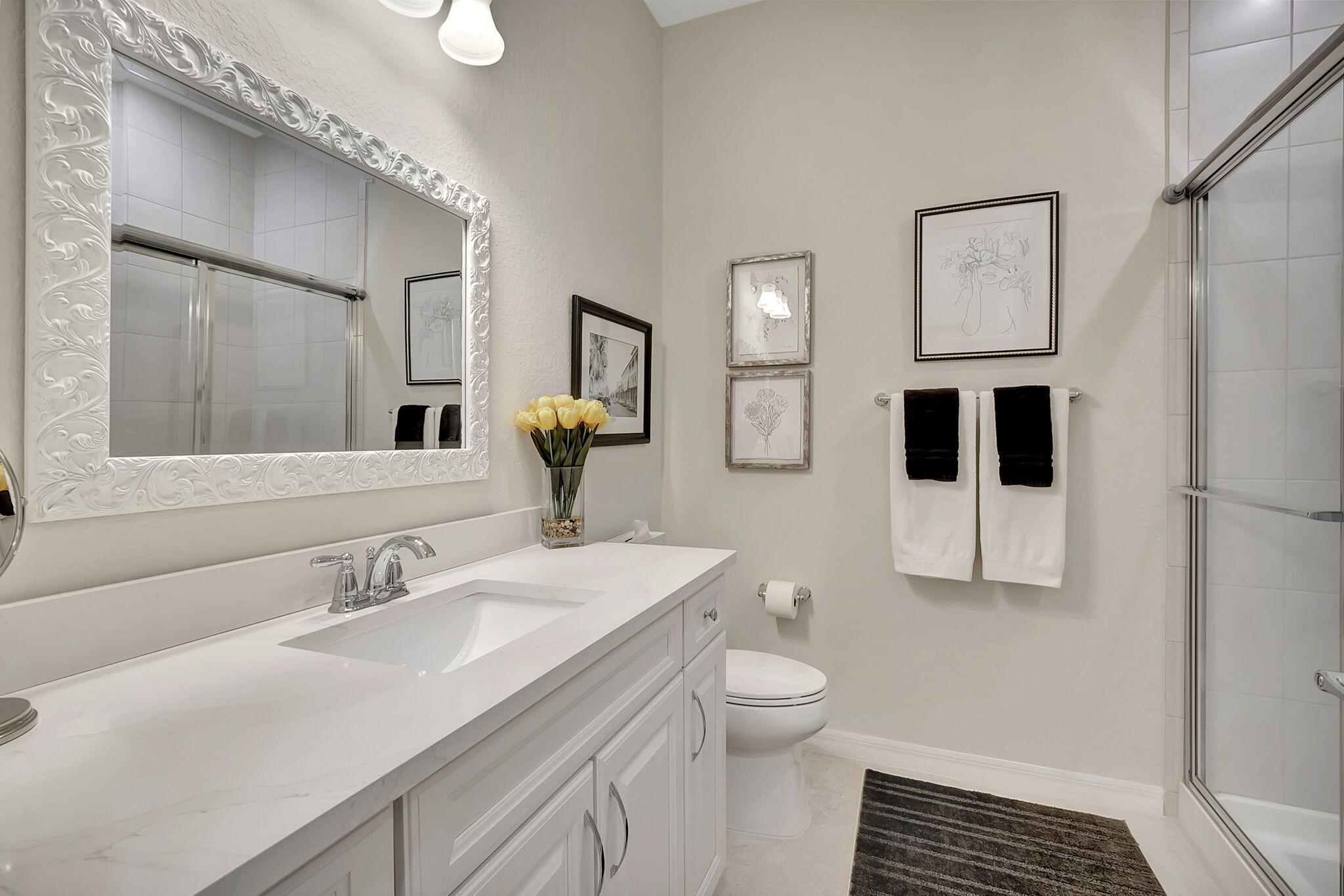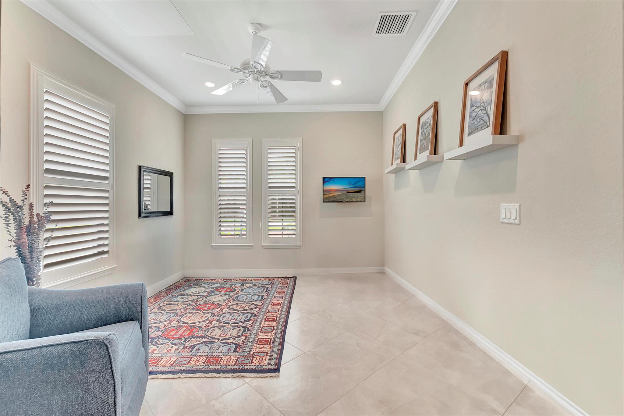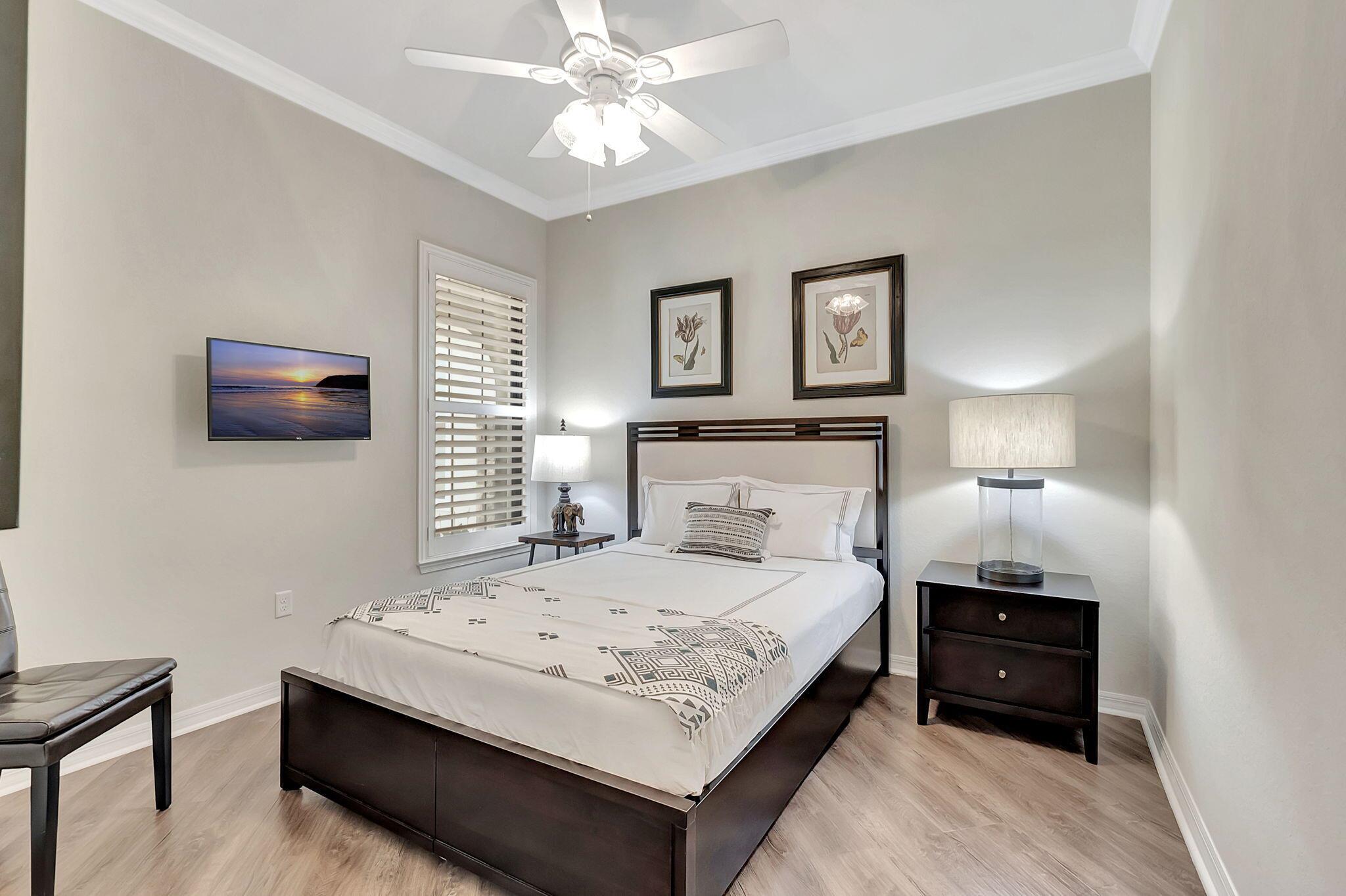 Everything is NEW! 1st Floor condo with 2 BR + Den + 2 car garage + screened in porch! This Pompano Model boasts an airy and inviting open floor plan, with a versatile flex room adorned with stylish barn doors for added privacy.The kitchen is a haven for culinary enthusiasts, featuring upgraded custom cabinets, high-end stainless steel appliances, a full backsplash, wall oven, oven hood, dual pantries, and an expansive island for both meal preparation and casual dining.Designer touches abound throughout the home, including crown molding, diagonal porcelain tile, luxury wood plank flooring in all bedrooms, designer ceiling fans & light fixtures, and plantation shutters.