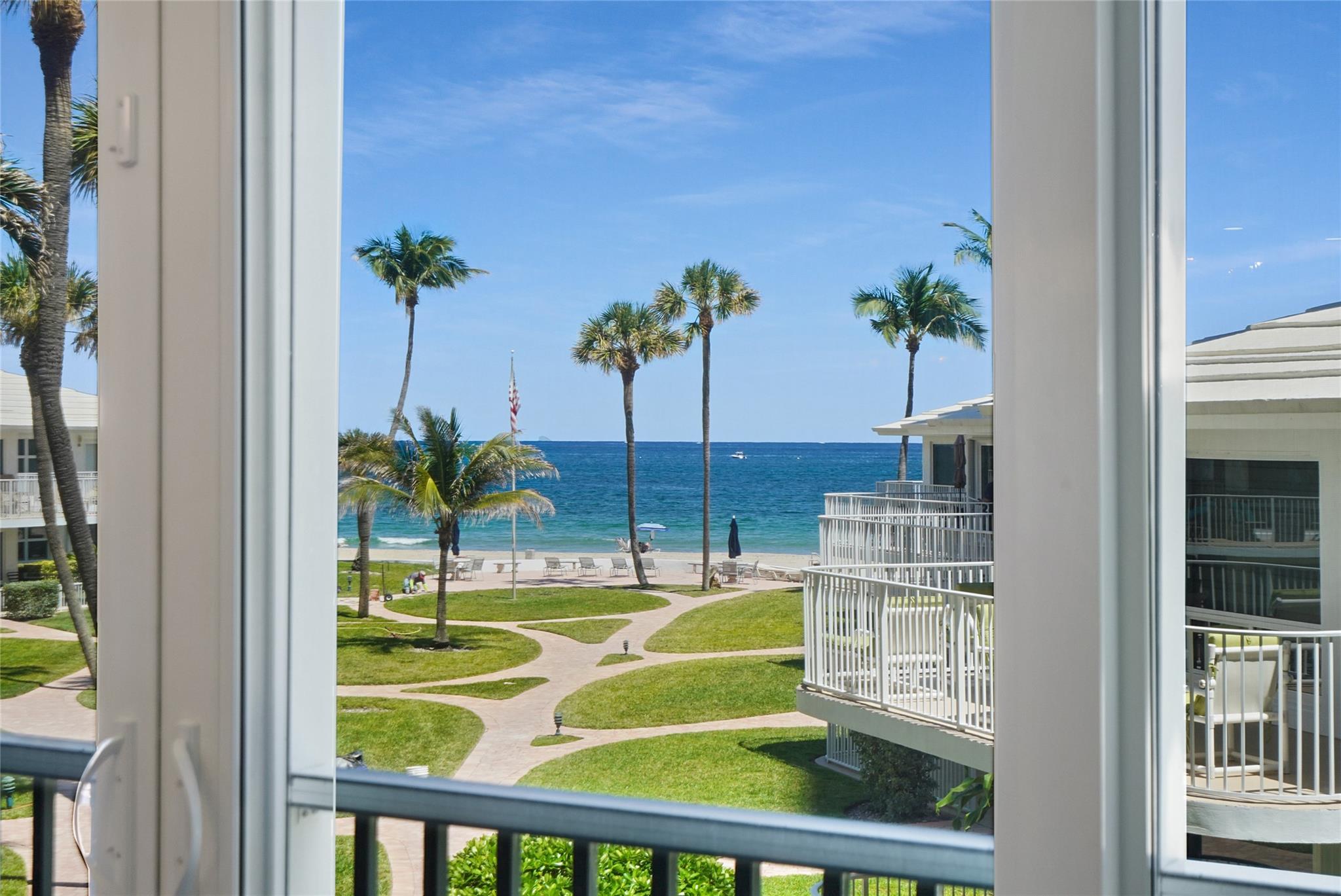 Are you tired of high rise living? Then this is the place for you. This two bed/two bath with beautiful east beach & ocean views is only steps from the sand & is situated between always lively Lauderdale By The Sea & the newly revitalized & popular Pompano beach area. This architecturally renovated apartment (done in 2021) was redesigned so that the entrance to the bath is accessible from both the hallway & the bedroom. This is the only apartment in the complex with a washer & dryer. (There is a community laundry room) Impact windows. The spacious enclosed patio can easily be used as a 3rd bedroom. Covered parking. Renting is allowed 2 times a year, minimum of 30 days; maximum of 6 months. No land lease; the Co-Op owns the land. No age restrictions. All assessments paid in full. Views!