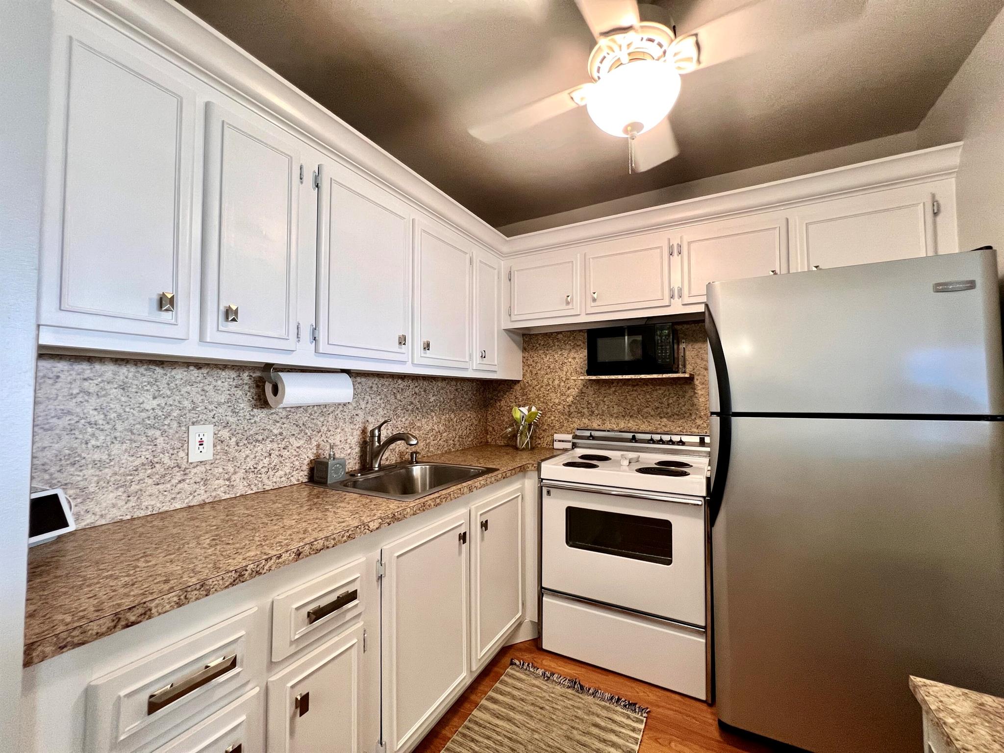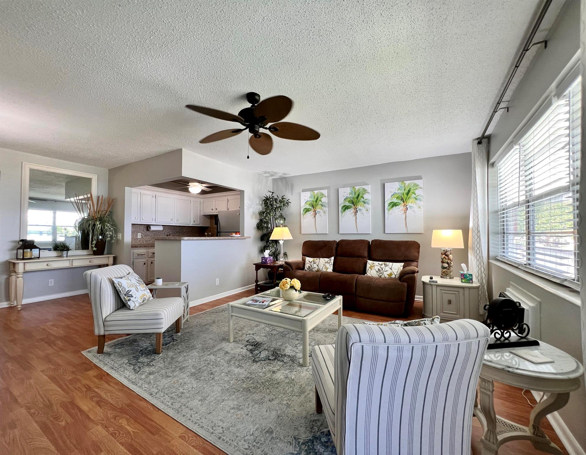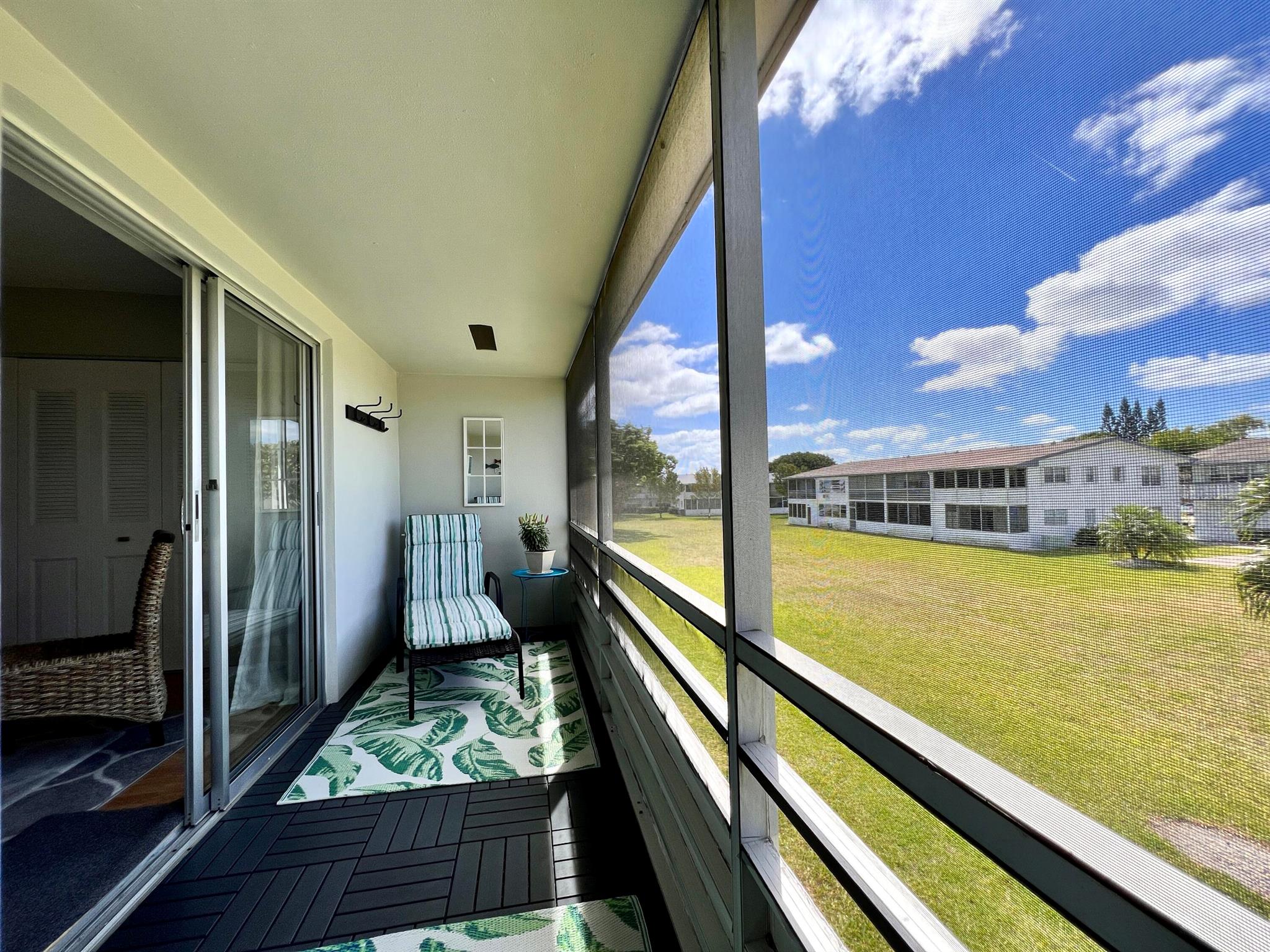 Light, Bright, and Lovely In 55+ Century Village! Beautifully Maintained One Bedroom, Two Full Bath Condo With Open Living Area. Pretty Open Kitchen Is Open Features White Painted Cabinets and Granite Look Counters. Updated Baths. Wood Look Laminate Flooring Flows Throughout. Spacious Bedroom Suite With Wall of Closets, Access to the Lanai, and Full Ensuite Bath. Screened Lanai Offers A Lovely Spot to Take In the Fresh Air. Camden H Is A Well Maintained Building With New Roof (2021), Second Floor Laundry, and Fantastic Location Close to Two Pools - Camden & Kent. Century Village is a Resort Style 55+ Community With So Much to Offer...