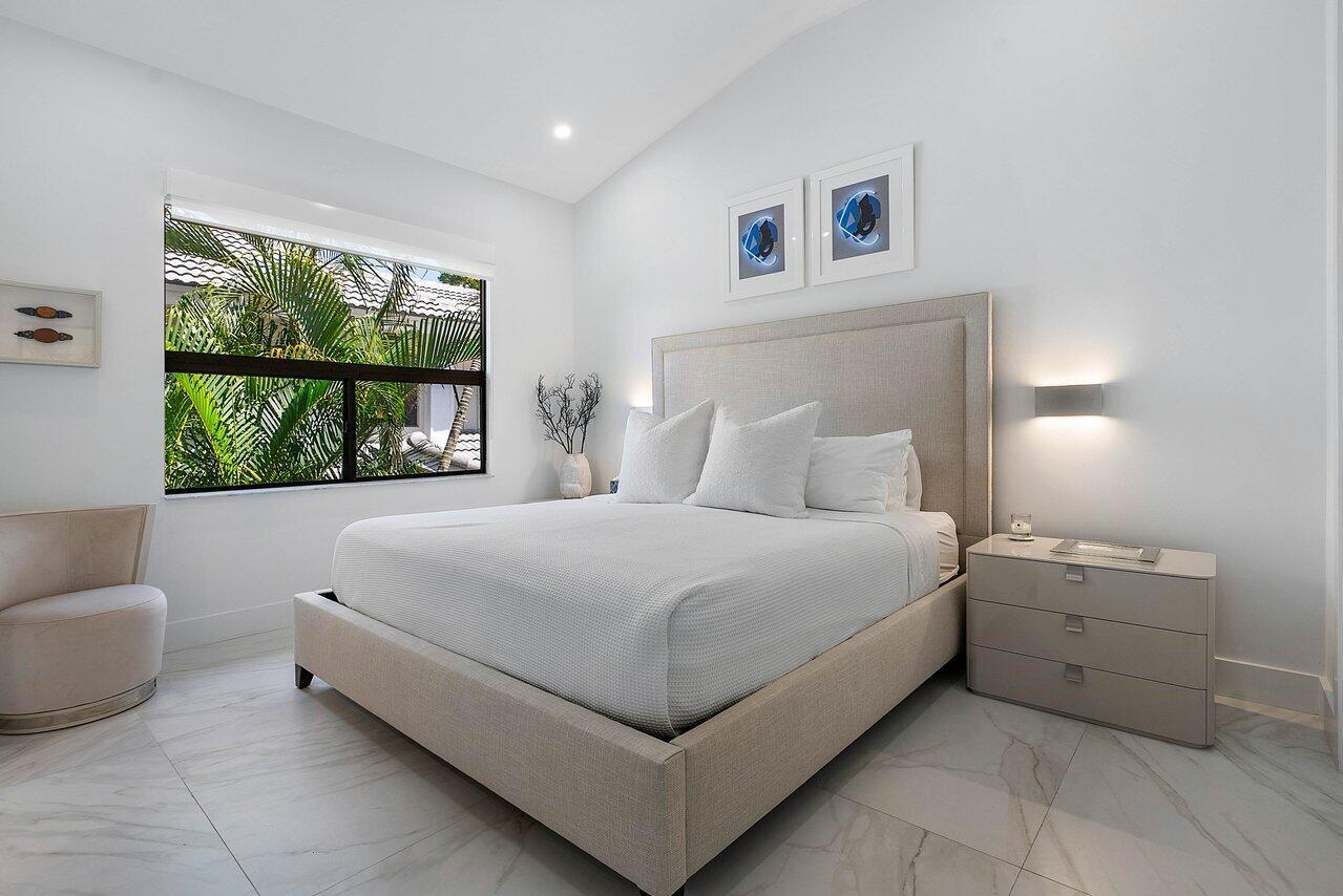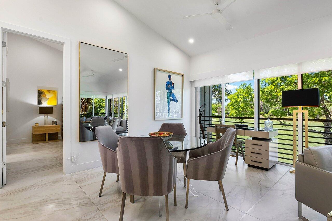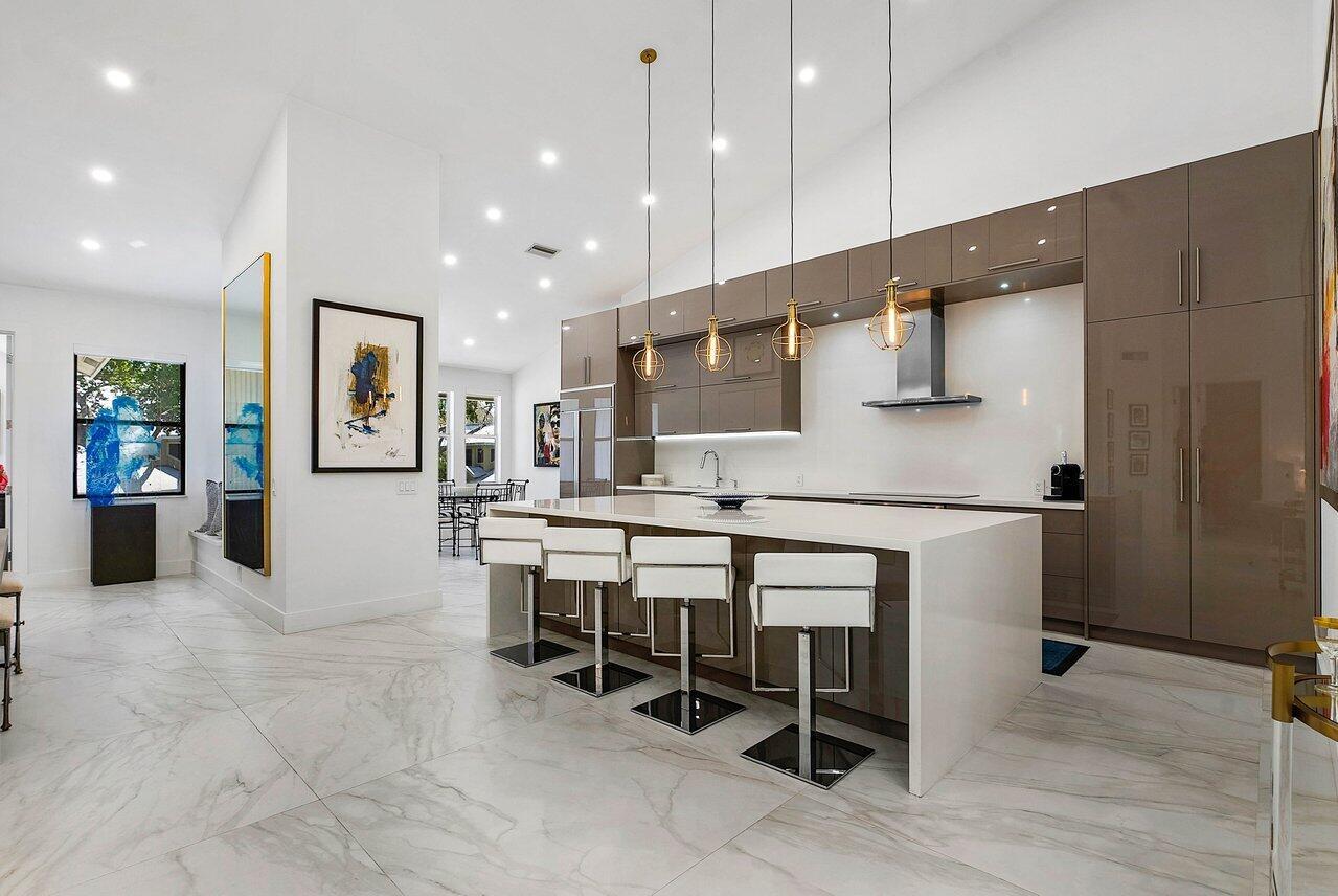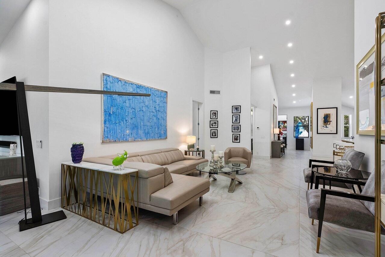 Experience unparalleled luxury in this meticulously renovated second-floor condo, complete with a private elevator and glass railing, showcasing a blend of sophistication and comfort. Boasting 4 spacious bedrooms and 3.5 elegantly appointed baths, this expansive residence spans 2,438 square feet of refined living space. Inside the home, a stunning and sleek kitchen awaits, boasting a large island with waterfall edge and top of the line appliances. This exceptional condo is further distinguished by 48-inch porcelain tile floors throughout. Some additional features include a one-car garage with ample room for a golf cart, state-of-the-art electric shades on the enclosed wrap-around patio, ensuring privacy and comfort. An array of new LED high hats complement the skylights, creating