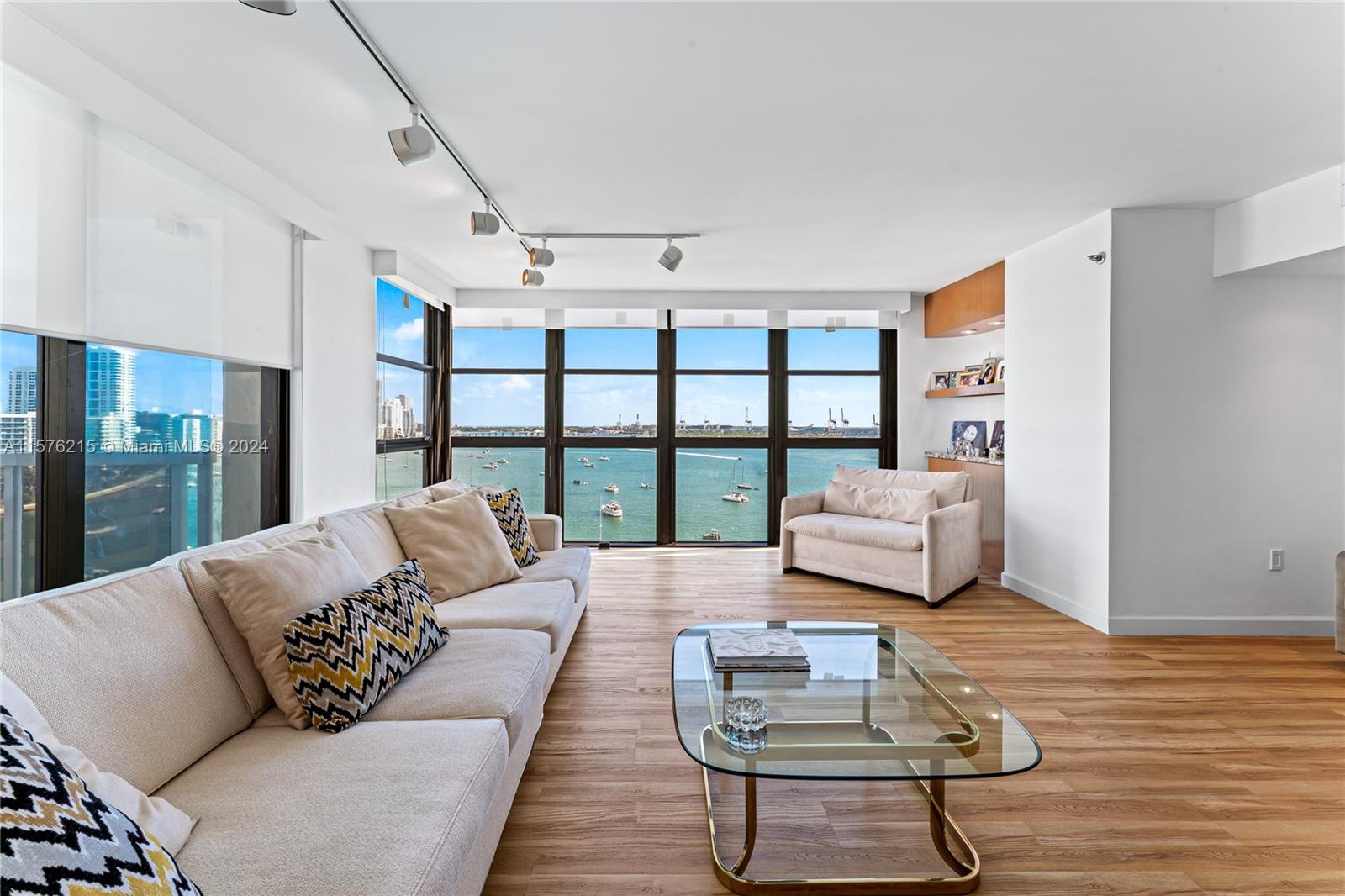 Rare opportunity for this luxury stunning SW exposure high floor corner two bedroom with magnificent panoramic Biscayne Bay views. Beautifully updated with modern finishes, vibrant wood floors, modern kitchen and spa baths. Each bedroom has an en-suite bath with a half bath for guests in the spacious foyer and a half bathroom for guests. 9 Island has been upgraded, remodeled and now takes its place among the finest offerings. High level amenities, including a resort style pool, modern gym, conference room & kids room.
