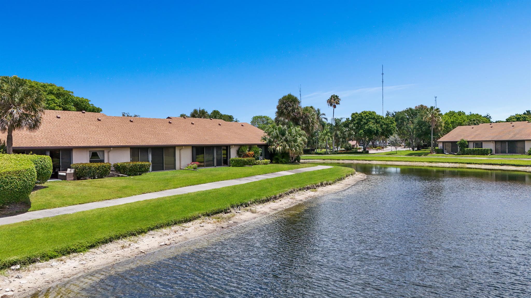 Awesome Corner unit, this villa is located in Boca Glades an all age community, gated, 2 bedrooms 2 baths, with breathtaking lake views. Home features vaulted ceilings, tiled flooring through out, open-concept kitchen featuring modern white cabinets, granite countertops, and stainless steel appliances. Relax in the enclosed glass patio overlooking the serene waters or indulge in the hot tub. The spacious floor plan includes a master suite with a sitting room & a generous walk-in closet, while the master bathroom offers a frameless glass shower and double sinks, indoor laundry room, front outdoor patio for al fresco dining. Newer roofs. Amenities includes pool, jacuzzi, gym, tennis & pickleball courts, community room, sauna, library, game room. Make this your new home!