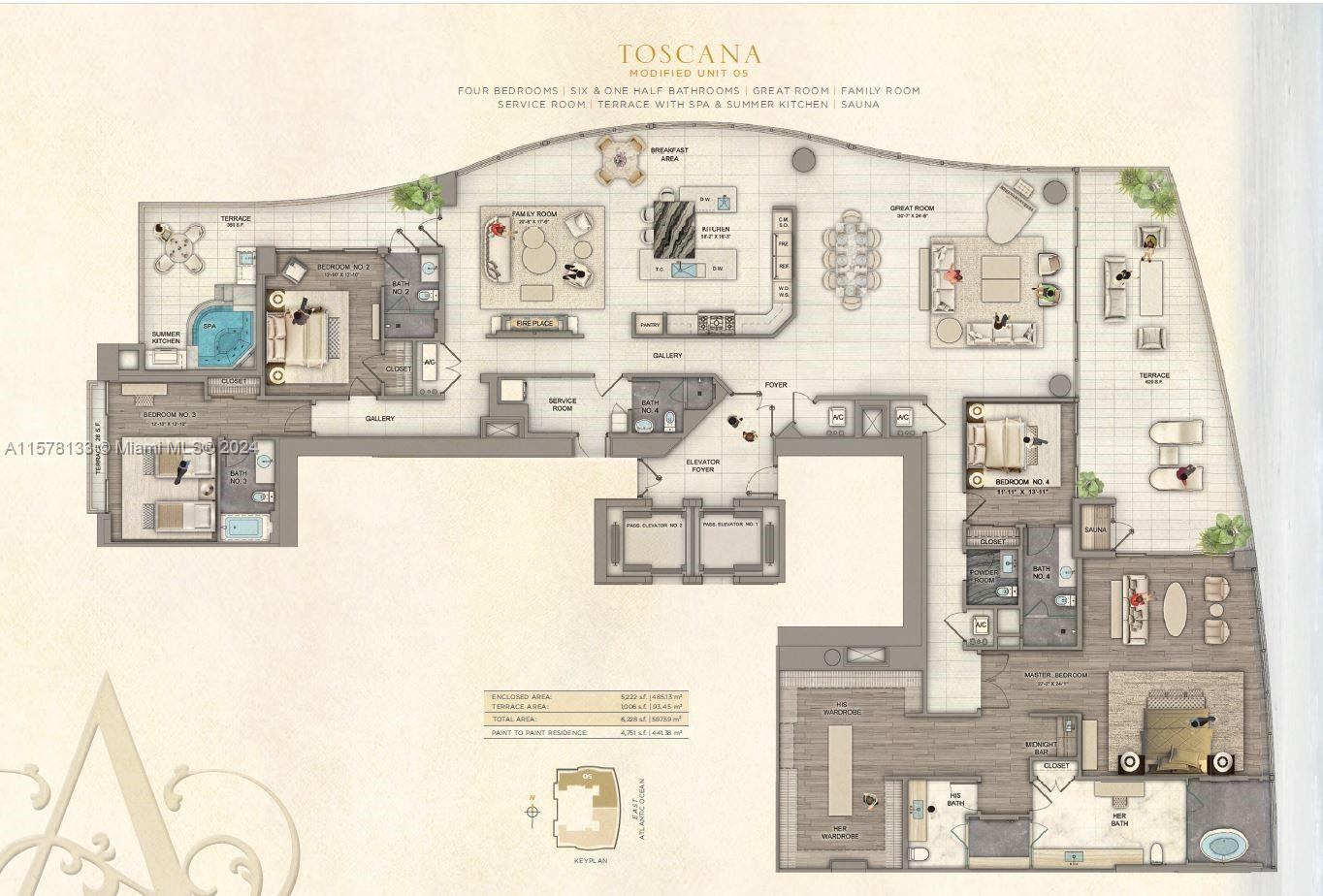 The most luxurious building in South Florida, This 4 bedroom /6.5 baths with sauna, jacuzzi and summer kitchen; located at the 36th floor has amazing oceanfront and Intracoastal views. the unique features and spectacular amenities make our building the best place to live, Please see our beautiful pictures!!! Floor plan Toscana modified: 5,222 interior SF + 1,006 SF of outdoor living space.