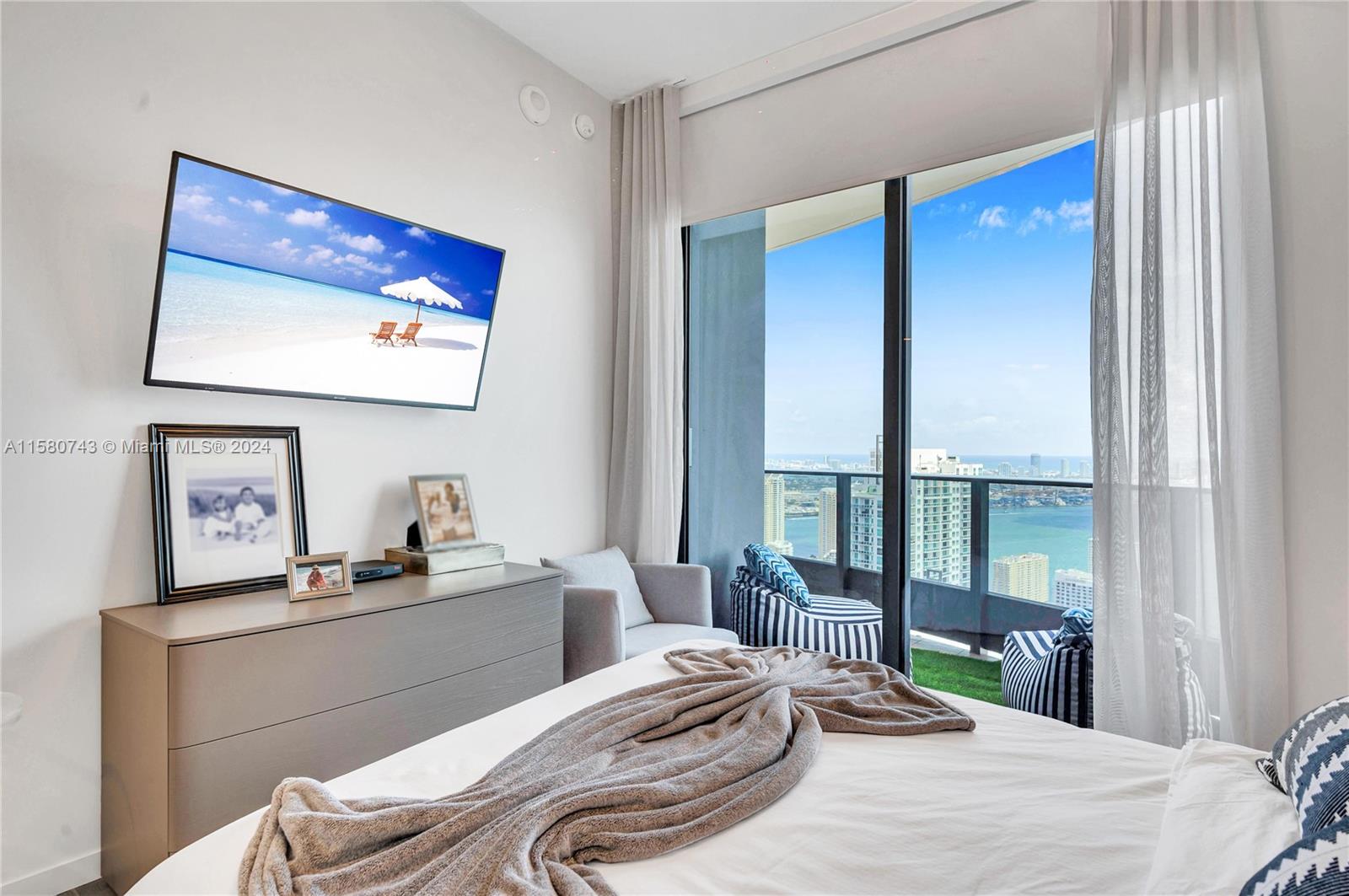 Check out this must-see opportunity! Experience breathtaking views of Miami from the 60th floor in this stunning fully furnished unit. With 3 bedrooms and 2 full baths plus a guest bath, this space offers both luxury and comfort. The kitchen boasts top-of-the-line Miele appliances and a spacious cooking island. enhanced insulation for soundproofing between units, ensuring tranquility amidst the vibrant city. This exclusive residence offers an array of amenities, including a rooftop pool and spa on the 64th floor, complete with steam rooms, saunas, and locker facilities. Stay active in the 6,300-square-foot gym, ea lap pool and children's pool on the 18th floor, a movie theater, billiards room, and electric car charging stations for eco-conscious residents.