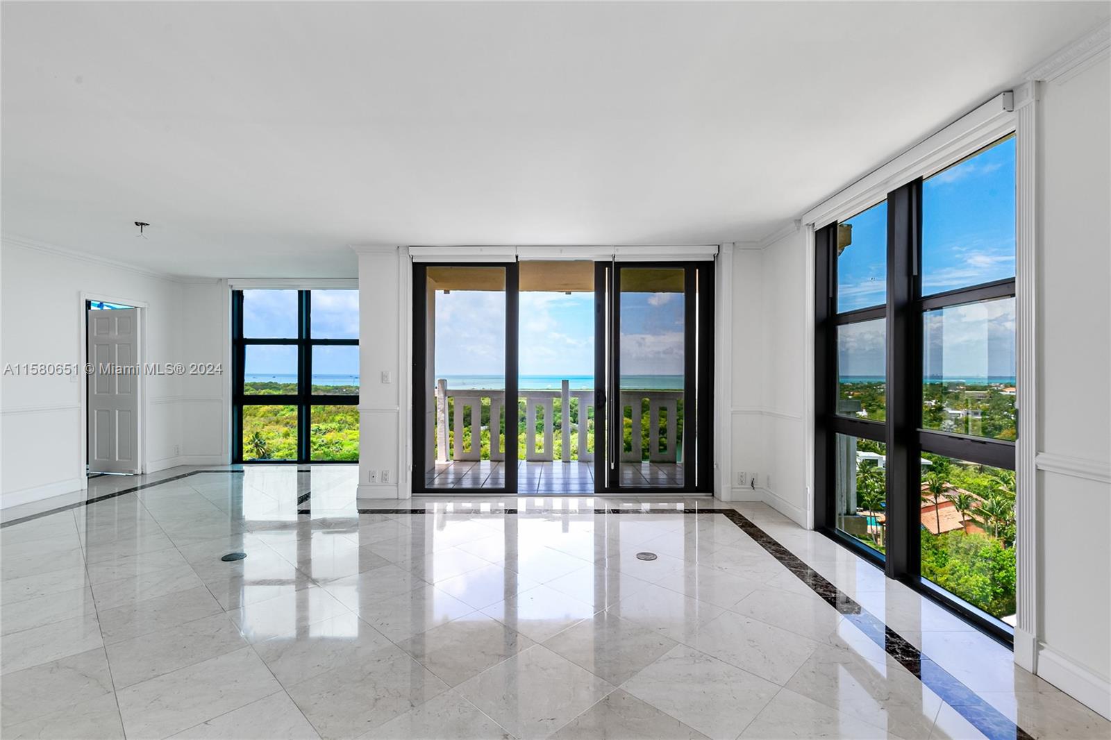 Breathtaking panoramic views from this sought-after 2 Bedroom 2 Bath + Den corner unit. Enjoy unobstructed views of Biscayne Bay, State Park, and the ocean, along with enchanting sunsets, without exposure to neighbors. The unit boasts a generous layout, featuring an eat-in kitchen, spacious master bedroom, and Den. The unit is surrounded by floor-to-ceiling impact windows. Located in the enclave of Key Biscayne, Towers of Key Biscayne offers resort-style amenities including 2 pools, beach access, 2 tennis courts, beachfront BBQ, gourmet restaurant, fitness center, sauna, steam room, beauty salon, billards, teens' and children's playroom. Convenient EV charging and 24-hour security. Enjoy the convenience of 2 assigned parking spaces. Easy to show