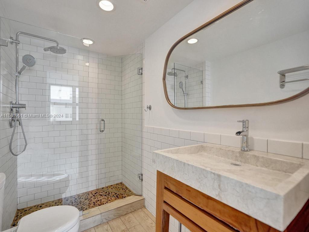 This totally remodeled condo is just steps from the famous Hollywood Beach and Broadwalk. It has all impact glass, remodeled baths, California-style kitchen with stainless steel appliances, new flooring, pocket doors, frosted French doors, new electric panel, new water heater, new stove, and a new air conditioning unit. The building has passed recertification and has no assessments. The beautiful pool area has a BBQ and shuffleboard. There is extra storage and ample parking. Maintenance includes cable TV, insurance on the building, and a superintendent. It is close to shopping, dining, malls, air and sea ports. A new Publix grocery store is going up just blocks away! Two small pets are allowed. What are you waiting for?