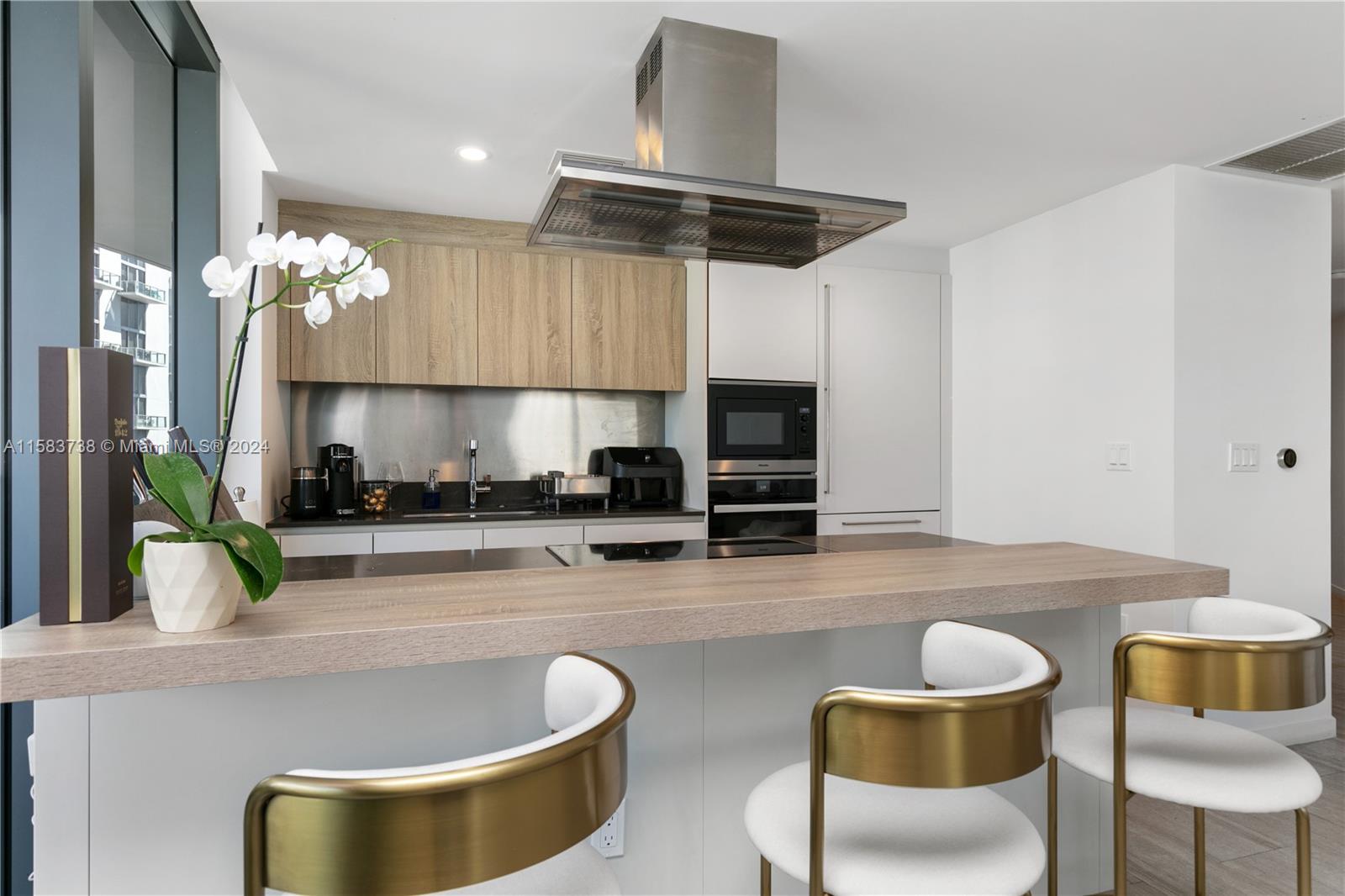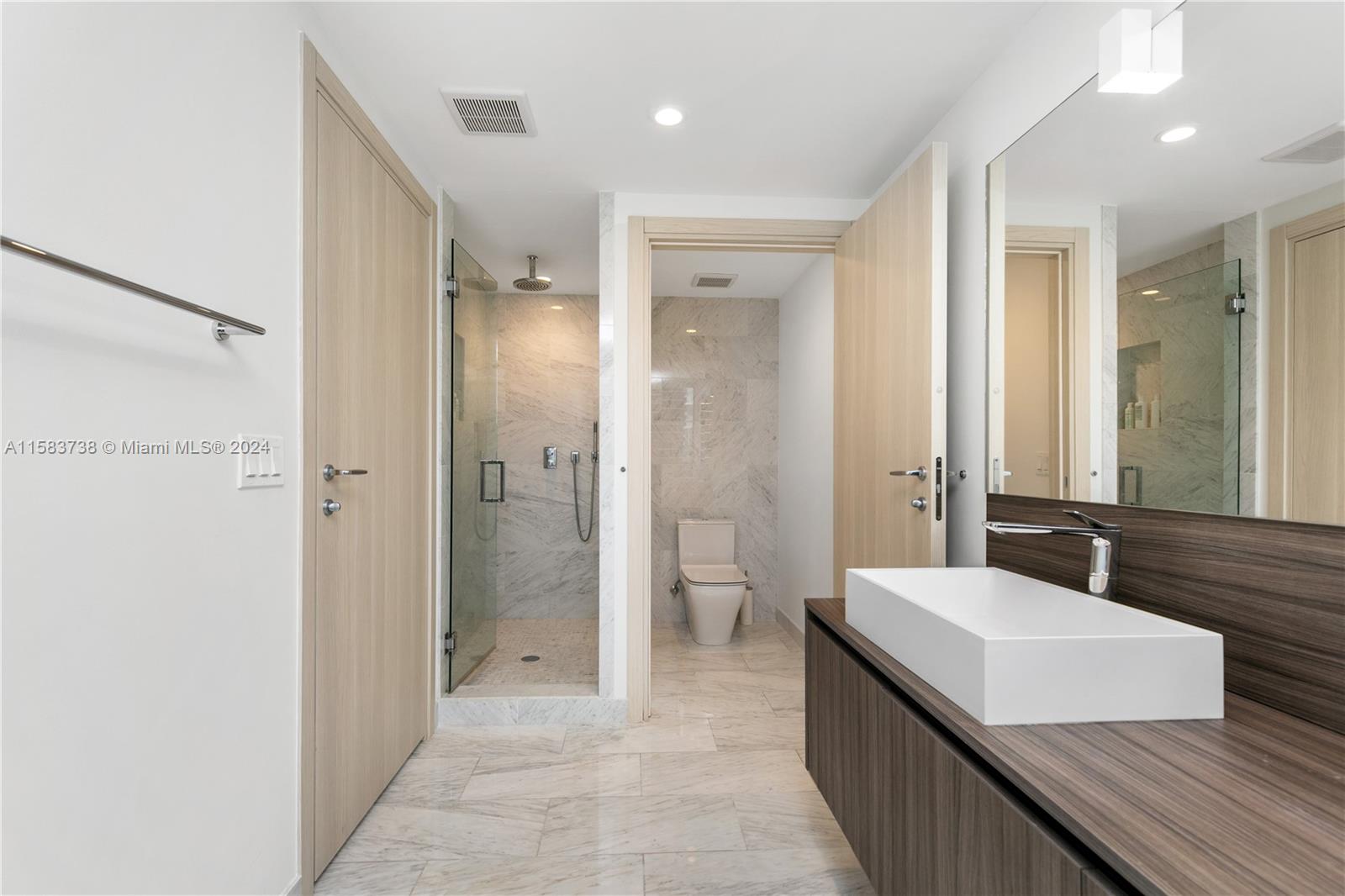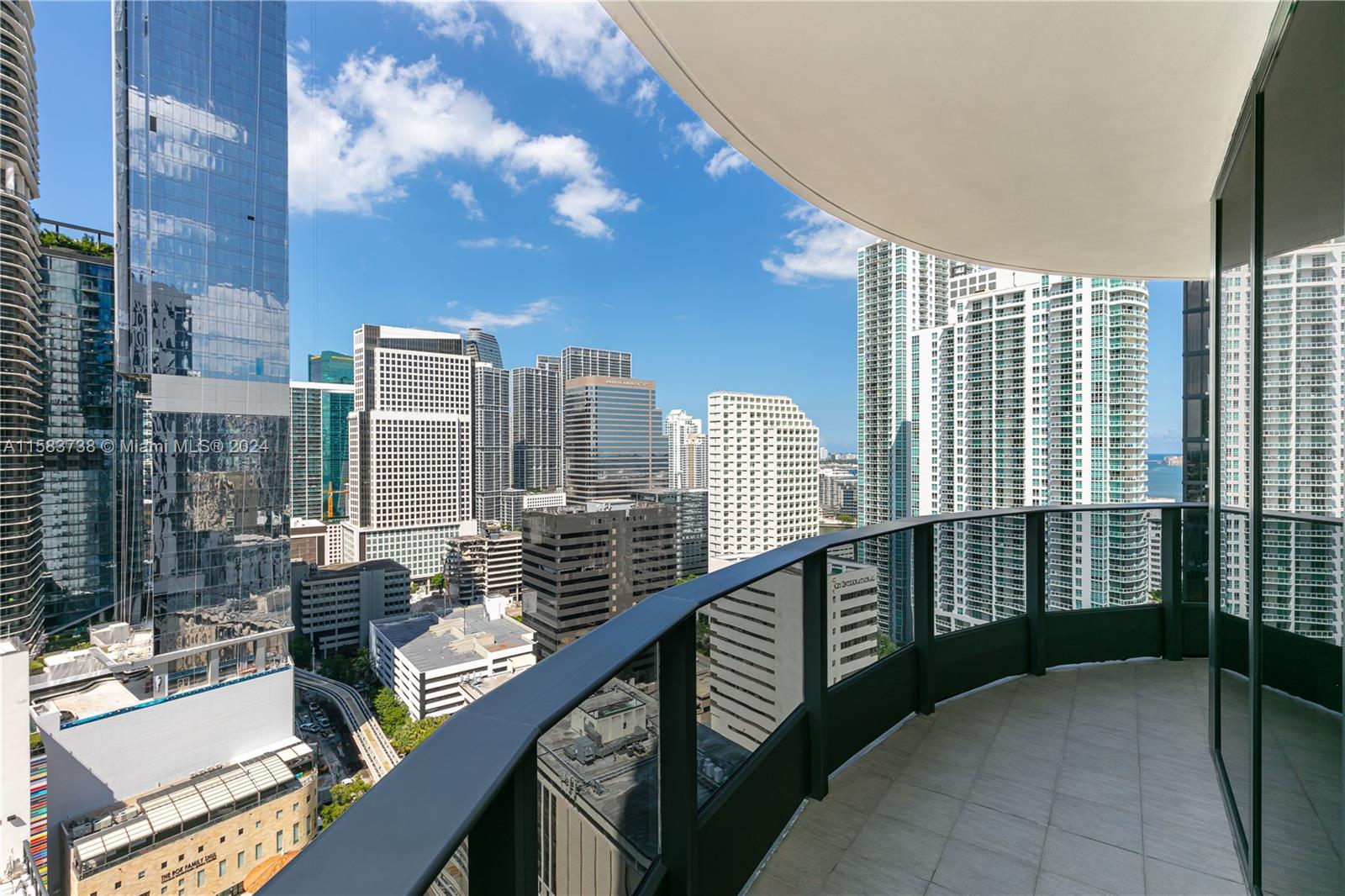 Experience unparalleled vistas in this corner unit at Brickell Flatiron. This 2-bed, 2.5-bath unit with a den offers luxury via Miele appliances, Italian doors, and glass showers. The 9-foot ceilings add spaciousness, complemented by a wraparound terrace. Enjoy the 64th-floor Sky Pool, fitness center, and spa. Located in vibrant Brickell, you're steps from fine dining and shopping, with easy access to Miami Airport.