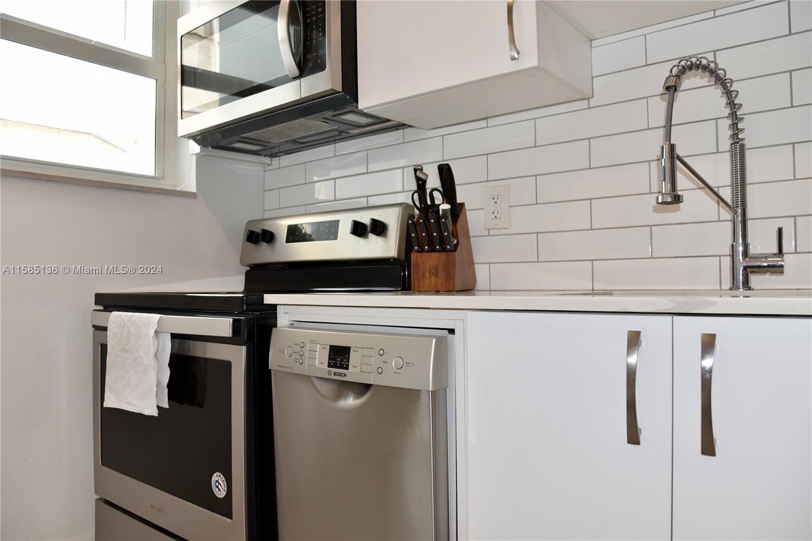 This fully renovated corner one-bedroom apartment boasts top-notch finishes and is just steps away from the ocean. Highlights include soundproofed walls, new high-quality impact windows, and beautifully refinished Florida pine hardwood floors. The apartment is equipped with a dual-zone split AC system. Custom blinds adorn the windows, providing both style and functionality. The apartment features a windowed bath and a spacious kitchen with stainless steel appliances, including a Bosch dishwasher. Marble countertops and white cabinets create a sleek space. The apartment feels spacious thanks to its corner location and thoughtfully designed floor plan. Plus, you'll find ample storage with two large walk-in closets. Nestled within a charming and meticulously maintained Art Deco property.