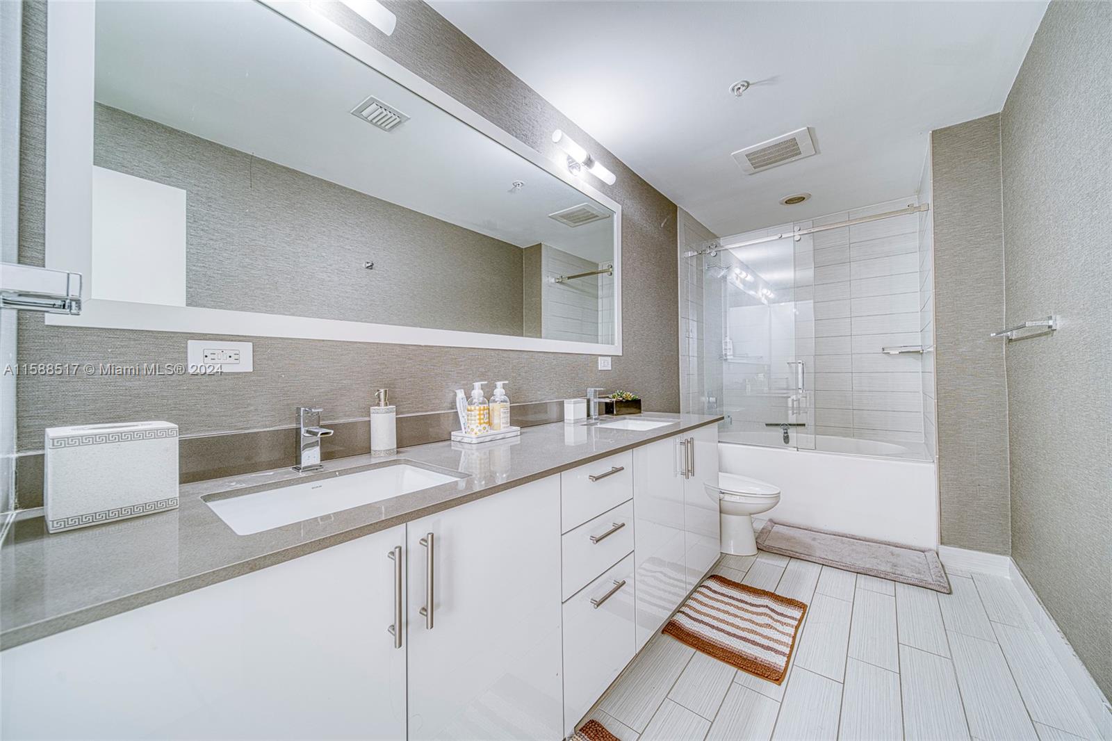 Impeccably upgraded 2-bedroom, 2-bath condo plus den. This residence is designed to impress with elegant paneled walls, custom walk-in closets, and expansive master bedrooms. A full-sized laundry room adds unparalleled convenience. Bathed in natural light, the living spaces offer stunning views of the city and pool area. Amenities include a resort-style pool are with BBQs and modern fitness center. Located in the vibrant heart of Brickell, just steps from premier dining and shopping. Artefacto furniture is also available for purchase, making this a truly turn-key home. Easy to show.