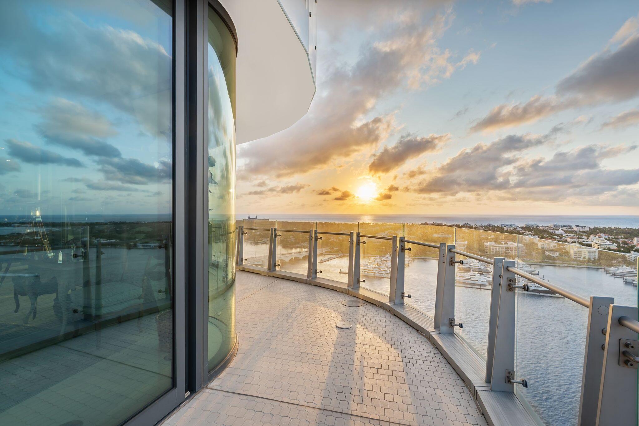 There is luxury and then there is unit 2203 at the Bristol. The attention to detail is unmatched- from the interior-designer owner's custom floor plan to elegant wallcoverings, top quality light fixtures and honed Italian marble floors. Even the closets are leather-lined beauties from Ornare. From your 22fl perch, Palm Beach island lies at your feet, with long views of the rolling Atlantic, the Intracoastal stretching away to the south and Kodachrome-ready sunsets to the west. With 7,100 of indoor and outdoor sqft wrapping around the entire south end of the building, the layout features a primary suite with his/her baths and closets and a sitting room/office. A spectacular fitness center, lap pool, his and hers spas and a concierge are just some of the Bristol's over-the-top amenities