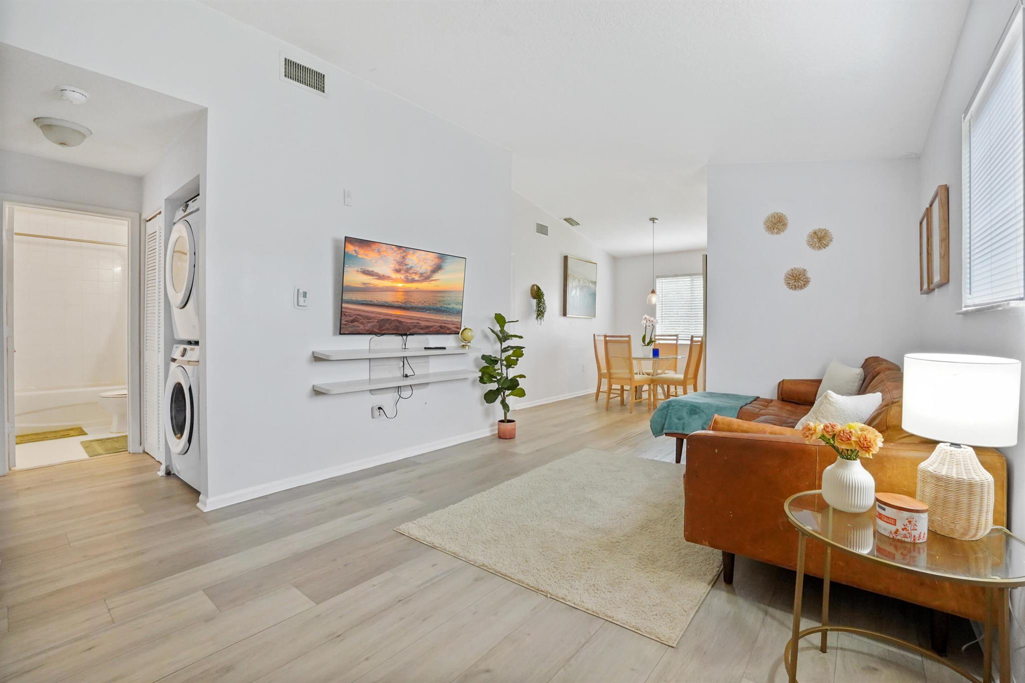 Discover this gem of a condo, boasting a brand-new roof and nestled in the heart of West Palm Beach. This spacious and meticulously maintained 3-bedroom, 2-bathroom corner unit on the second floor offers its own private entrance and balcony, ensuring both convenience and privacy.With soaring high ceilings and recently installed impact windows, the home is filled with natural light and offers top-notch safety. Modern comforts include an AC unit and a tankless water heater.