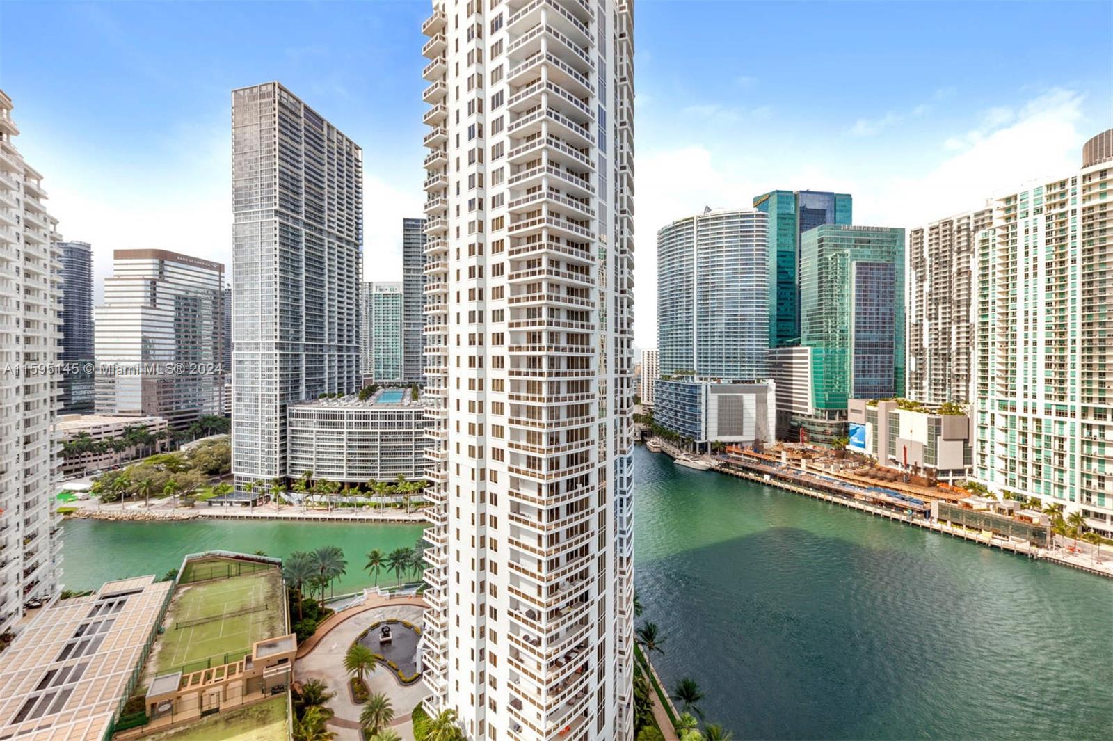 Asia is Brickell Key's premier building with only 123 units. Spectacular water and city views from this private island setting in the center of Miami. Unit has soaring 12 ft ceiling, private elevator, top-of-the-line kitchen and baths, with private storage on same floor as unit. Great floor plan with marble floors, open concept kitchen and 2 parking spaces (TANDEM). Amenities includeTennis and racquetball courts, fitness center, resistance pool, sauna, jacuzzi, valet for guest and pool. Easy to show.