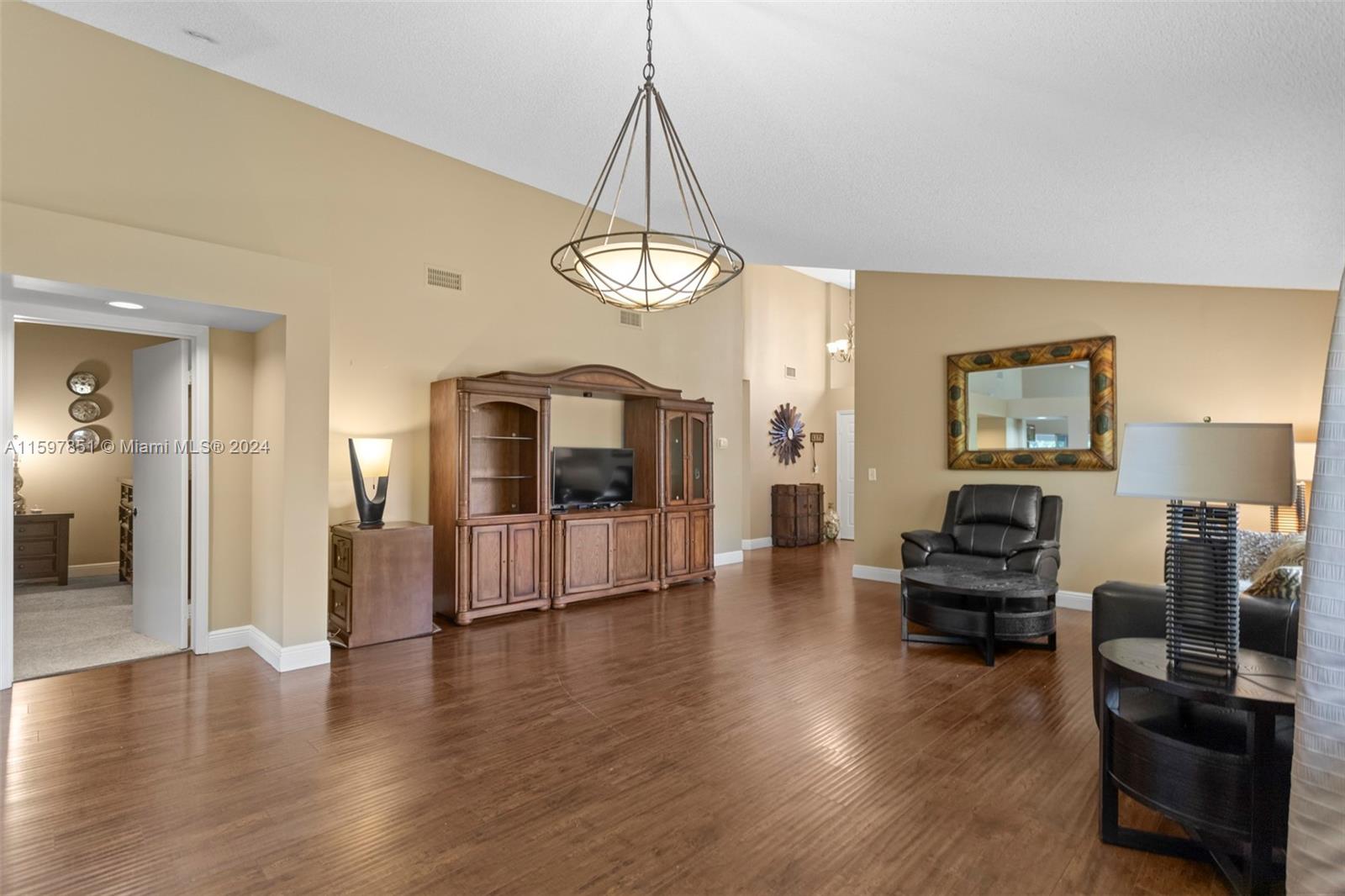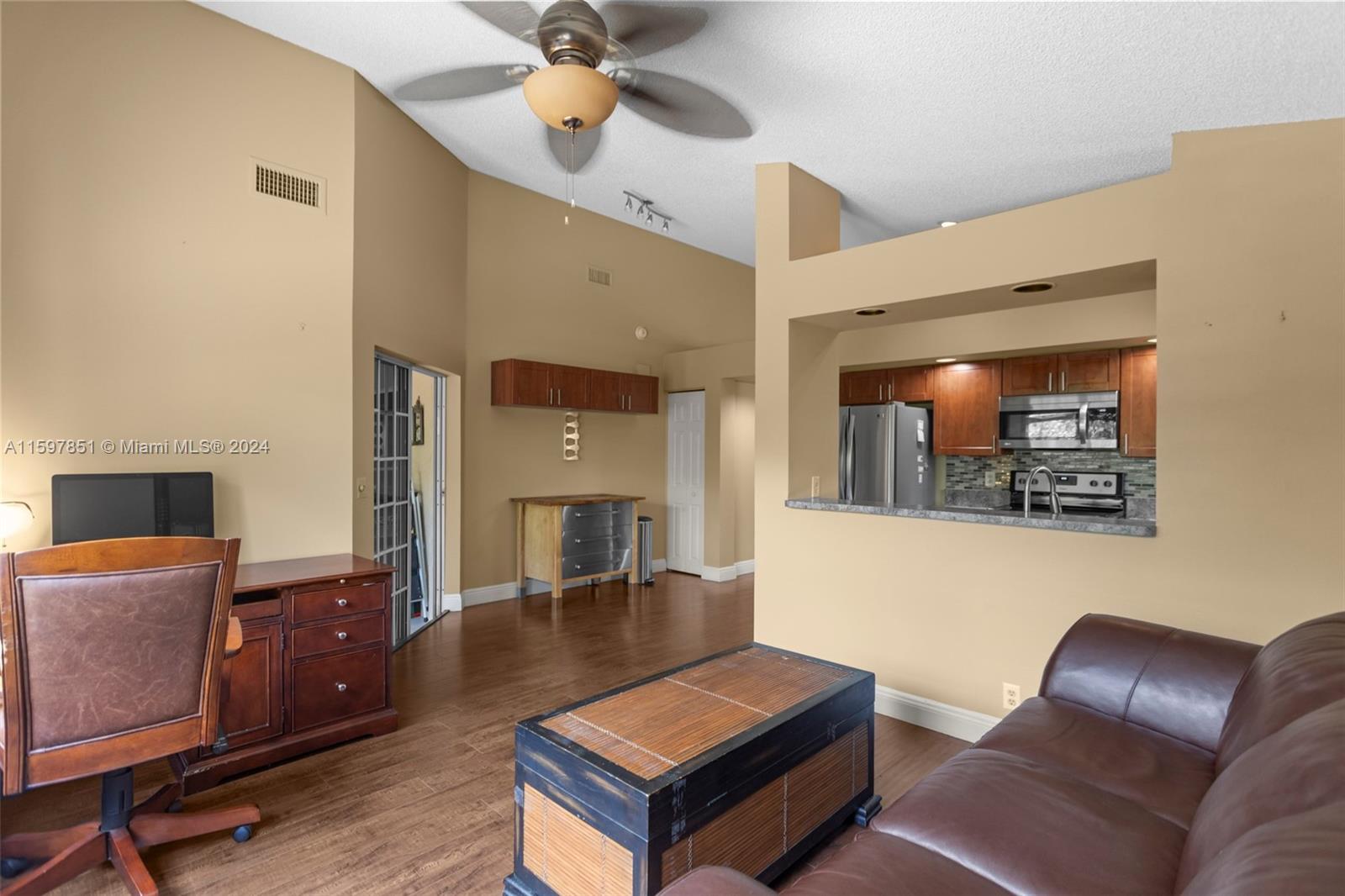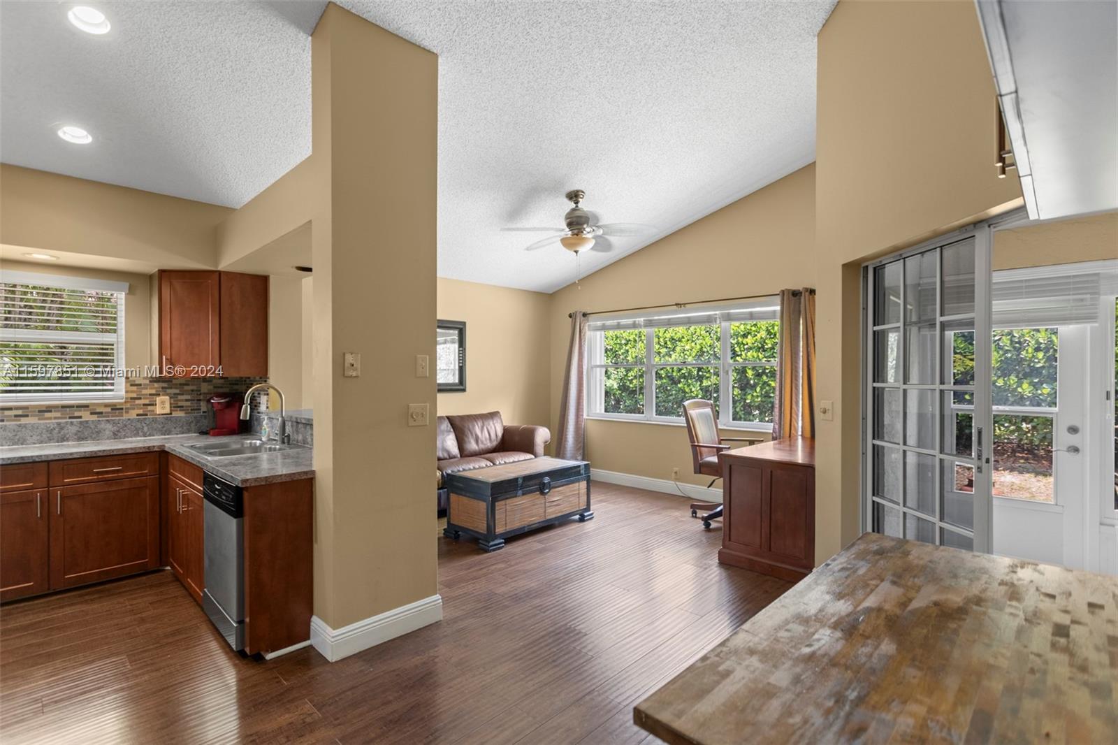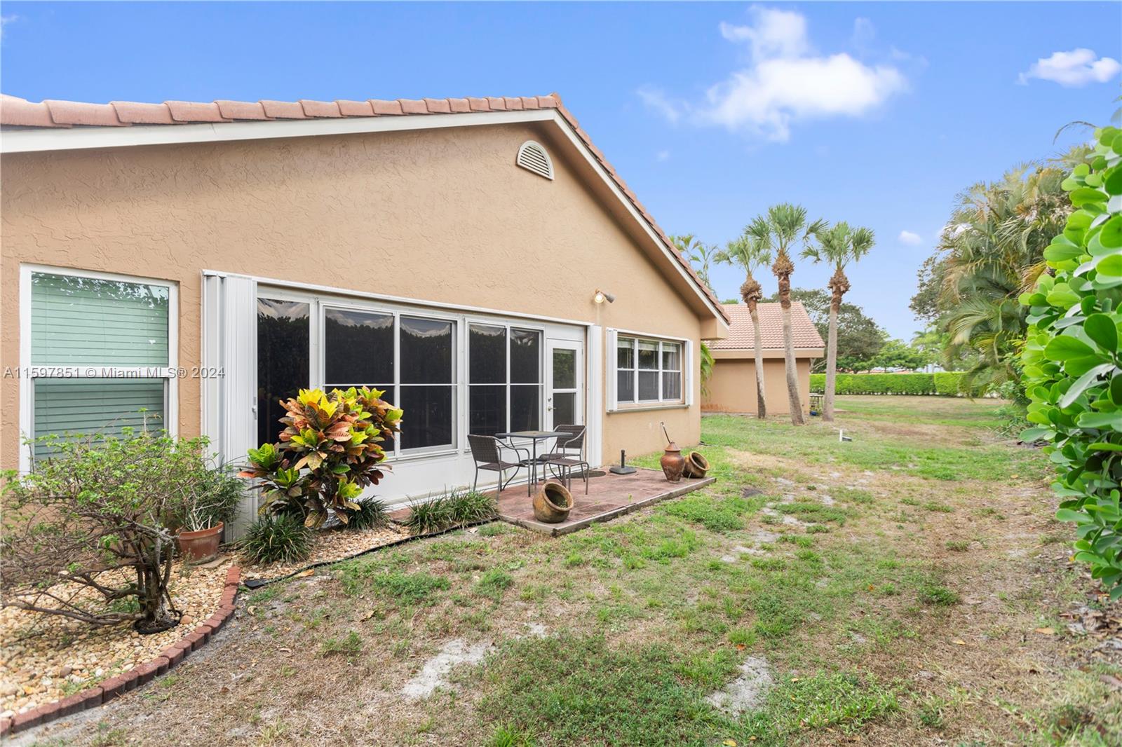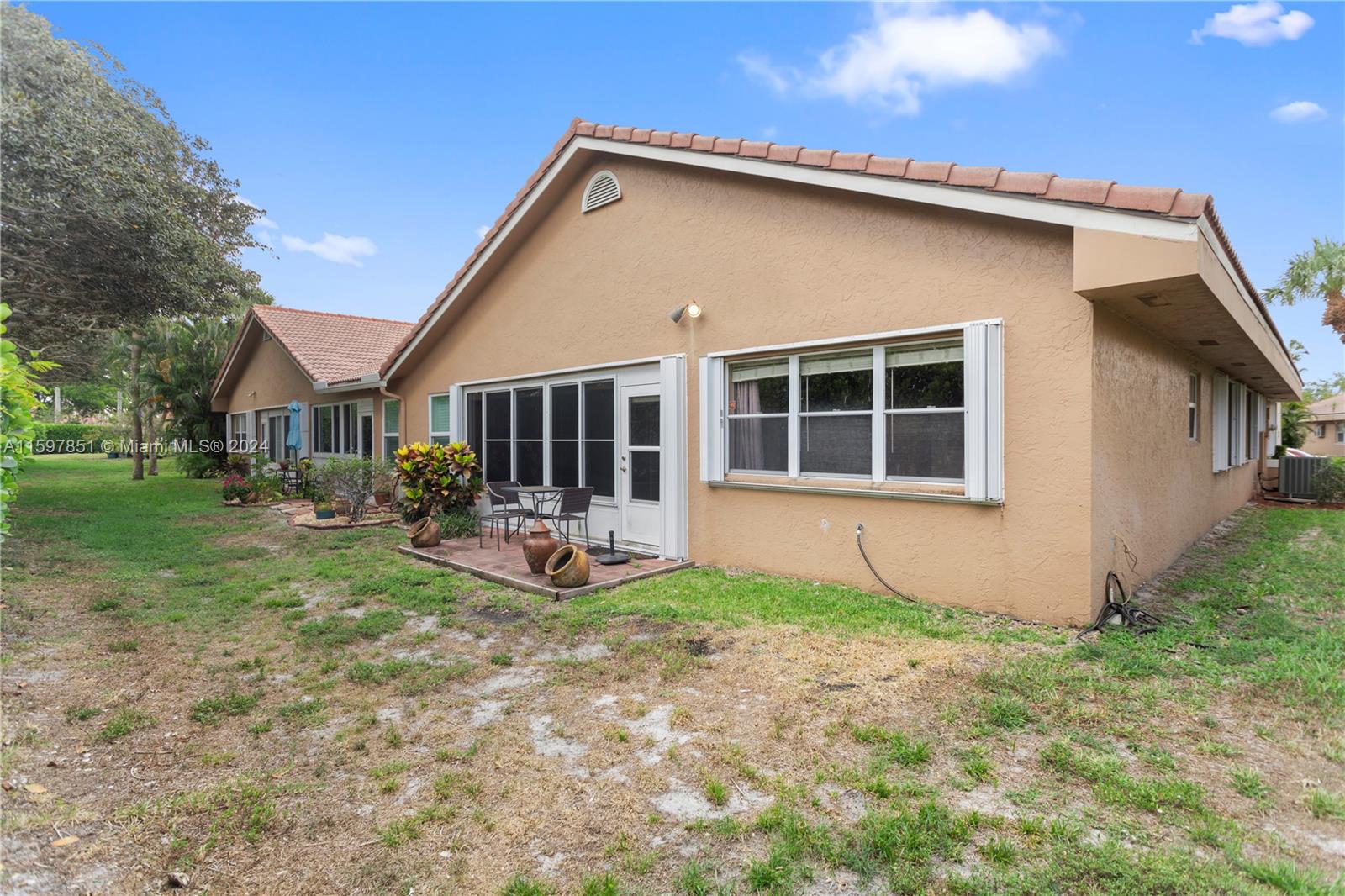 This fabulous, spacious corner villa is located in a gated community. The home features a garage, an amazing 15-foot high ceiling, a tastefully updated kitchen, bathrooms, and newer stainless steel appliances. The split bedroom floor plan ensures plenty of privacy. The living areas have laminate flooring, and the bedrooms have carpet. The brand-new A/C (installed in May 2024) and the enclosed patio are a bonus. The backyard is quiet and inviting. This well-cared-for, well-maintained, and loved home is ready for its next occupant. Situated in serene surroundings but within a short distance of excellent dining, entertainment, and shopping, this is the perfect place to call home.