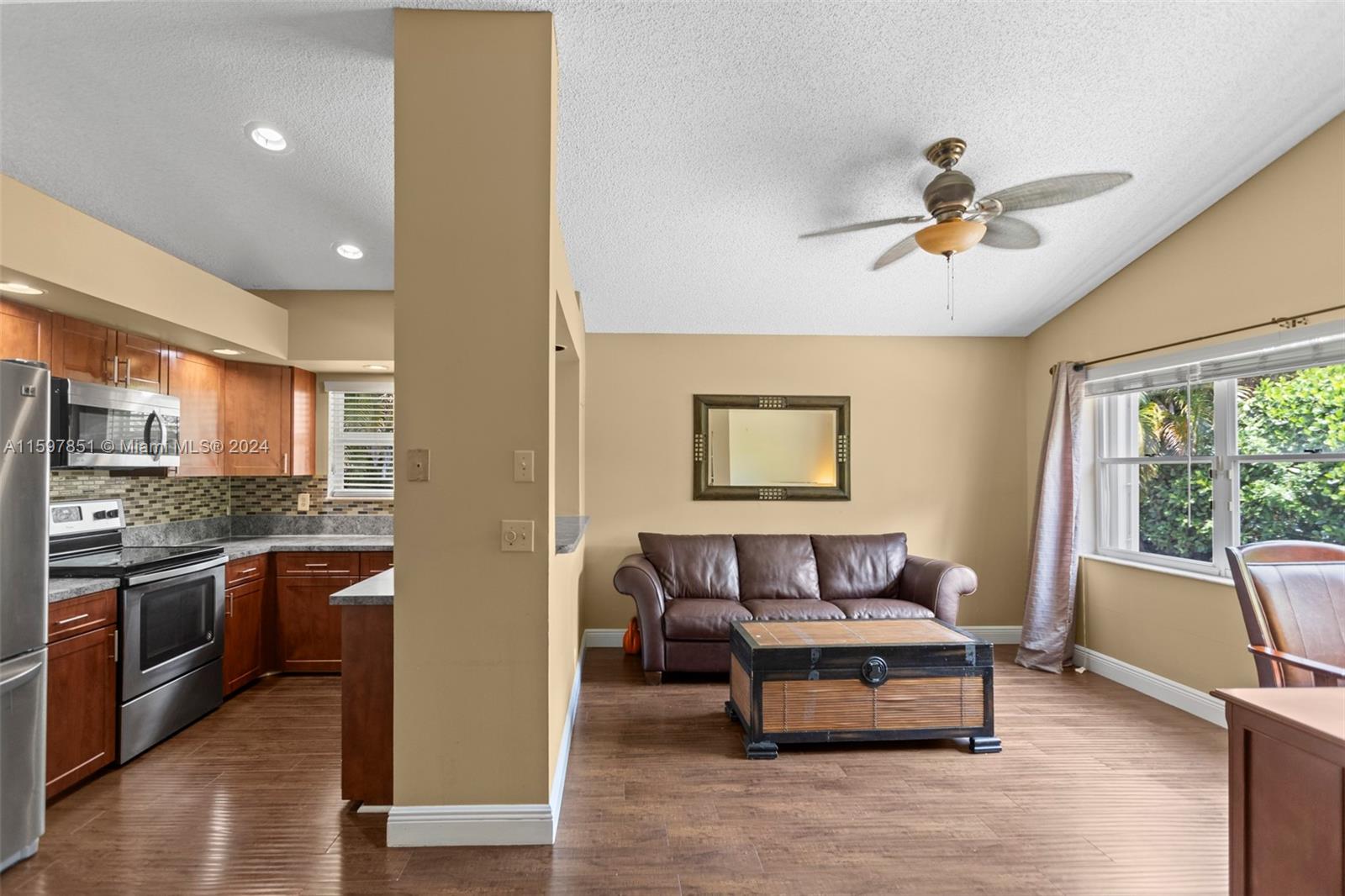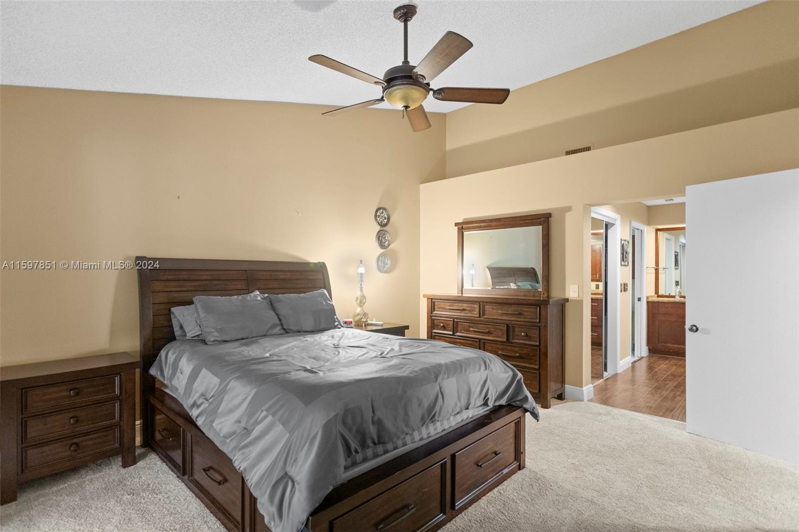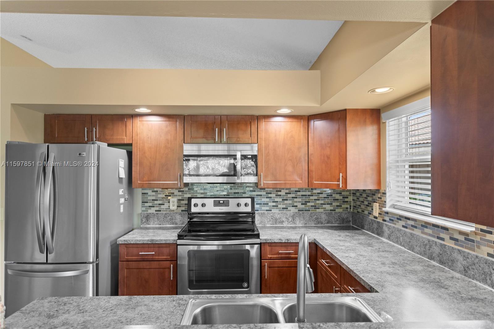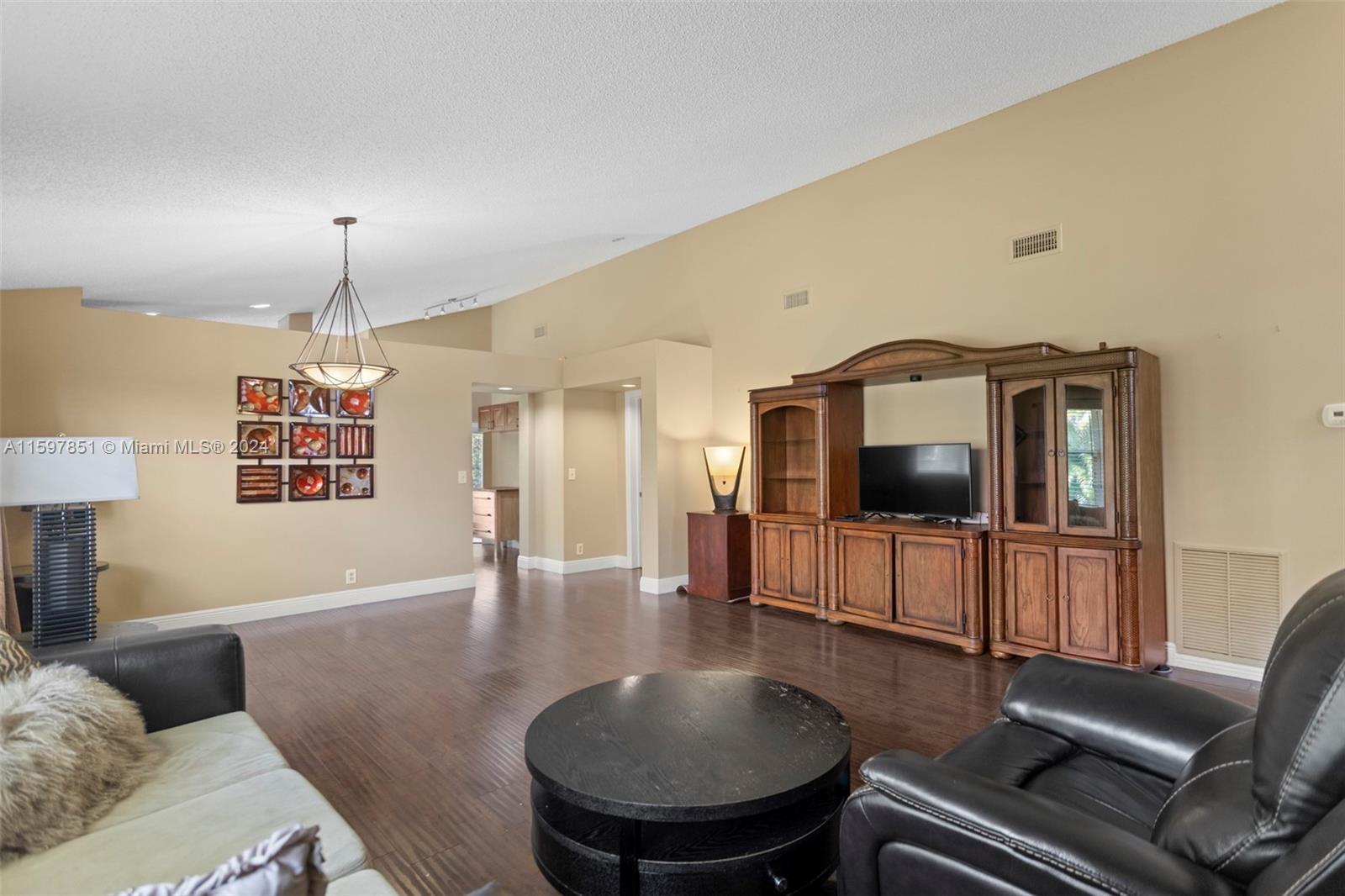 This fabulous, spacious corner villa is located in a gated community. The home features a garage, an amazing 15-foot high ceiling, a tastefully updated kitchen, bathrooms, and newer stainless steel appliances. The split bedroom floor plan ensures plenty of privacy. The living areas have laminate flooring, and the bedrooms have carpet. The brand-new A/C (installed in May 2024) and the enclosed patio are a bonus. The backyard is quiet and inviting. This well-cared-for, well-maintained, and loved home is ready for its next occupant. Situated in serene surroundings but within a short distance of excellent dining, entertainment, and shopping, this is the perfect place to call home.