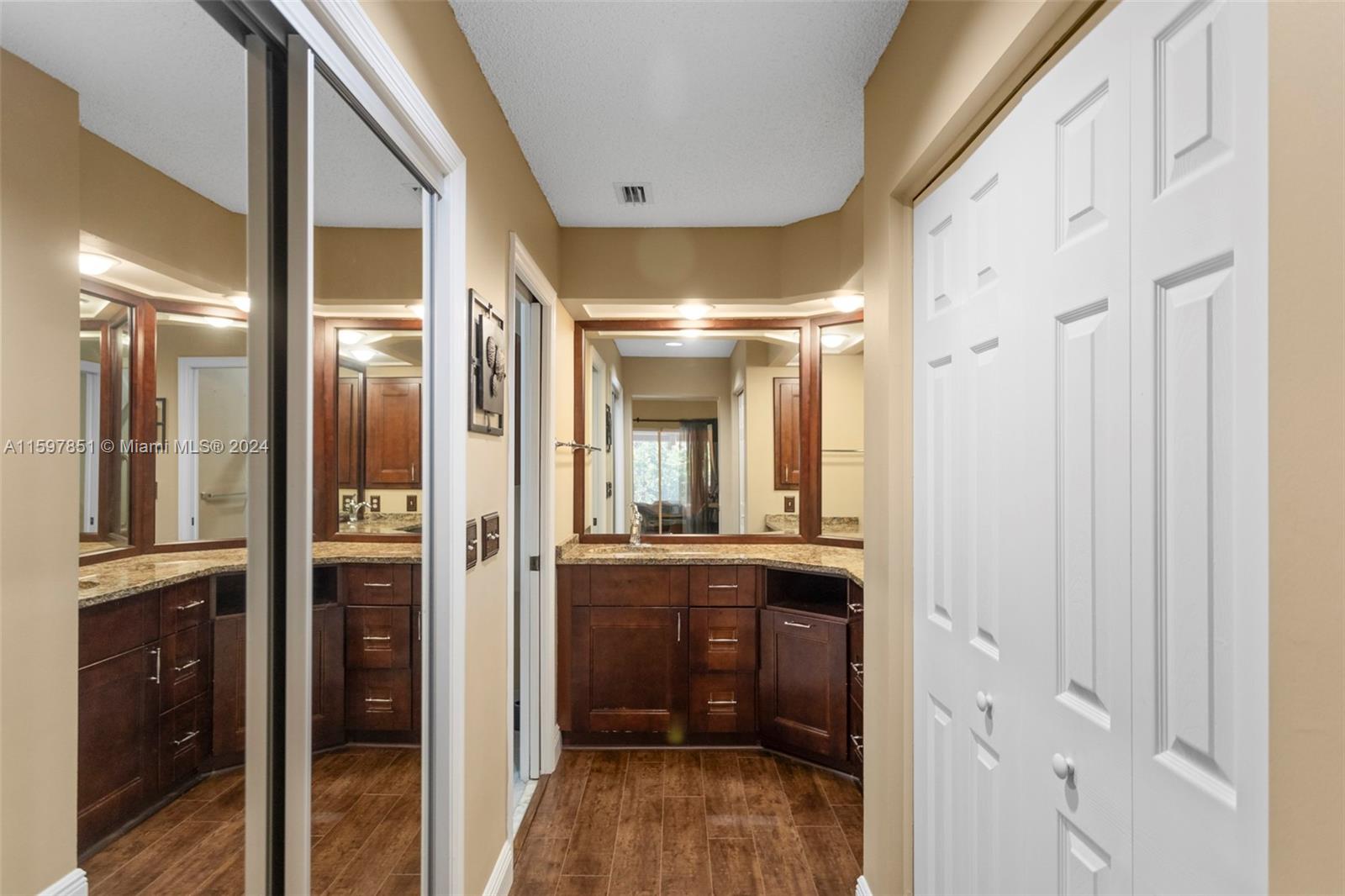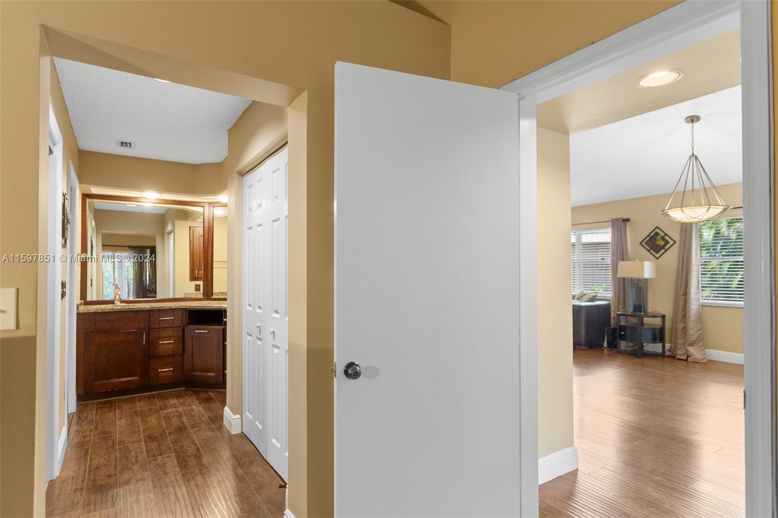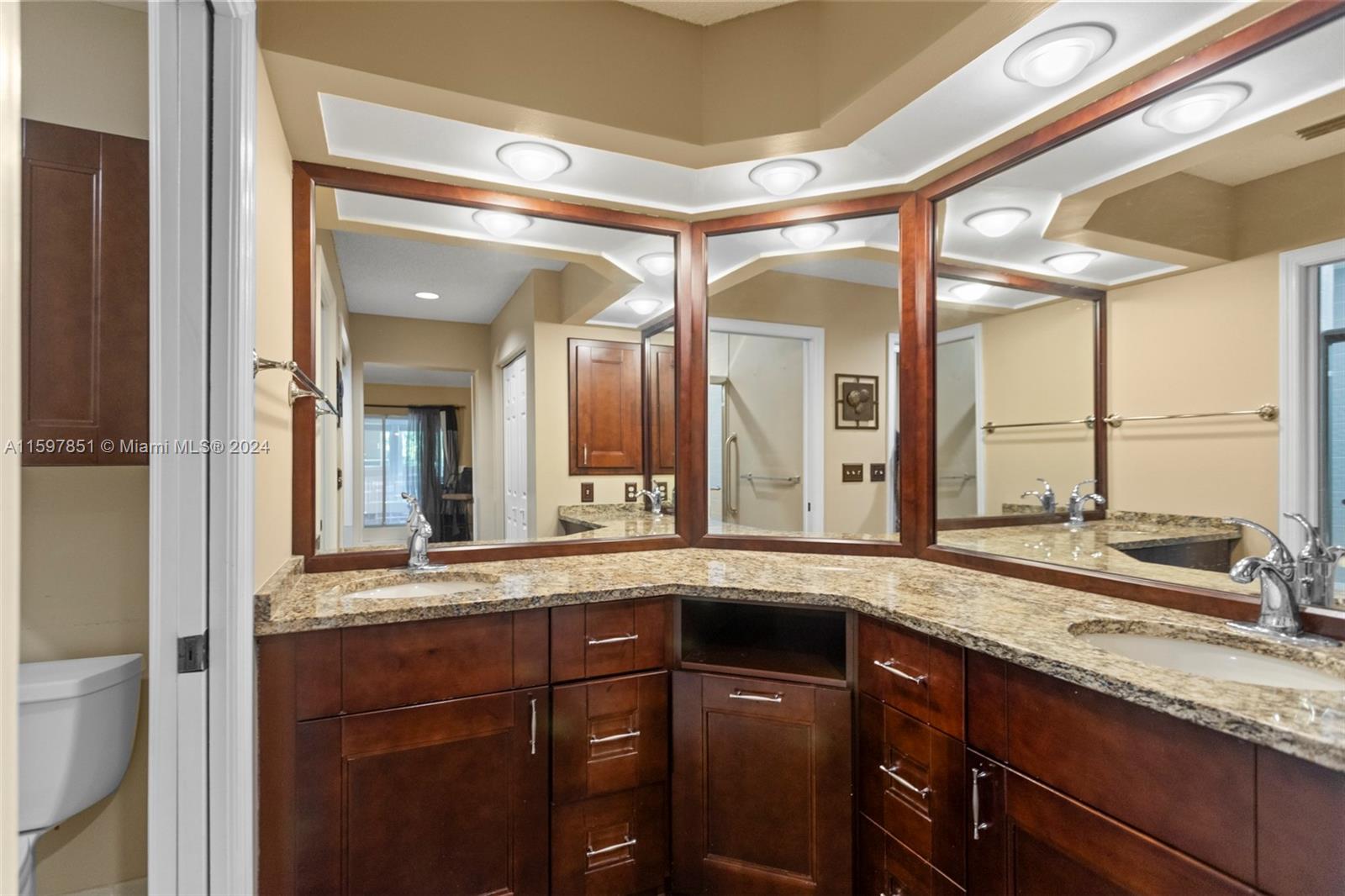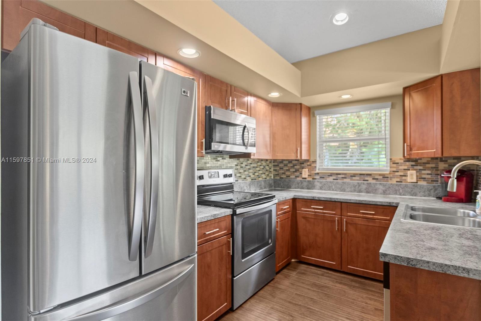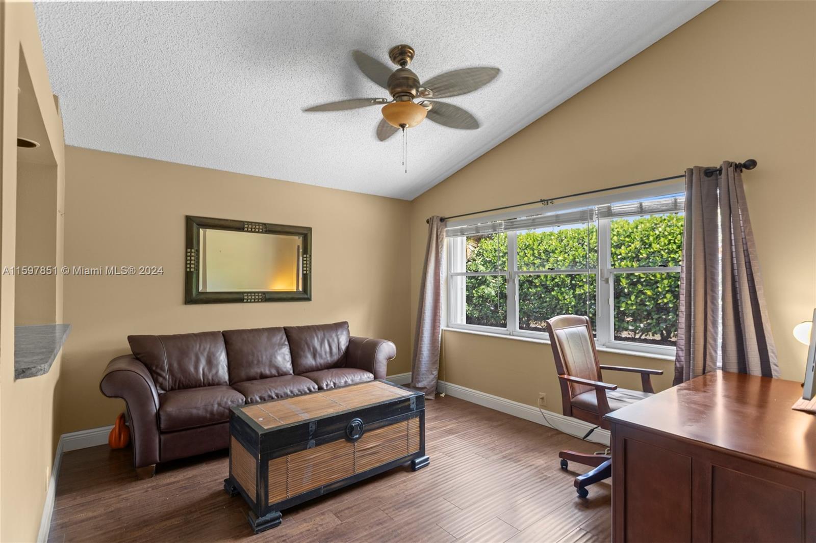 This fabulous, spacious corner villa is located in a gated community. The home features a garage, an amazing 15-foot high ceiling, a tastefully updated kitchen, bathrooms, and newer stainless steel appliances. The split bedroom floor plan ensures plenty of privacy. The living areas have laminate flooring, and the bedrooms have carpet. The brand-new A/C (installed in May 2024) and the enclosed patio are a bonus. The backyard is quiet and inviting. This well-cared-for, well-maintained, and loved home is ready for its next occupant. Situated in serene surroundings but within a short distance of excellent dining, entertainment, and shopping, this is the perfect place to call home.