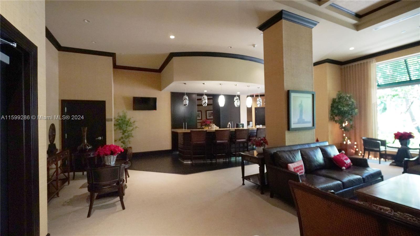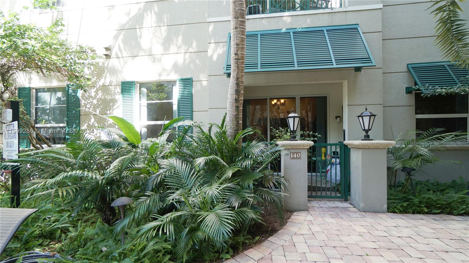 This condo in on the ground floor, so it has "extra" high ceilings making this 2 bedroom very unique. It also have lots of natural light. The unit faces to the interior lushly landscaped courtyard and building pool which you can access from your patio. The unit also brings 2 parking spaces!