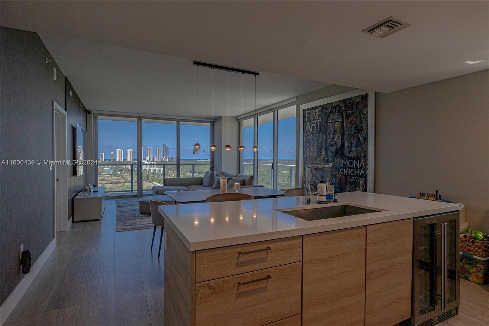 Indulge in the epitome of luxury living with this breathtaking 3-bed, 3-bath corner unit at THE HARBOUR in North Miami. Bonus 2 parking garage spaces included. This meticulously interior designed decorated condo boasts a versatile den, perfect for your lifestyle needs with close to new furniture. Private elevator with storage direct to the unit which immerse yourself in panoramic views of the Bay and Sunny Isles' skyline through floor-to-ceiling windows, wake up to direct sunrise city behind with ocean view while enjoying the modern elegance of the open kitchen equipped with top-of-the-line LIEBHERR & SMEG appliances. With a host of amenities including spa, fitness center, pool, and every aspect of comfort and convenience is at your fingertips in this exclusive residence.