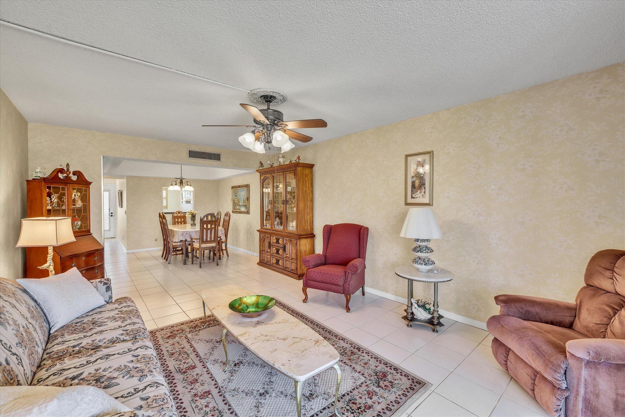 DON'T WAIT FOR THE BEST PRICED CONDO TO SELL! Fabulous, light and bright 2 bedroom 2 full bath ground floor unit in Boca Barwood. No steps or stairs to worry about. Expansive view of greenery from the covered screened patio. Blank canvas ready to suit to your taste with one story. Tons of storage. Enjoy the 55+ lifestyle with endless amenities including tennis, pool, clubhouse, pickleball, bocce, sauna and relaxing green areas. Low maintenance fees and unbeatable location close to dining, shopping, highways and the beach. Beat the heat with covered assigned parking.