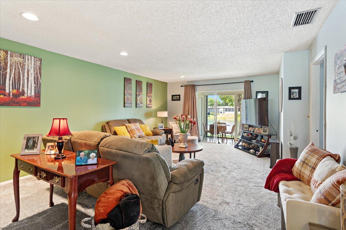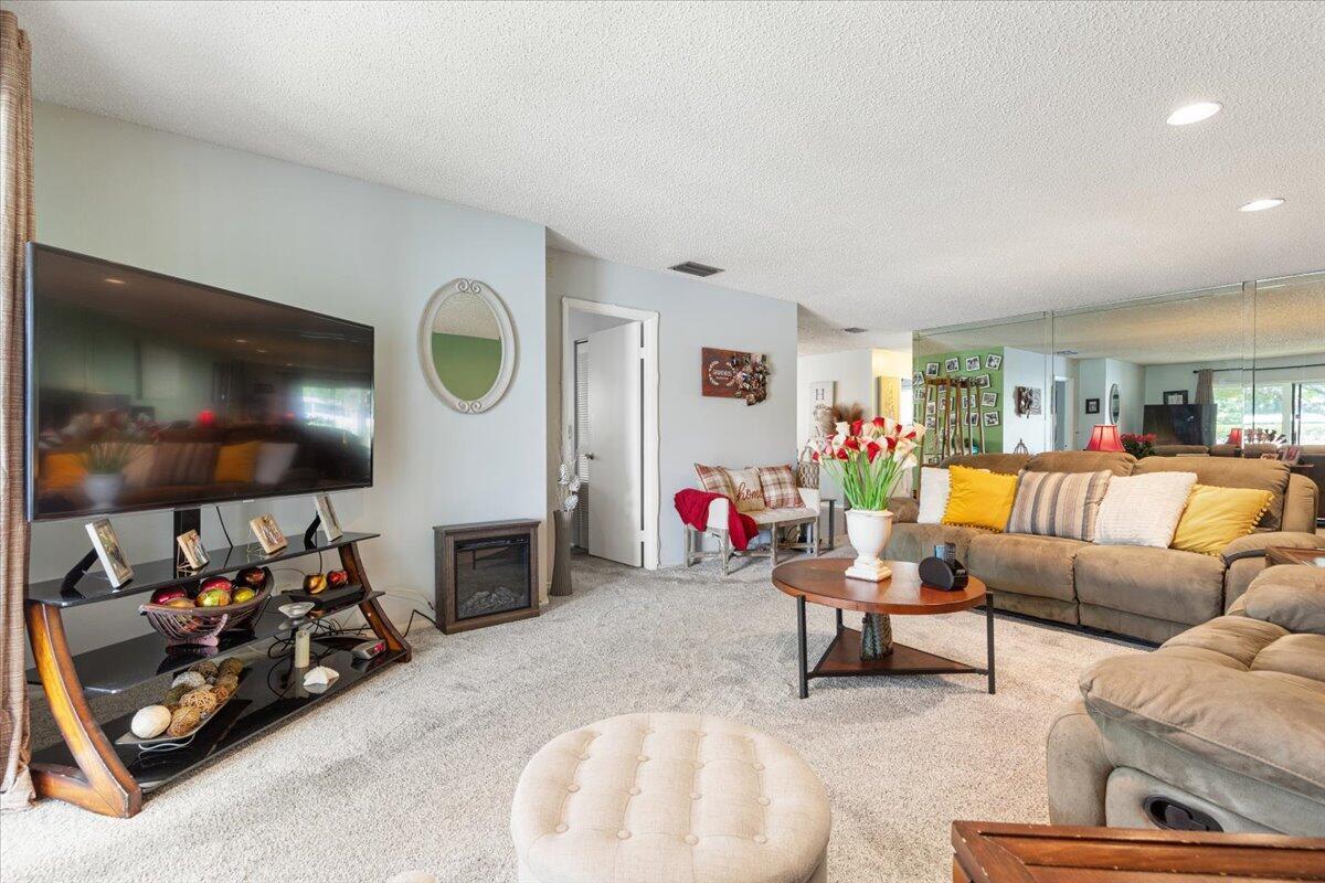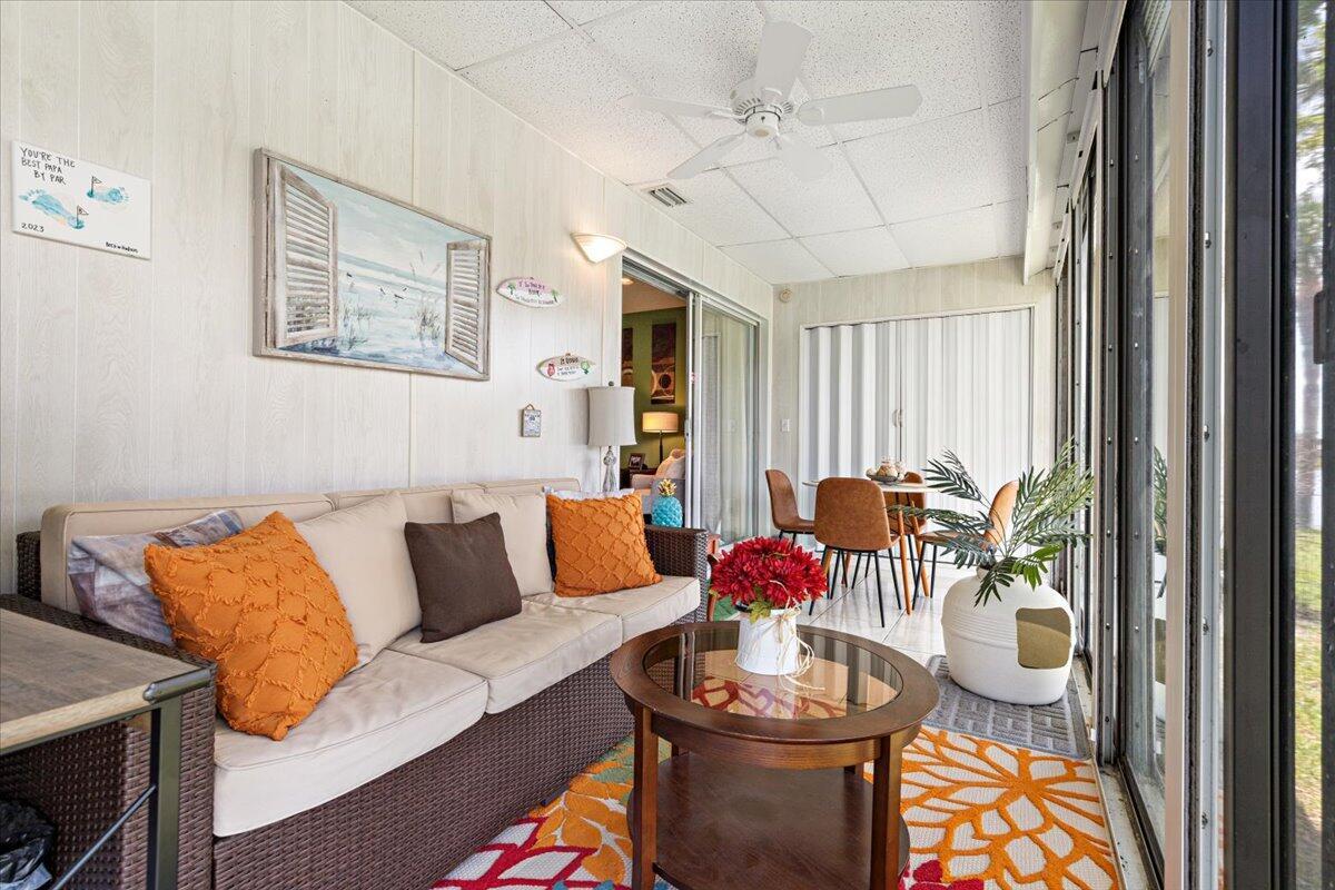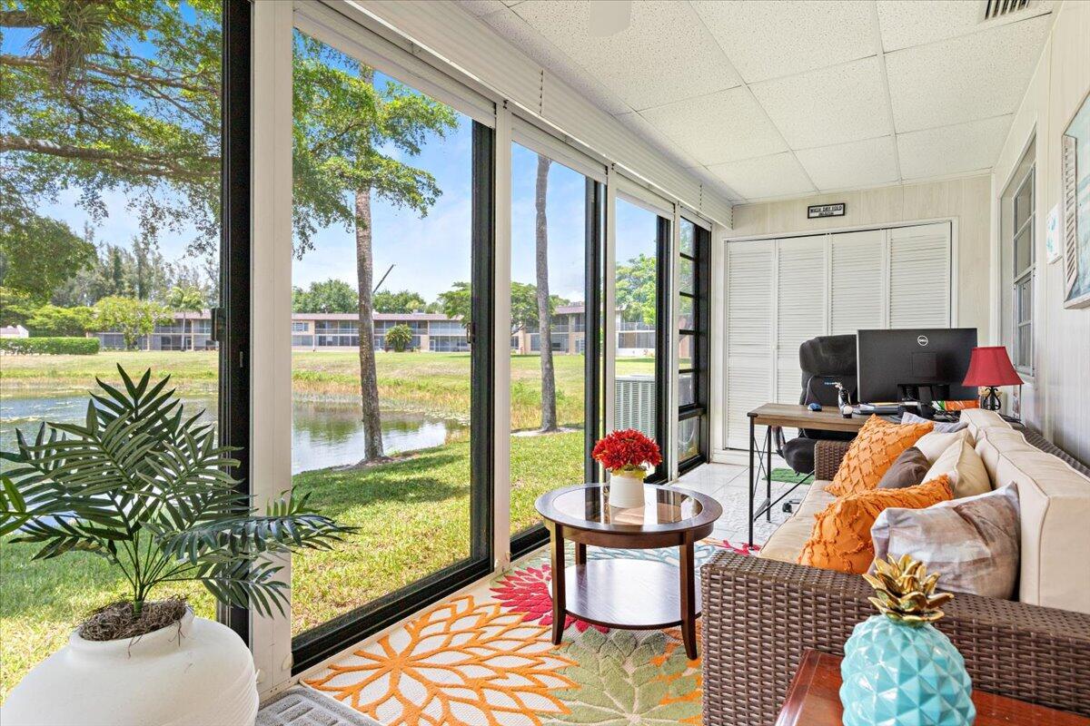Welcome to your dream home in the highly sought-after 55+ community of Golden Lakes Village! This beautifully updated 1-story corner unit condo boasts 2 spacious bedrooms and 2 modern bathrooms, offering a perfect blend of comfort and style.Step into the sleek kitchen, complete with stainless steel appliances, ideal for whipping up gourmet meals. The expansive Florida Room, fully under air, provides a serene retreat with stunning water views, perfect for relaxation or entertaining guests.Golden Lakes Village offers an array of luxurious amenities, including 24-hour manned security at the guard gate for your peace of mind. Enjoy access to 2 clubhouses, heated pools, spa hot tubs, fully equipped gyms, and cozy cafes serving delicious breakfast and lunch options.