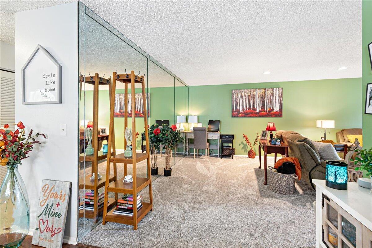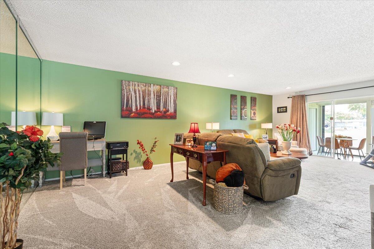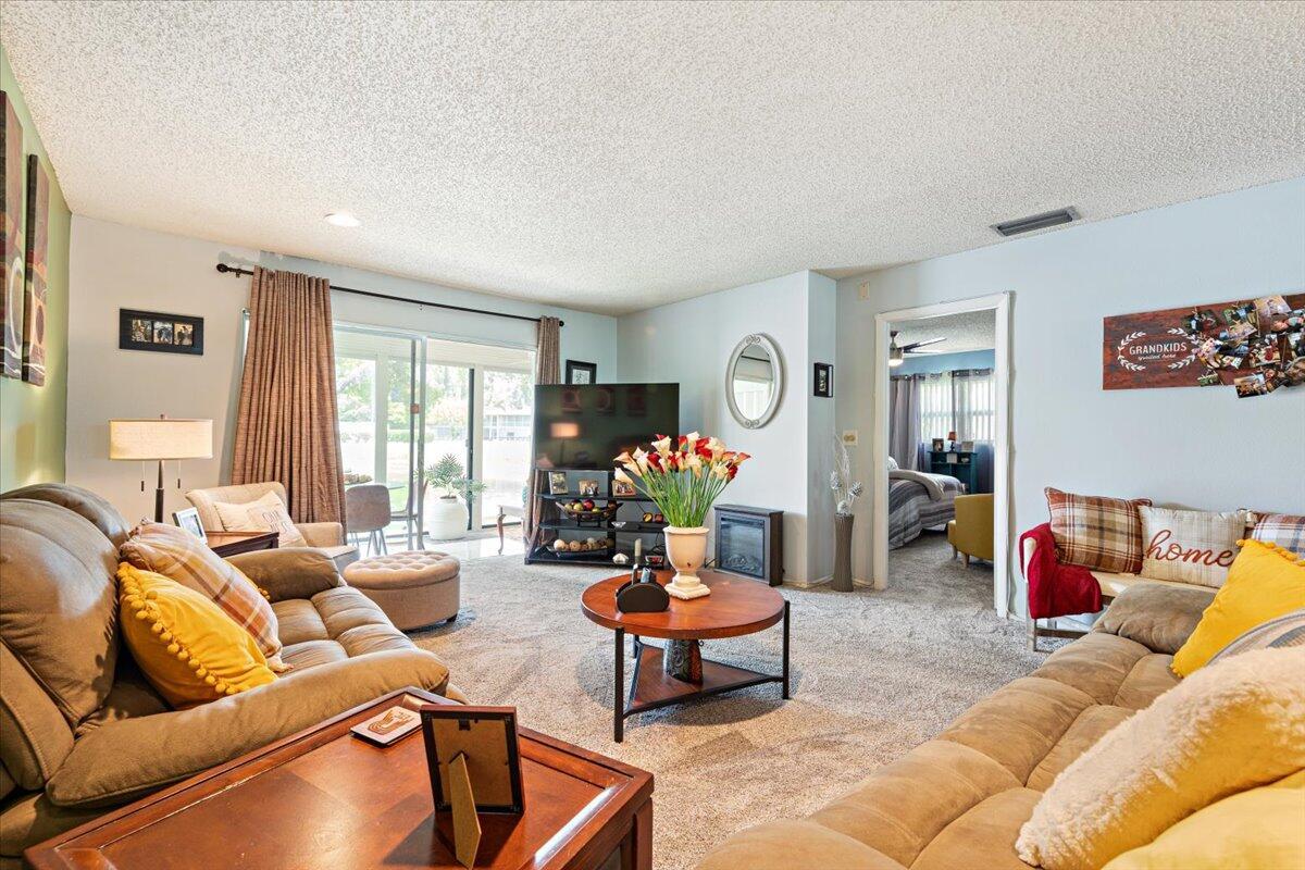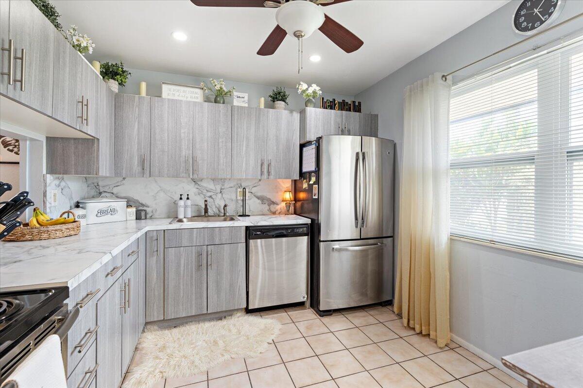 Welcome to your dream home in the highly sought-after 55+ community of Golden Lakes Village! This beautifully updated 1-story corner unit condo boasts 2 spacious bedrooms and 2 modern bathrooms, offering a perfect blend of comfort and style.Step into the sleek kitchen, complete with stainless steel appliances, ideal for whipping up gourmet meals. The expansive Florida Room, fully under air, provides a serene retreat with stunning water views, perfect for relaxation or entertaining guests.Golden Lakes Village offers an array of luxurious amenities, including 24-hour manned security at the guard gate for your peace of mind. Enjoy access to 2 clubhouses, heated pools, spa hot tubs, fully equipped gyms, and cozy cafes serving delicious breakfast and lunch options.