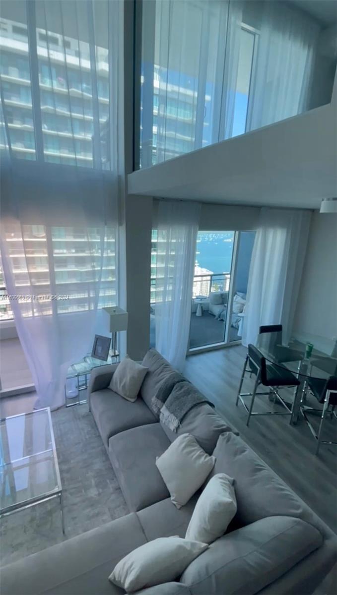 Step inside this loft style 2 bed + den along with 3 full bathrooms on the 44th floor. Located within close walkability to top Brickell city Centre retail, neighborhood hot spots, nightlife, restaurants, and more, this home-in-the-sky features 1255 sqft + 242 sqft terrace. Tenant lease ends 6/30/24. City views of Brickell/Downtown along with partial water views of Biscayne Bay & ocean are in the distance. High ceilings and 2 floors make it a home-like feel as dual balconies are on display. Glass walls in the bedrooms further showcase the views. Exclusively for units above the 40th floor, the Sunset Deck has rooftop lounge and jacuzzi. Amenities feature gym, pool, steam & sauna, jacuzzi, valet, and more.